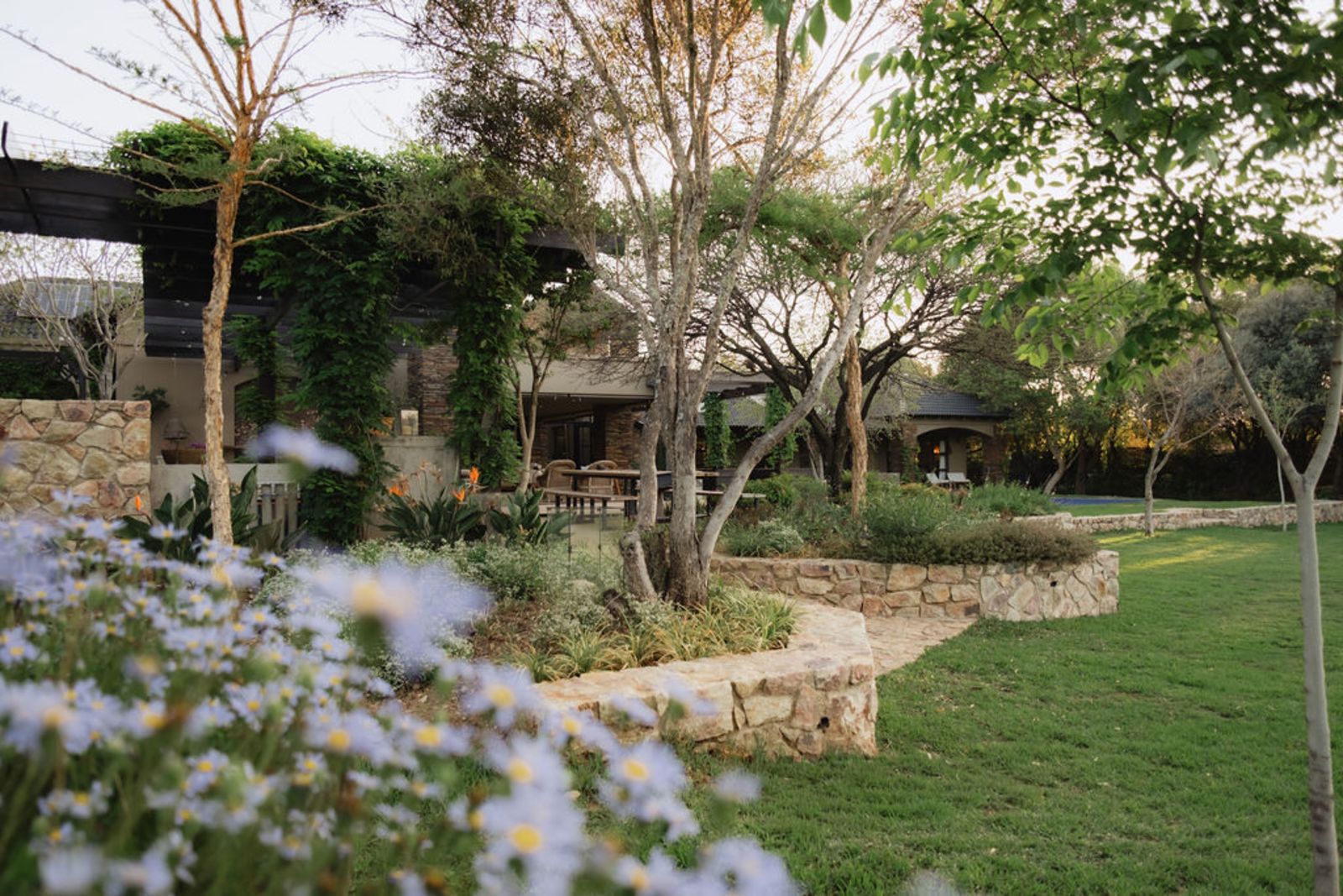 Commanding one of the most desirable and exclusive positions in all of Blair Atholl, this extraordinary residence boasts sweeping views of two breathtaking dams — a rare front-row seat to nature’s finest displays, right from your living room. Surrounding the home is a lush, landscaped garden that feels like a private sanctuary,. The outdoor setting is further elevated by multiple water features and man-made gullies, with gently flowing water that winds around the entire property, adding a serene, resort-like atmosphere.