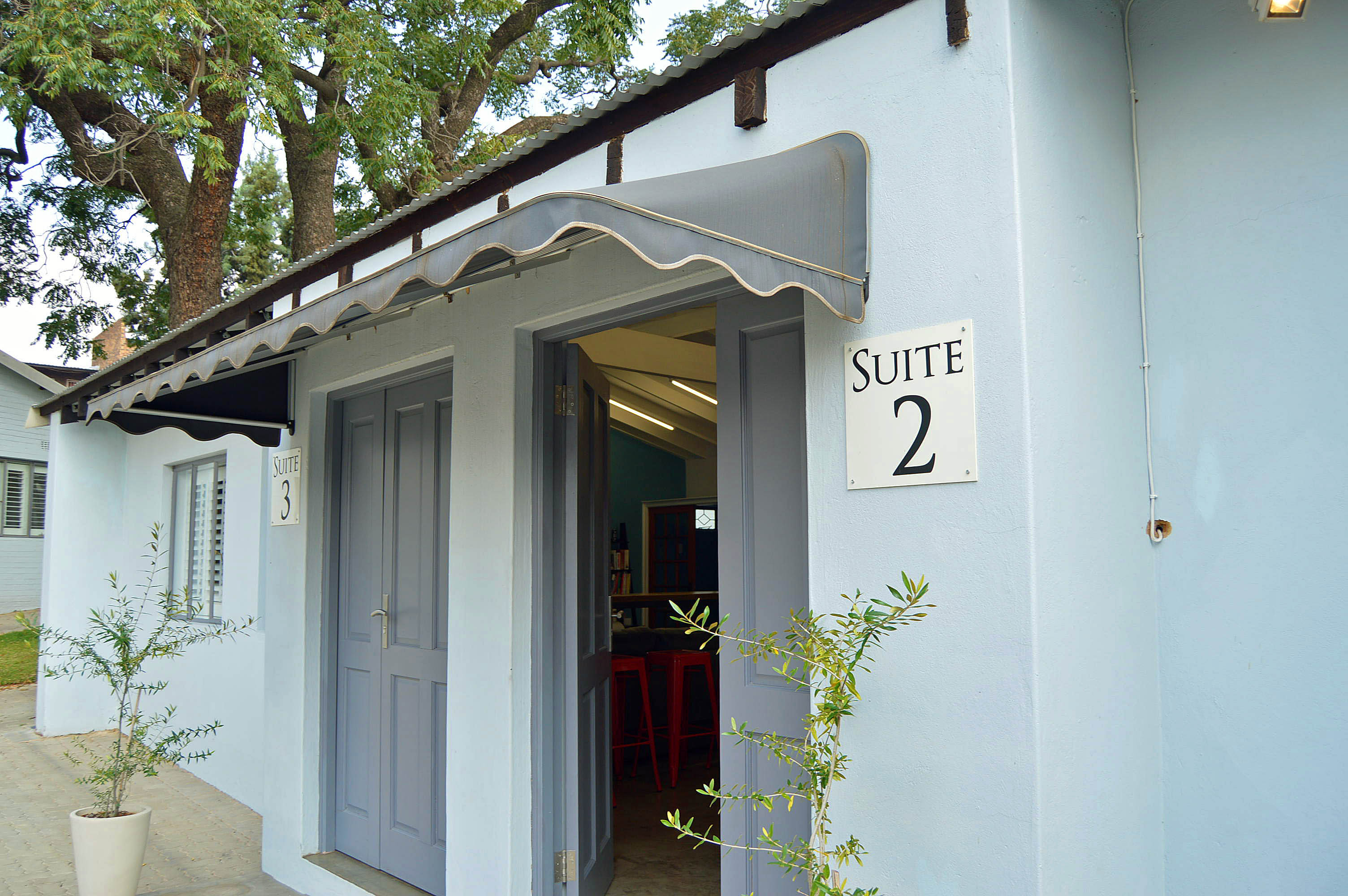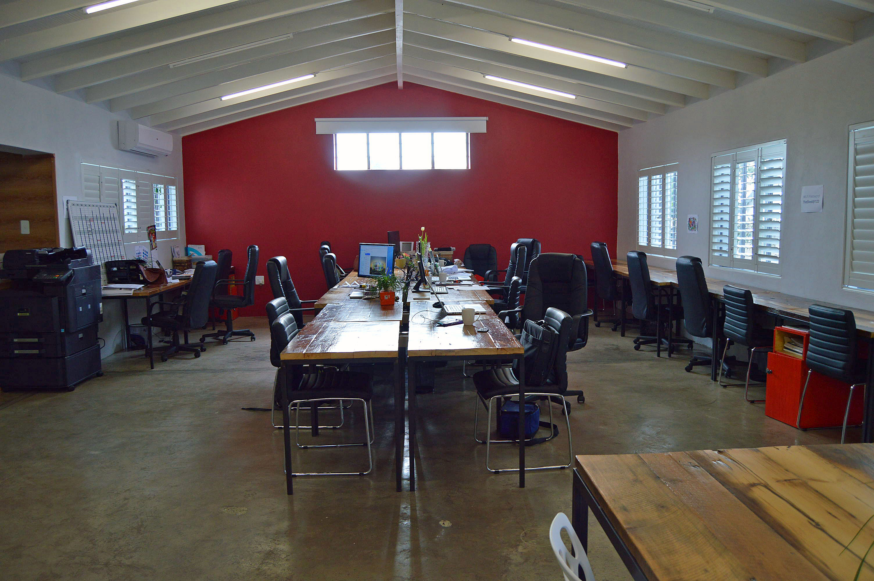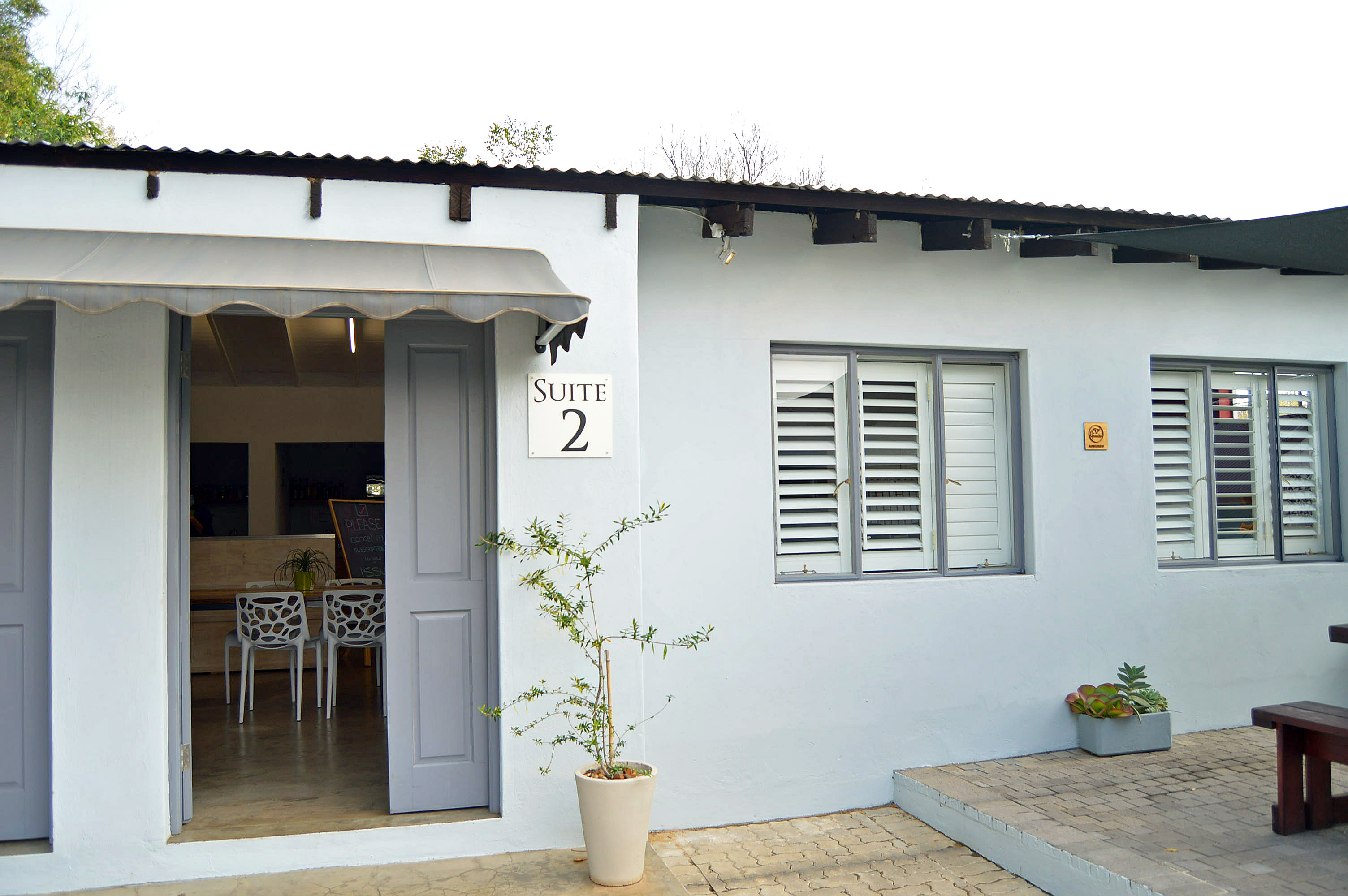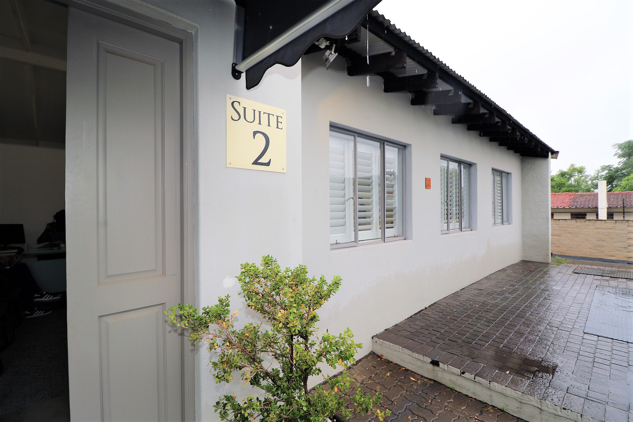 Back area: one office opens to a back patio with attractive wooden sliding doors.