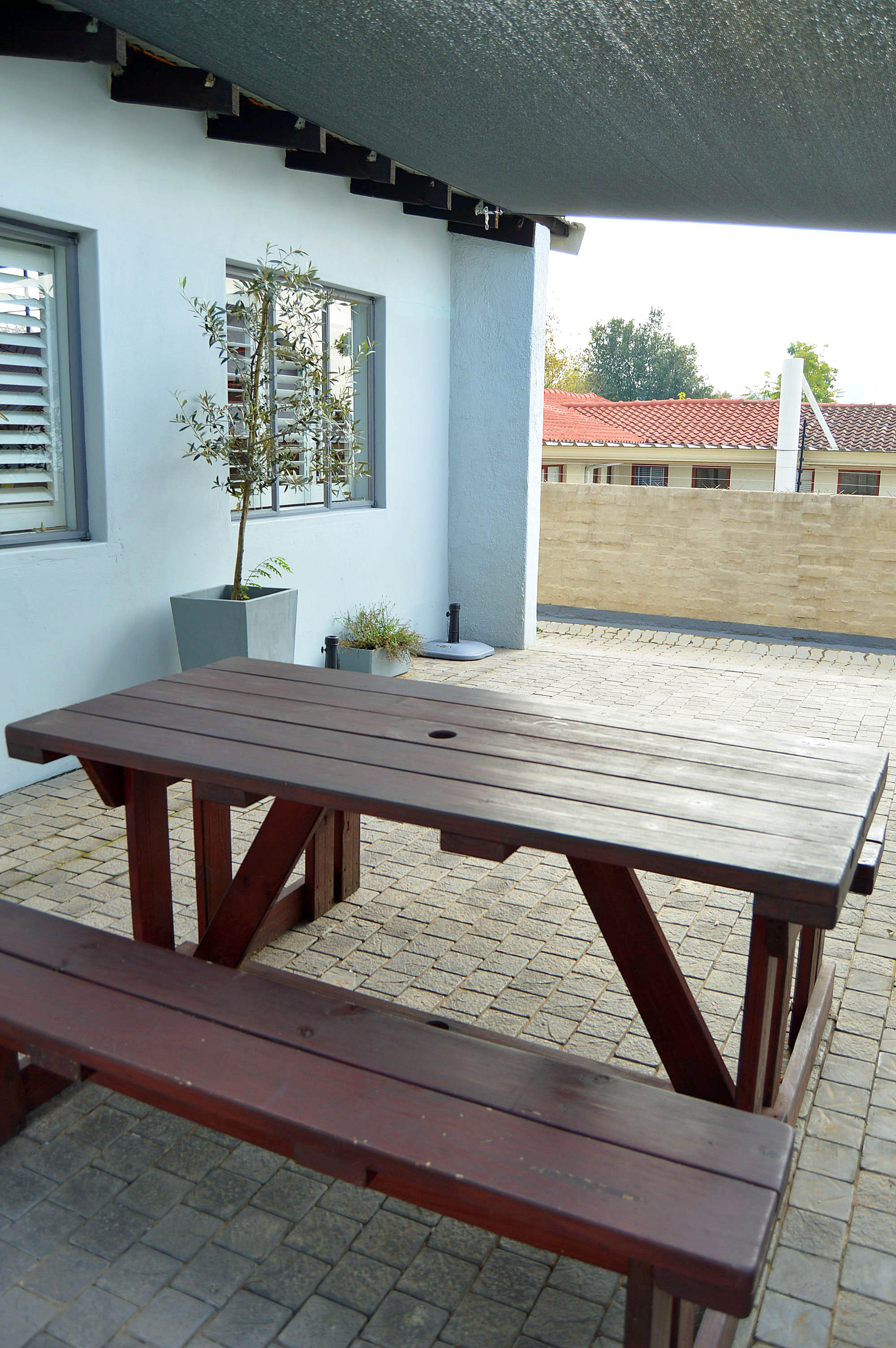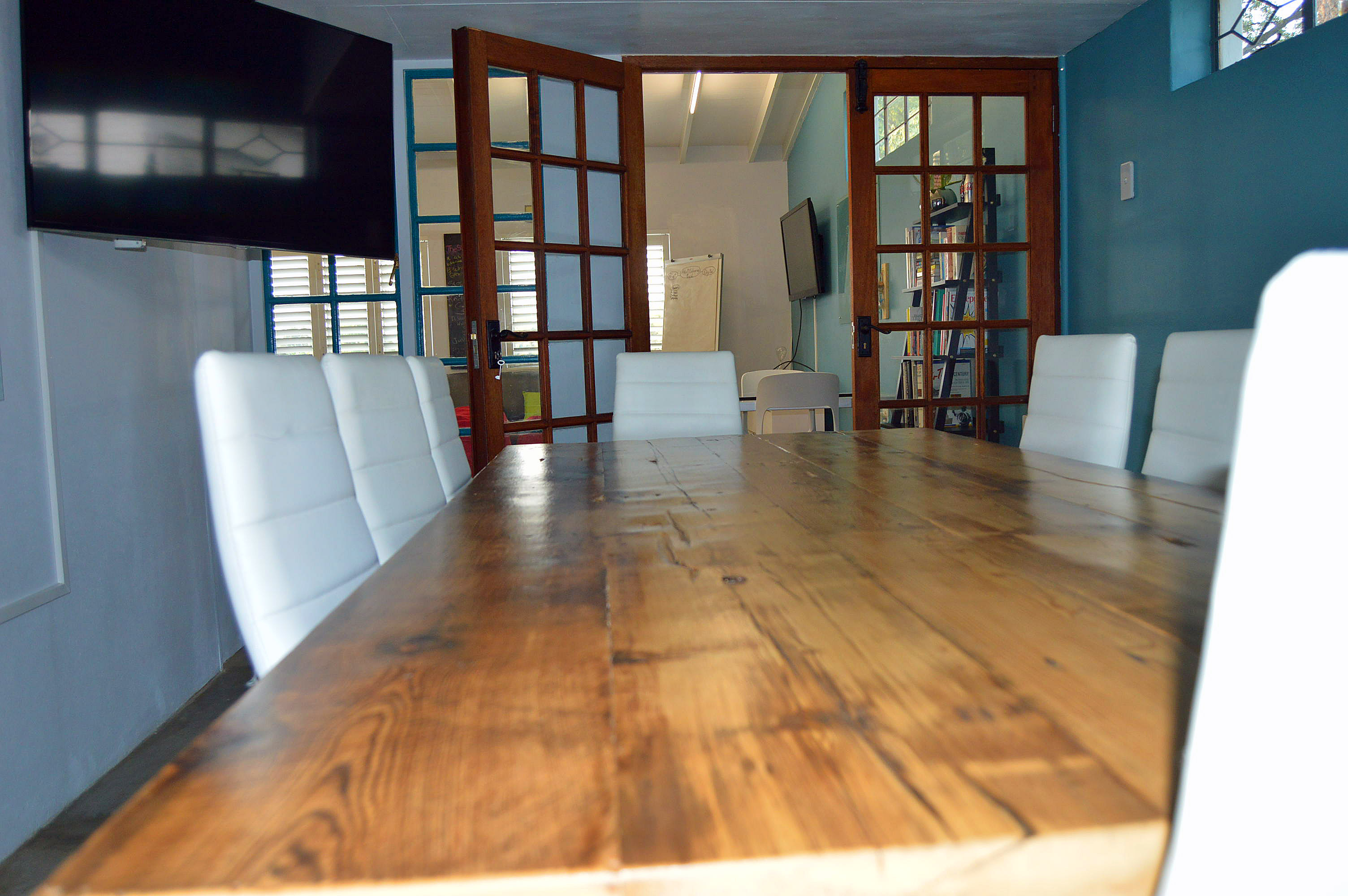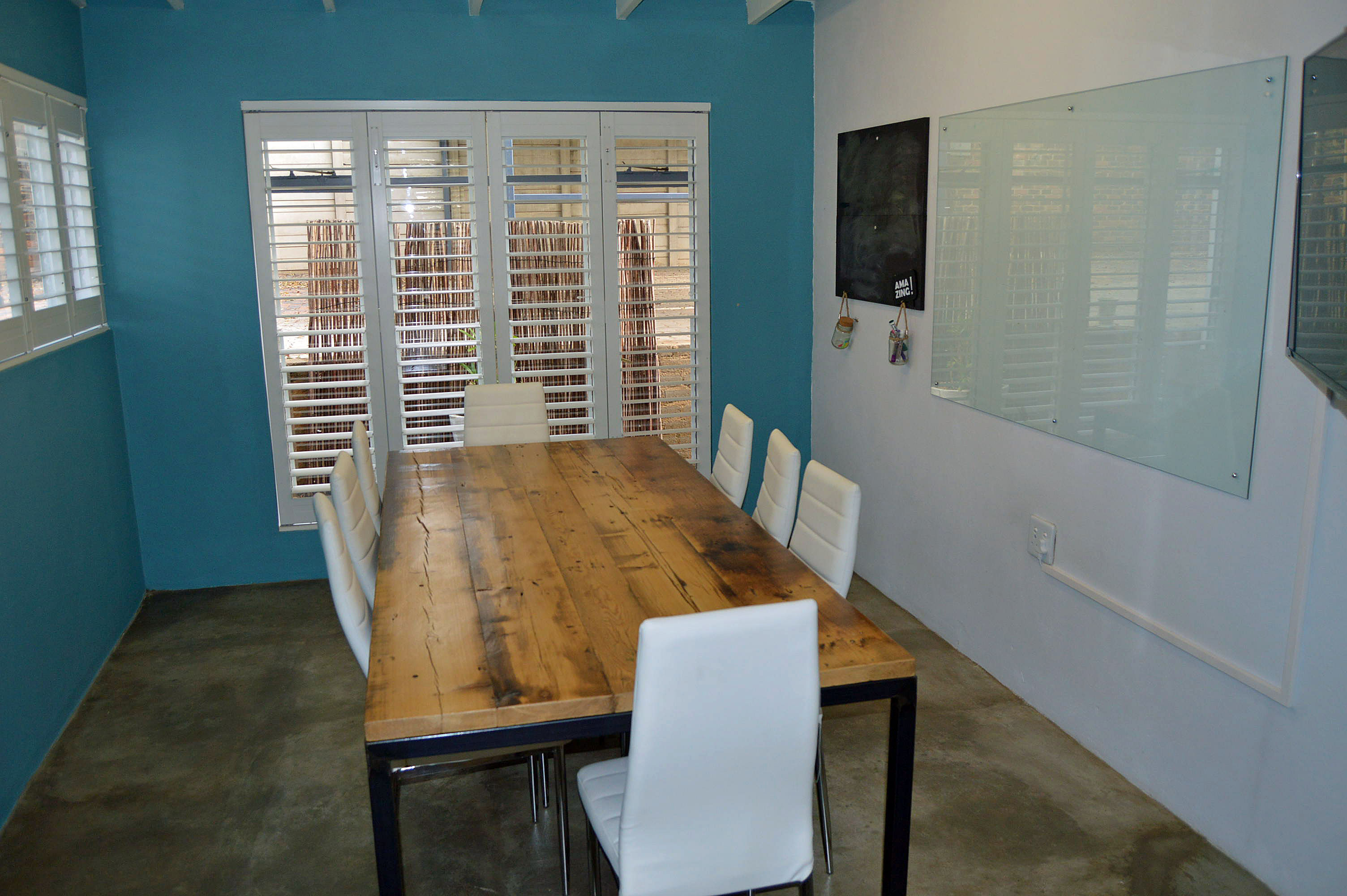 Back area: one office opens to a back patio with attractive wooden sliding doors.