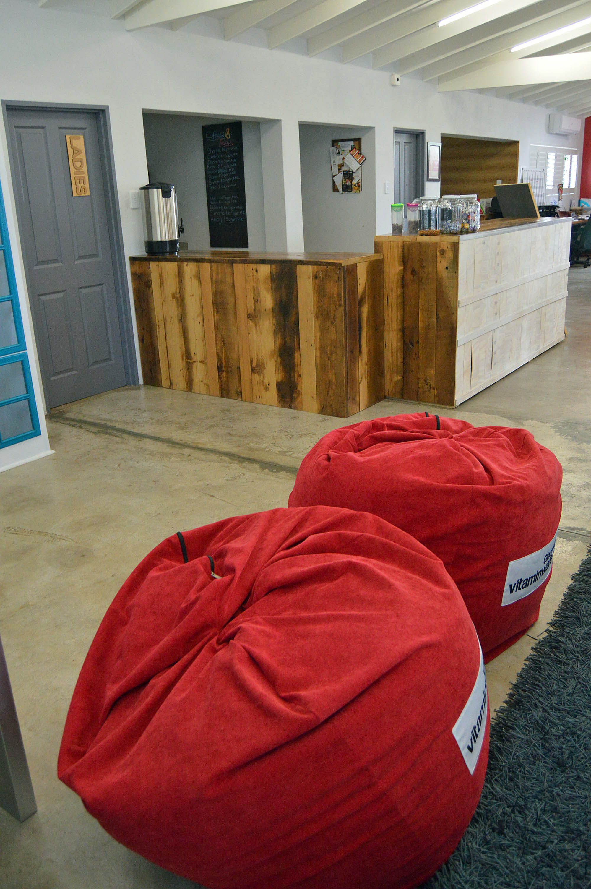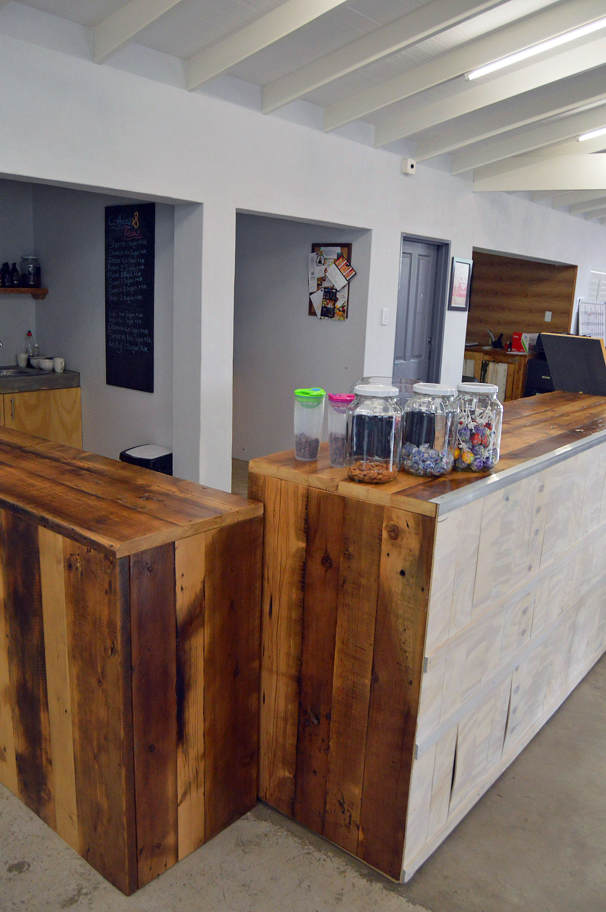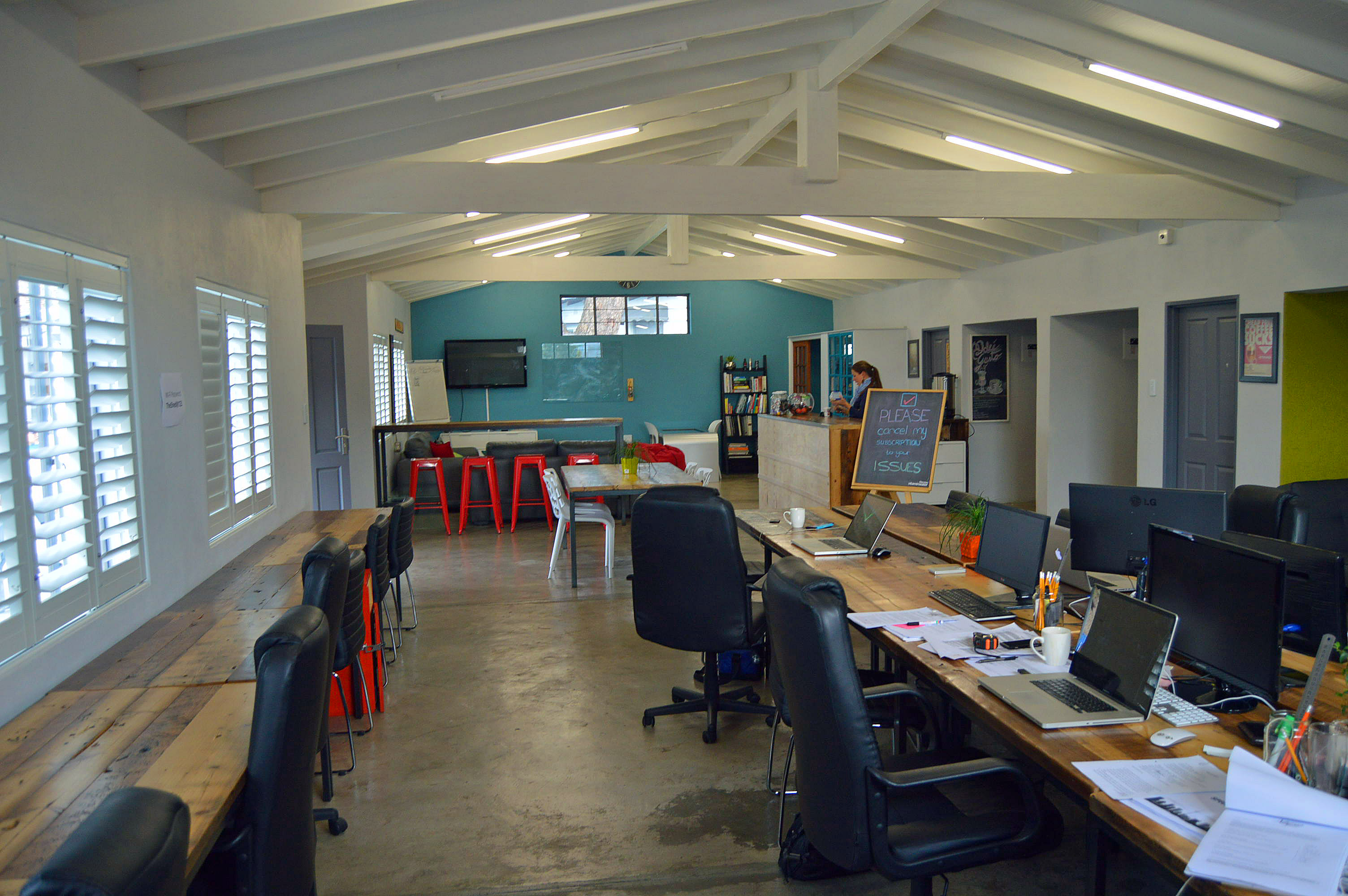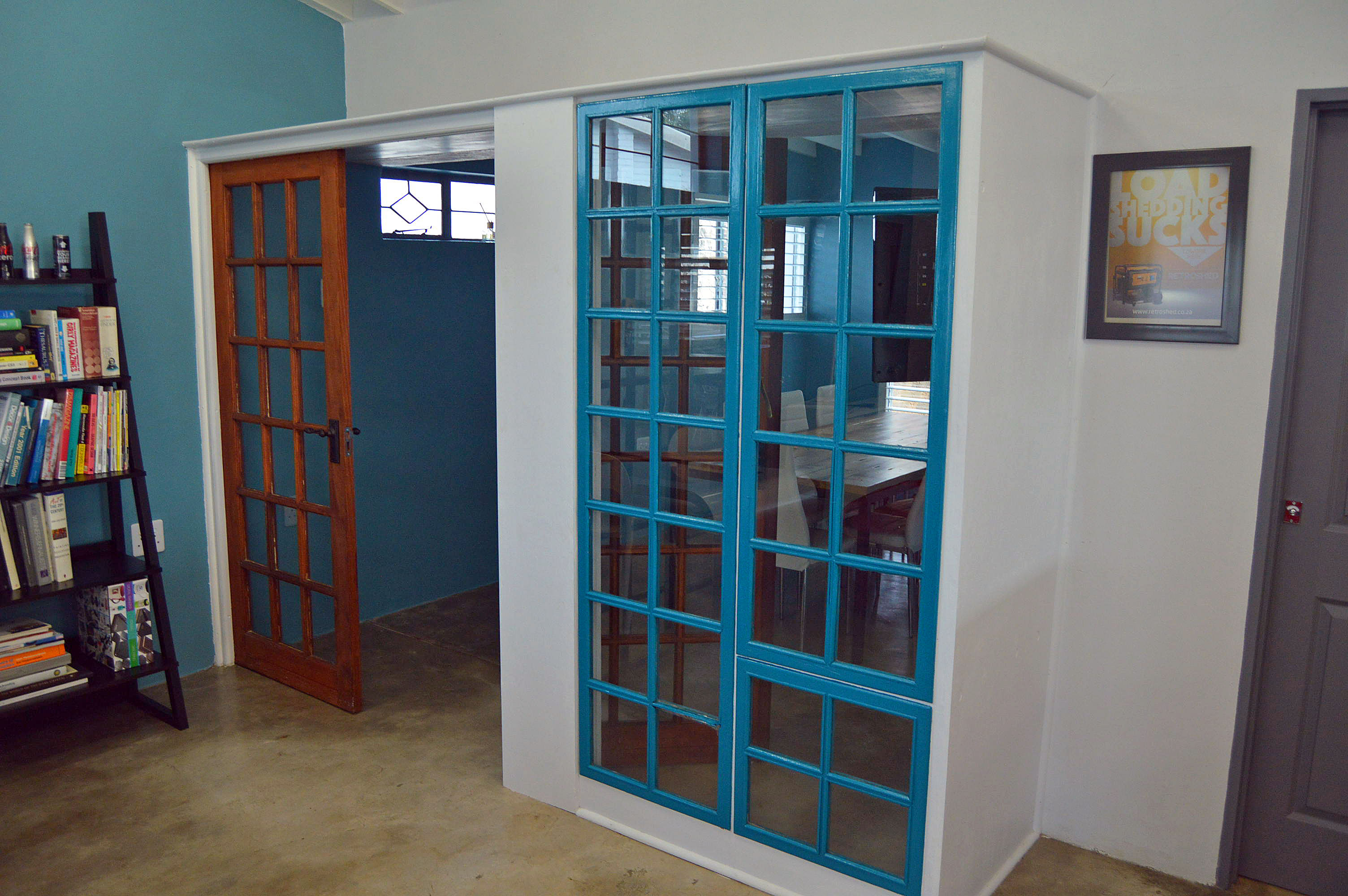 Back area: one office opens to a back patio with attractive wooden sliding doors.
