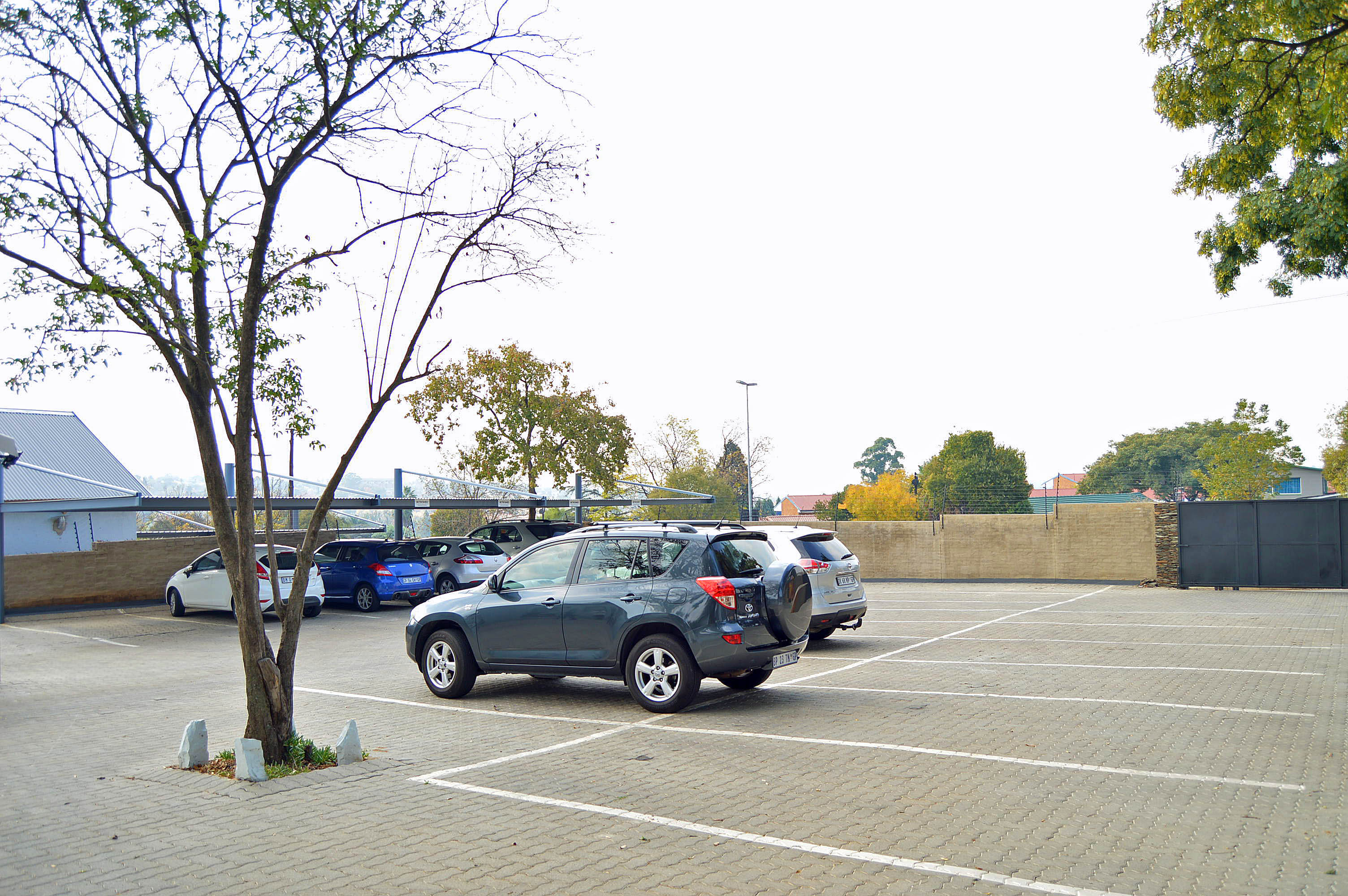 Secure on-site parking: carpet parking spaces available for rent, plus open visitor bays.