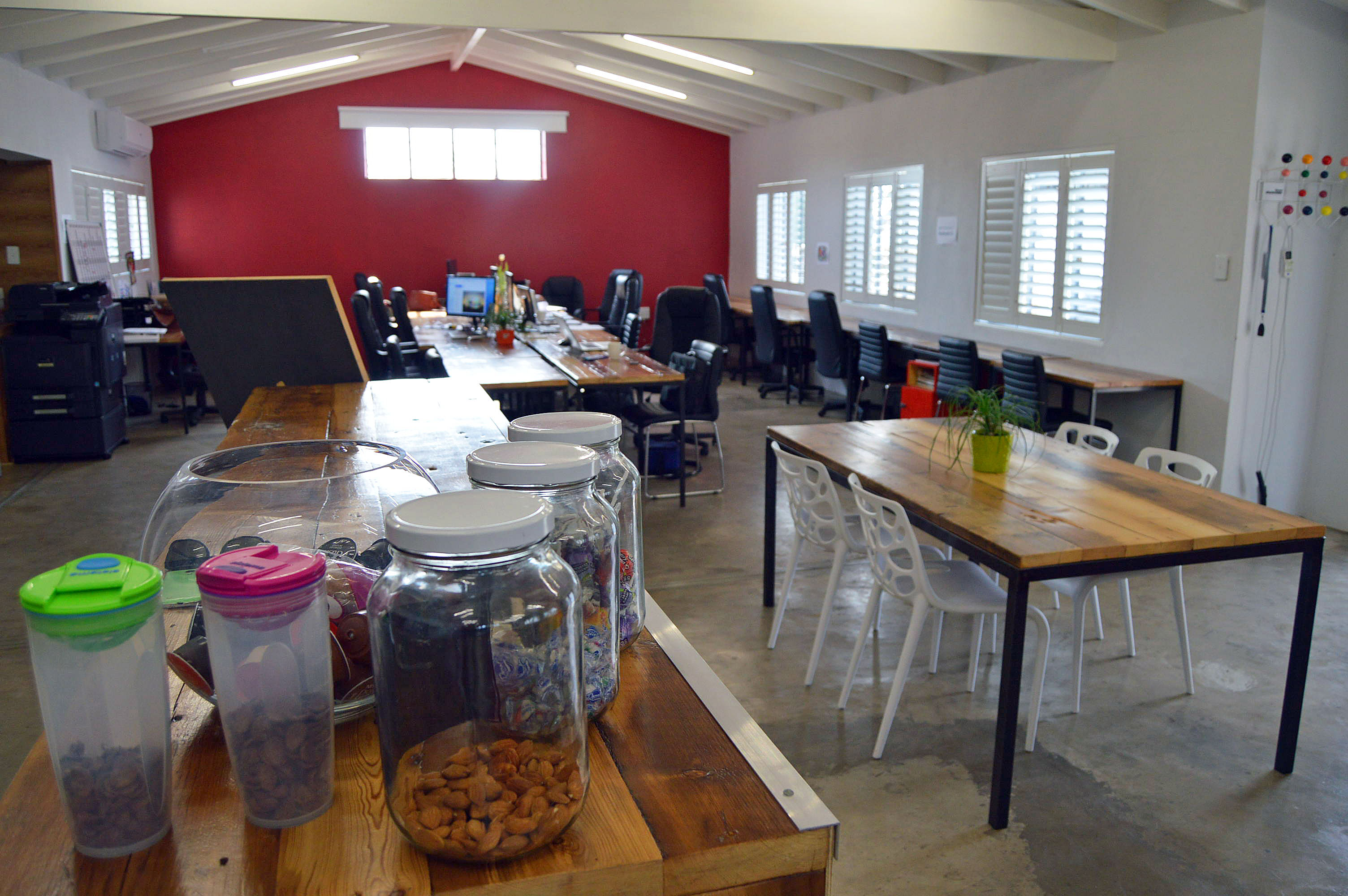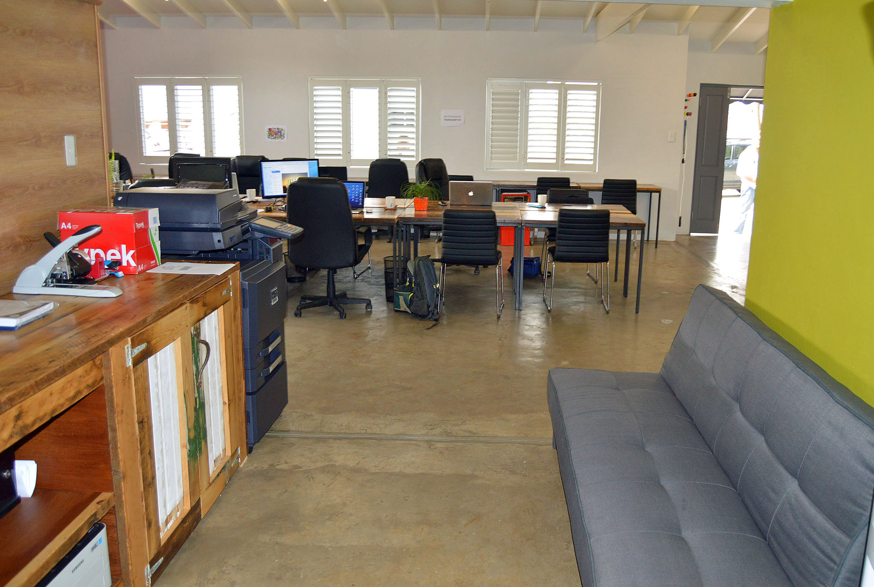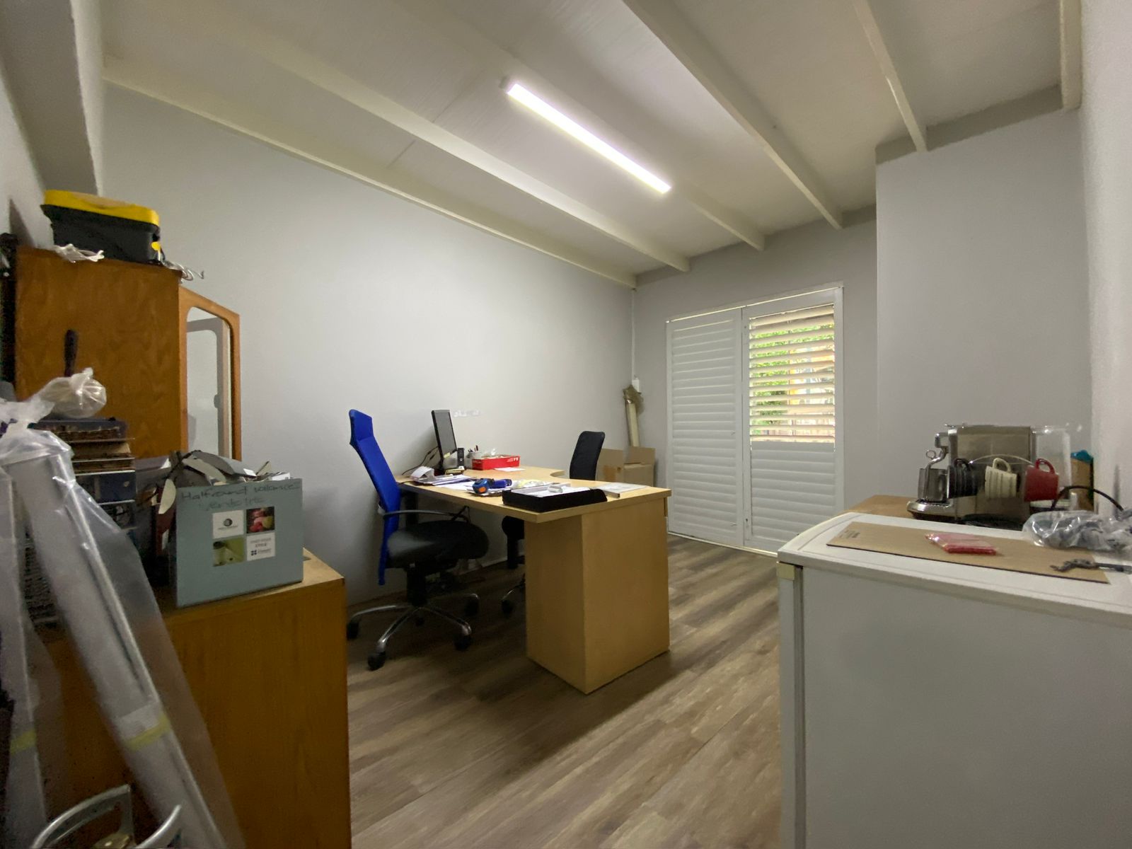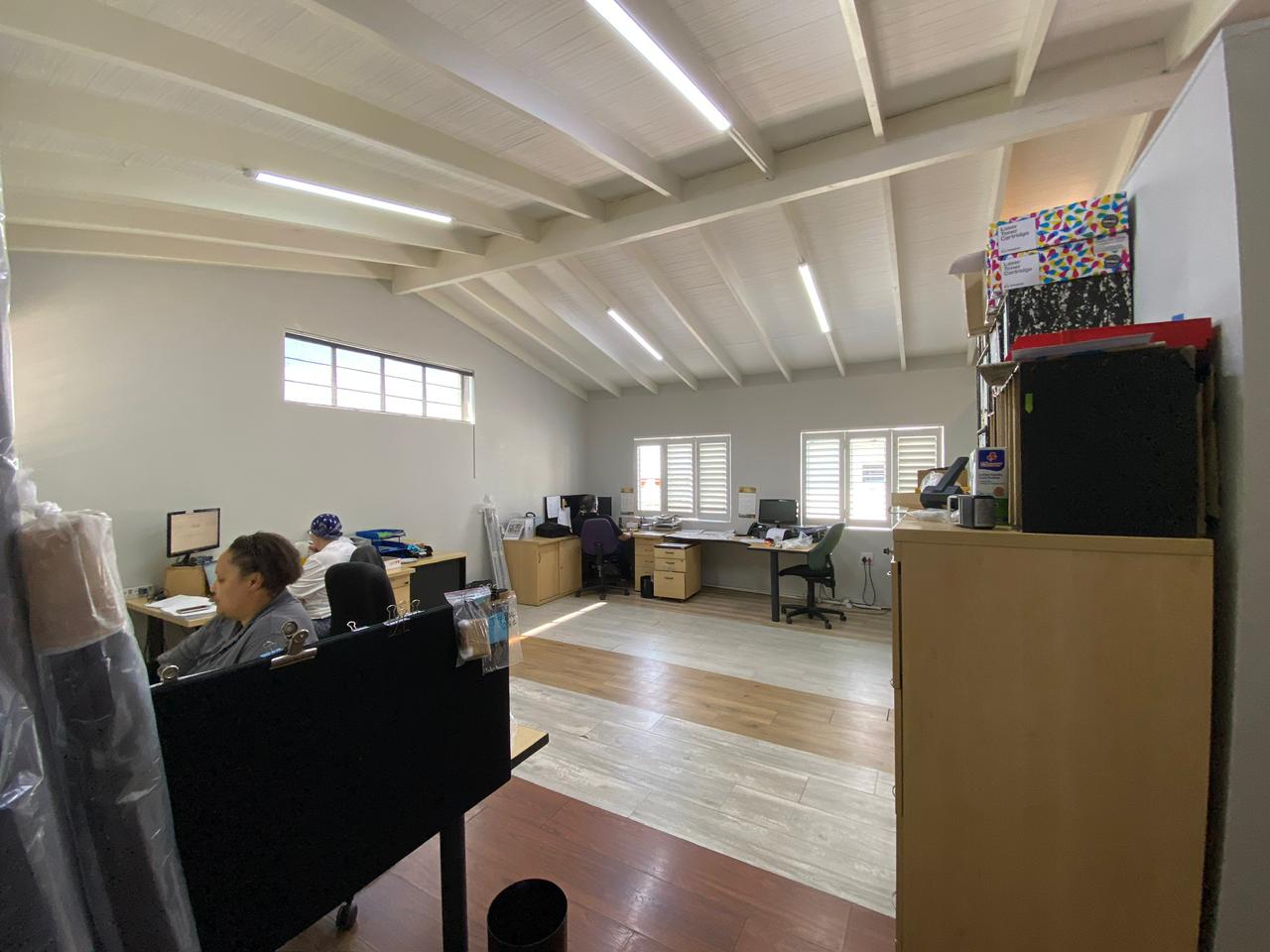 A rare, small office park experience designed for corporates, marketing, photography studios, blinds, and laminate flooring specialists. This 164 sqm space offers flexible layout options: two sections that can be opened into one open-plan area with high ceilings and white wooden slats, or dry-walled to create multiple dedicated spaces. Ideal showroom frontage with strong branding opportunities, including a large external wall sign along the slip road off Jan Smuts Avenue.