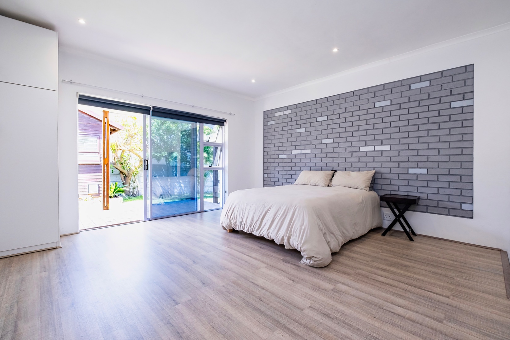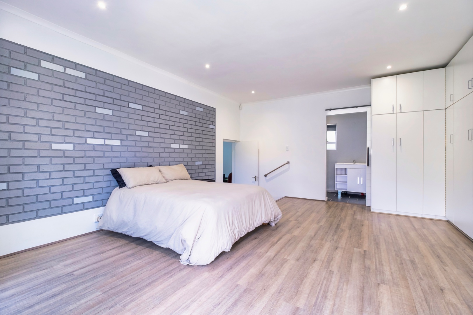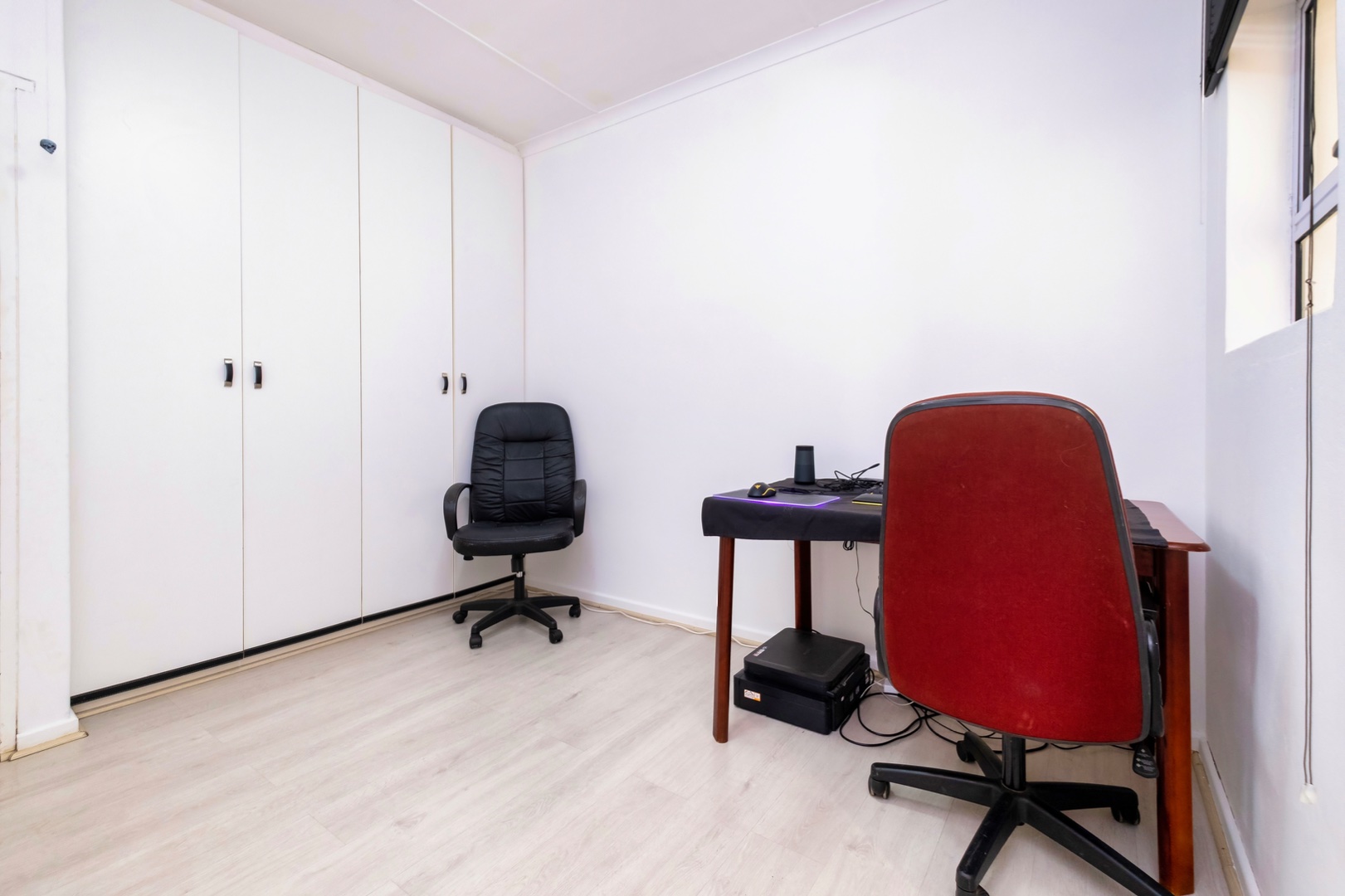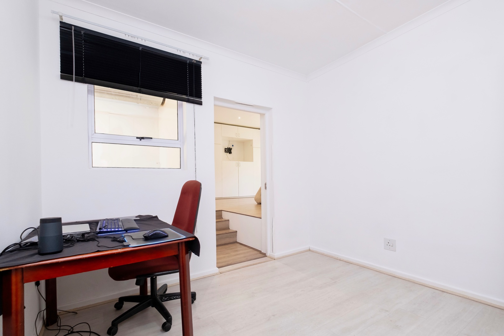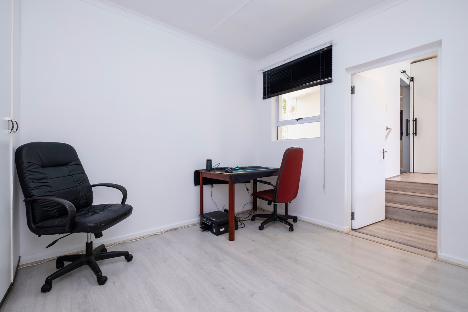 This new-to-market property offers a sunny north-facing position, bathing the home in natural light throughout the day and creating a warm, inviting atmosphere throughout the home. The property features two spacious bedrooms with ample cupboard space, and two modern bathrooms, including a main en-suite, both with neat finishes and contemporary fittings. A third room can be used as a study.