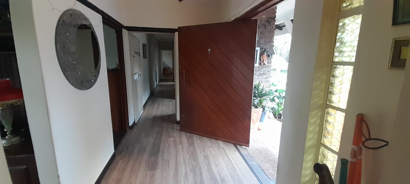 A functional kitchen, dining room, and welcoming entrance hall.