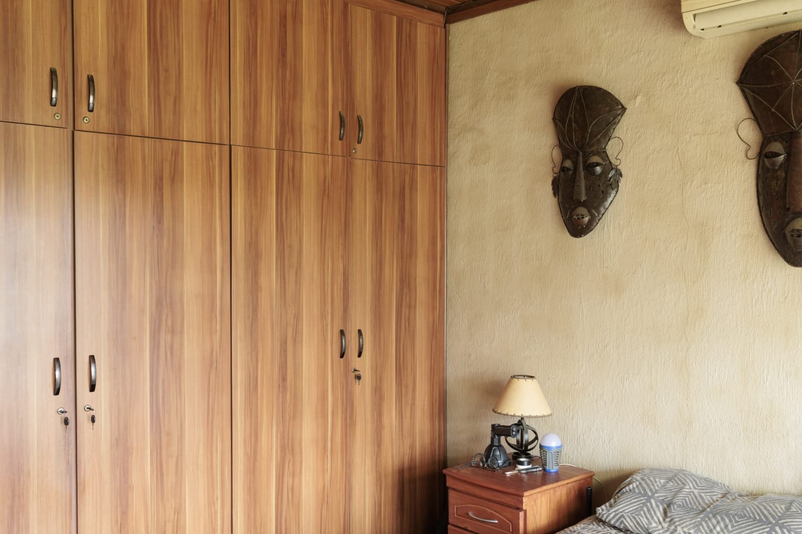 * 1 bedroom with tiled flooring, built in cupboards and an air conditioner.