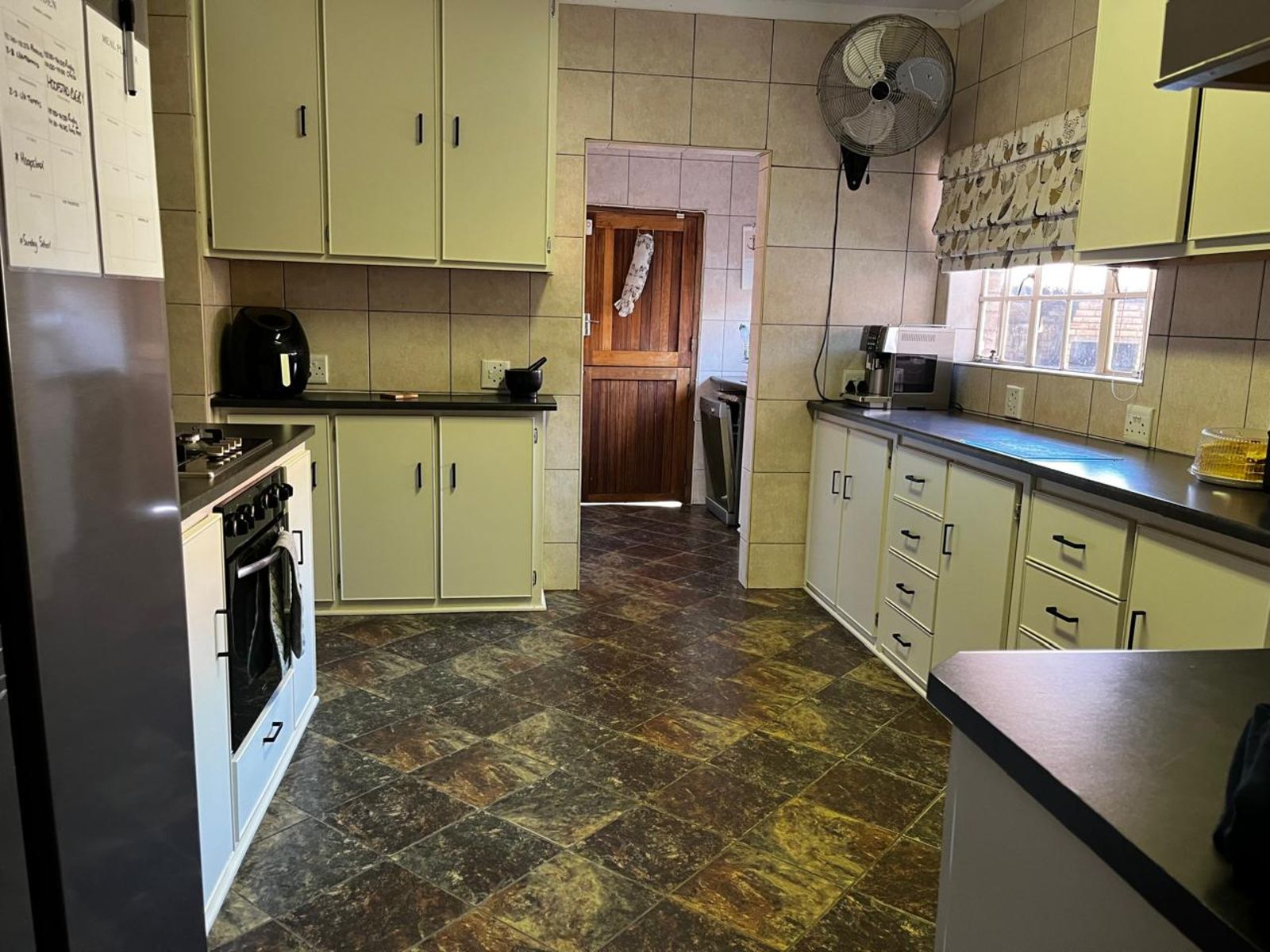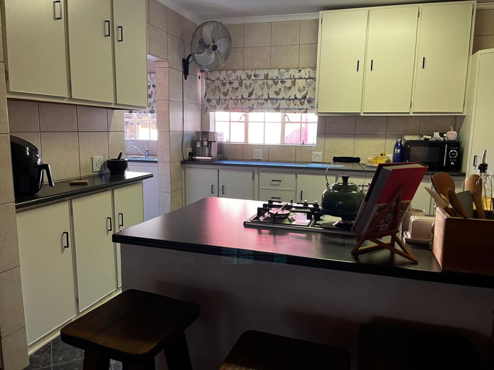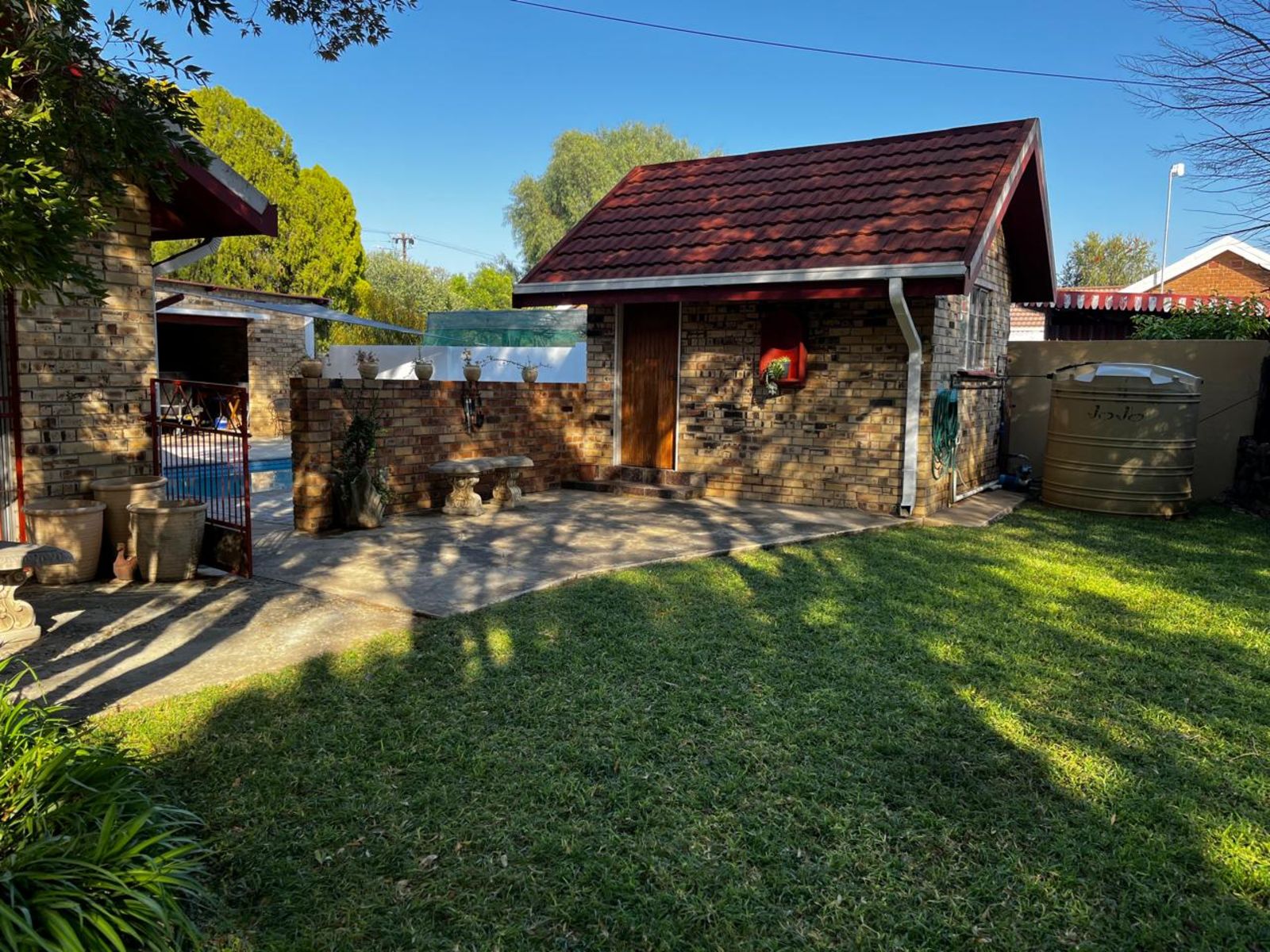 A beautiful modern house has 4 bedrooms, 2 bathrooms, 3 garages, lapa & braai area, swimmig pool, dining room, lounge with built in braai stand and custom made blinds, 2200 LT jojo tank, sculler and pantry, full sprinkler system, outside toilet, study room, laundry room and kitchen