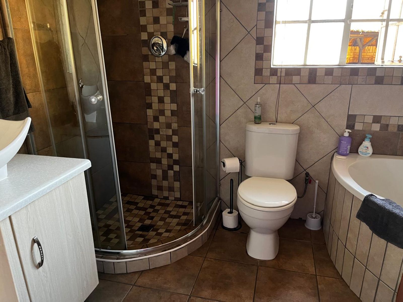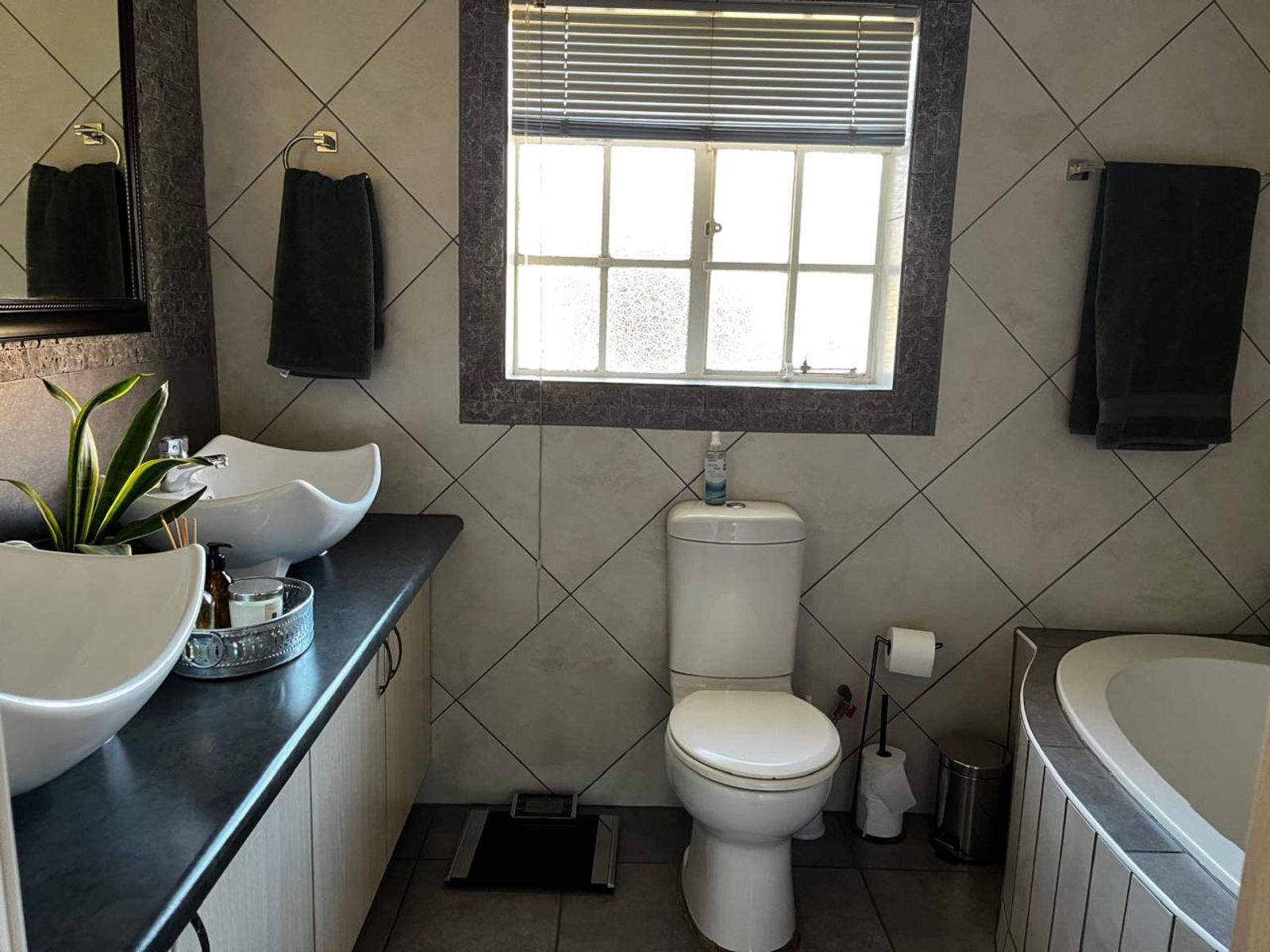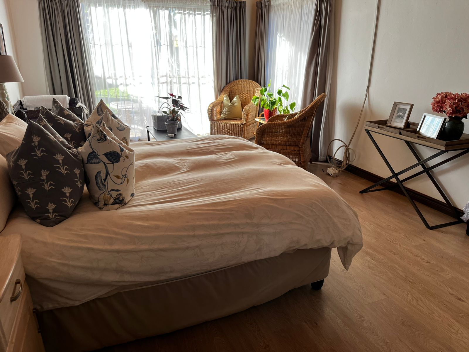 A beautiful modern house has 4 bedrooms, 2 bathrooms, 3 garages, lapa & braai area, swimmig pool, dining room, lounge with built in braai stand and custom made blinds, 2200 LT jojo tank, sculler and pantry, full sprinkler system, outside toilet, study room, laundry room and kitchen