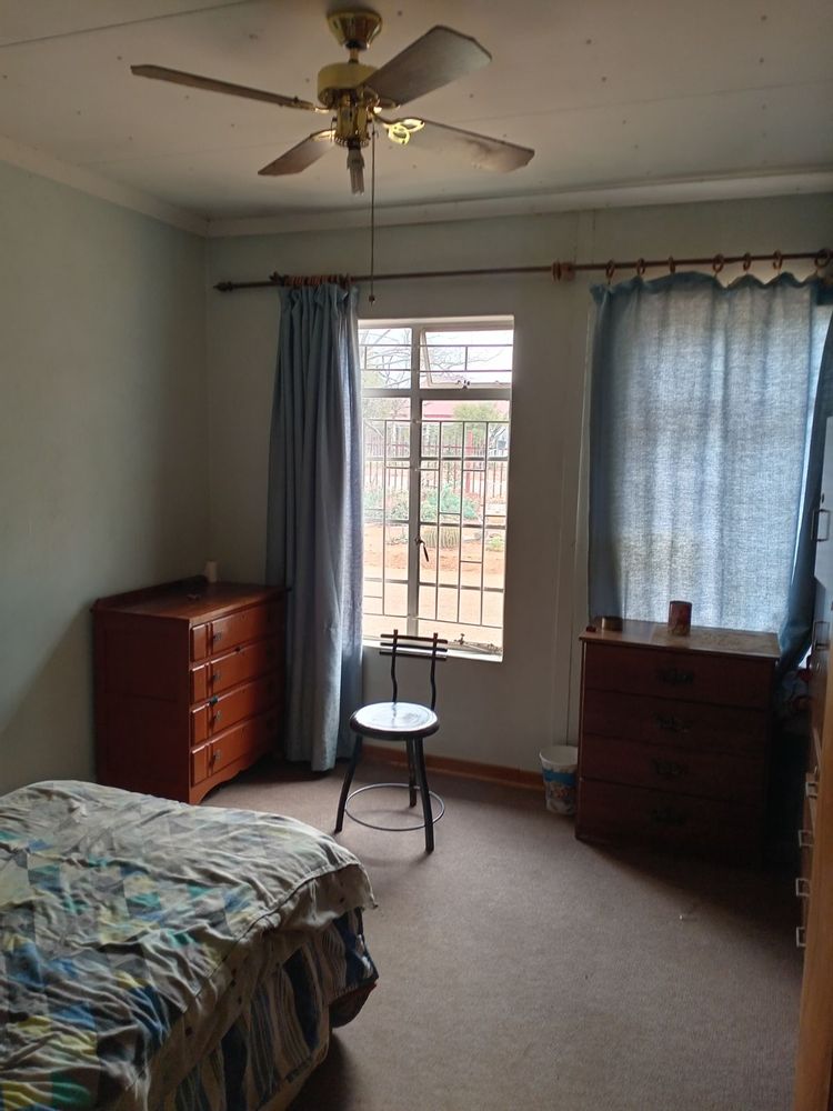 The property has 7 bedrooms, 2 bathrooms, dining, lounge, kitchen, scullery, pantry, patio, single garage, carport, outside room, toilet, borehole, 2 jojo tanks, automatic generator, 4 solar flood lights, 1 airconditioner, big space in the front and it is fenced