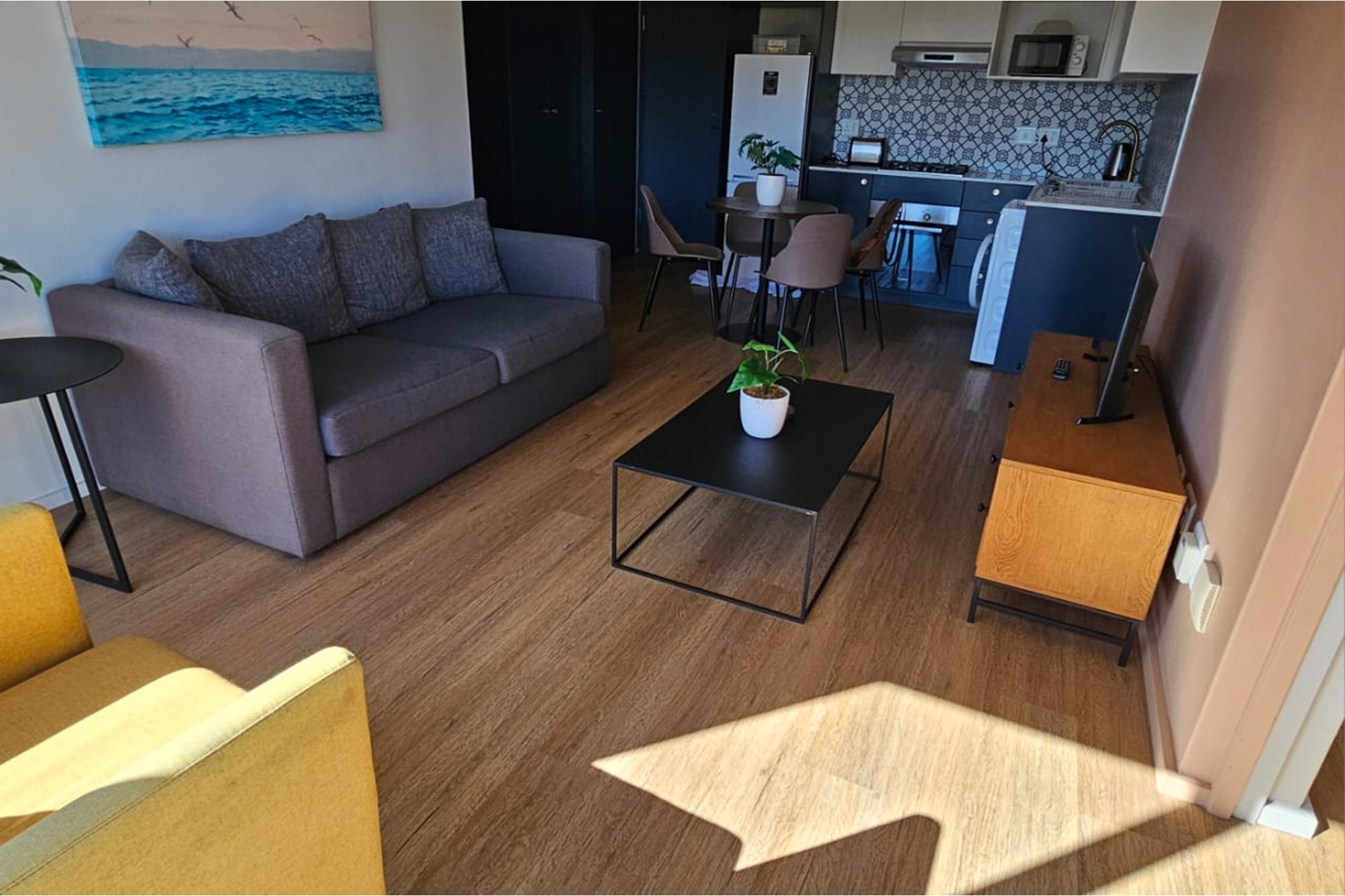 Welcome to your new coastal haven nestled in the picturesque neighborhood of Bloubergstrand, Western Cape, South Africa. This stunning 2-bedroom, 1-bathroom apartment offers an unparalleled living experience for those seeking comfort and convenience by the ocean.