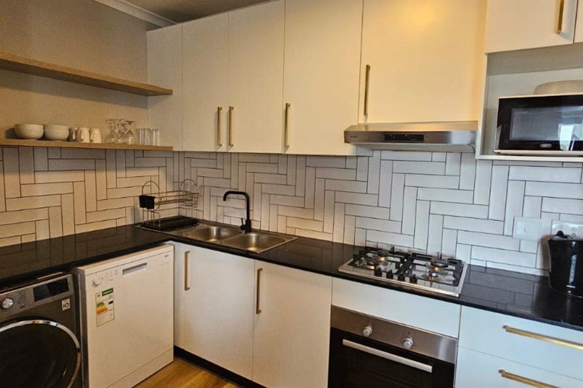You'll love the modern kitchen, equipped a fridge, microwave, hob, and gas stove. The open-plan design extends into a cozy living area, seamlessly flowing onto a private balcony. Enjoy breathtaking views while sipping your morning coffee or unwind after a long day.