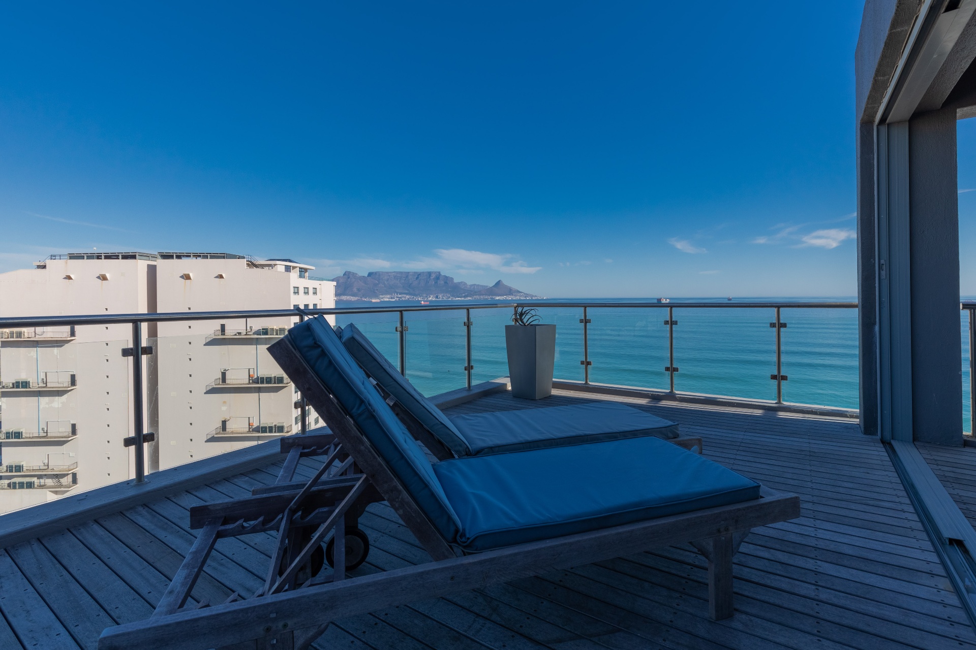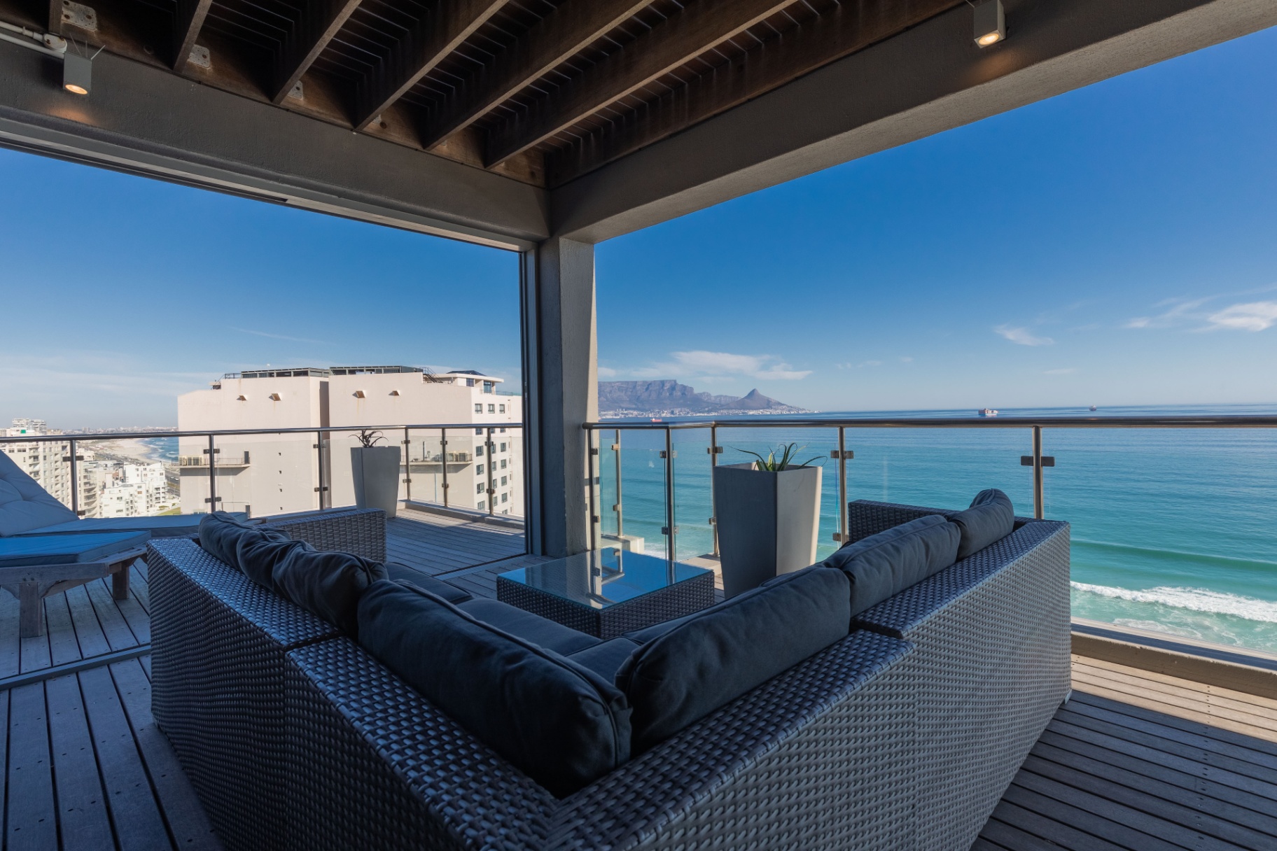 Perched high on the 11th & 12th floors, this almost 400m2, double-level luxury fully furnished apartment commands uninterrupted views of Table Mountain, the Atlantic Ocean, and Cape Town’s world-famous Kite Beach.