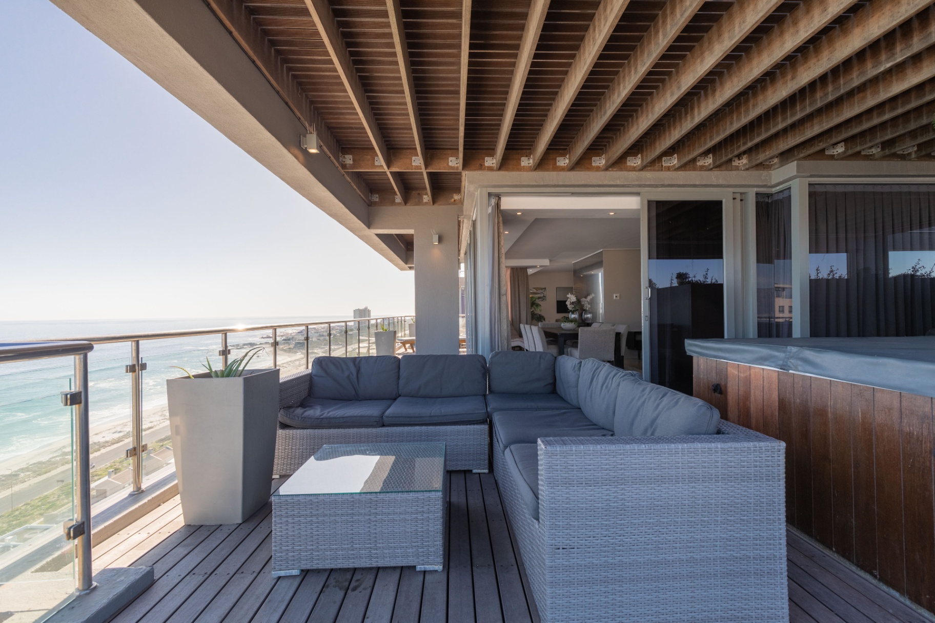· Expansive balcony with hot tub, braai area, and outdoor seating