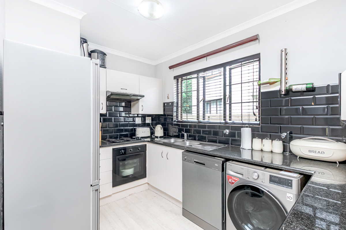 The kitchen is functional and well laid out, flowing seamlessly into the living area. Both bedrooms are well sized, with the main bedroom offering an en-suite bathroom and air conditioning.