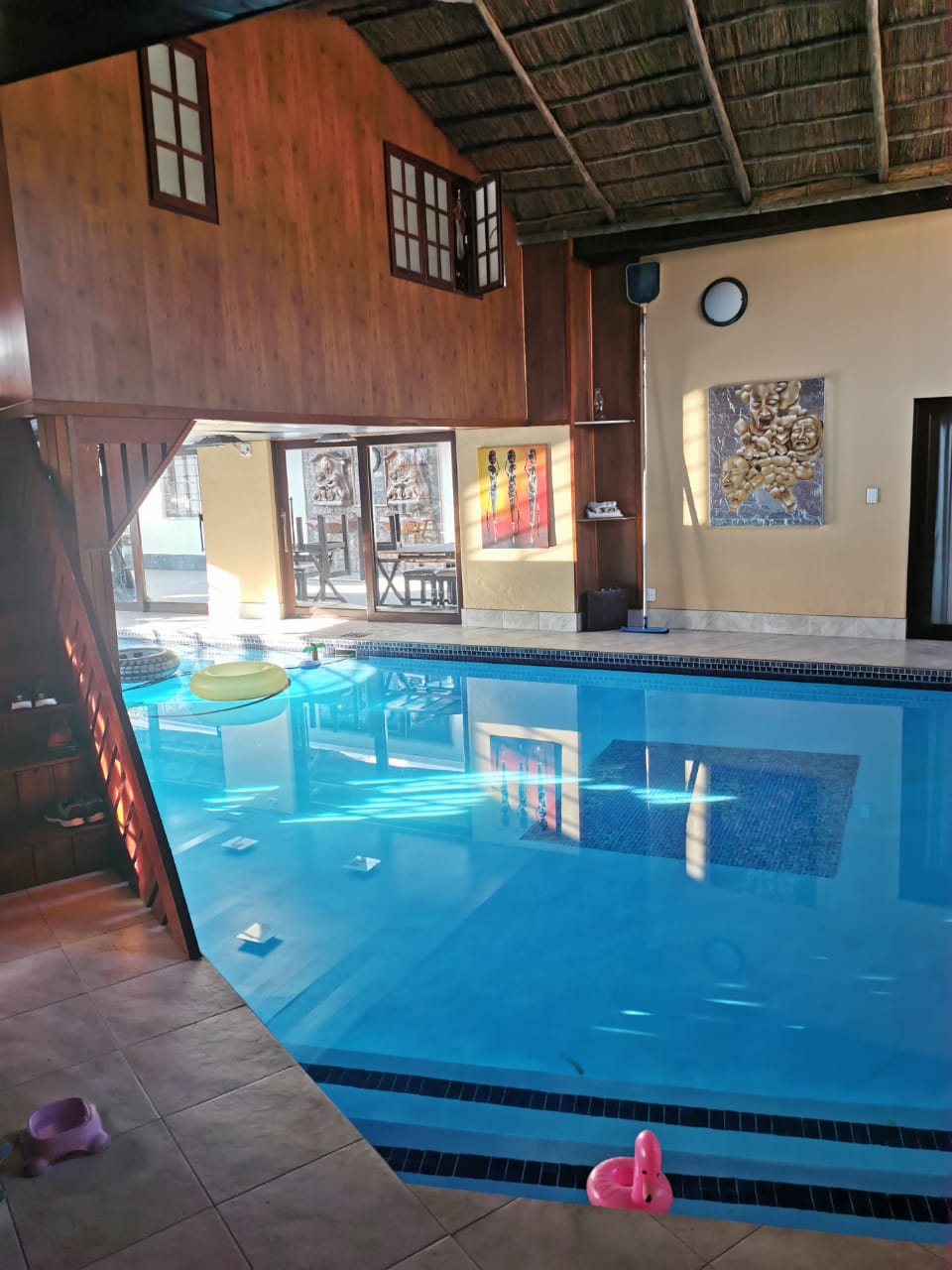 Discover this stunning 5-bedroom residence located in the charming suburb of Bloubosrand, just a stone's throw from Deco Park and Pick n Pay on Witkoppen Road. This architecturally distinctive home features an indoor swimming pool and spacious bedrooms, complemented by 4 bathrooms, 2 lounges, a dining room, 2 kitchens, and a double garage, with the master suite offering a lavish en-suite bathroom.