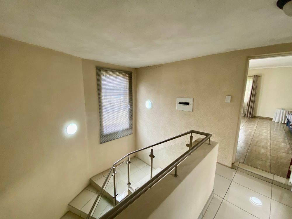 The other upstairs room is just as spacious with a on suite bathroom with shower. This bedroom can accommodate three double beds and has plenty cupboard space. Trelidoors as well as sensor beams cover the surrounds of the home. This large home also features staff accommodation with a en-suite bathroom.