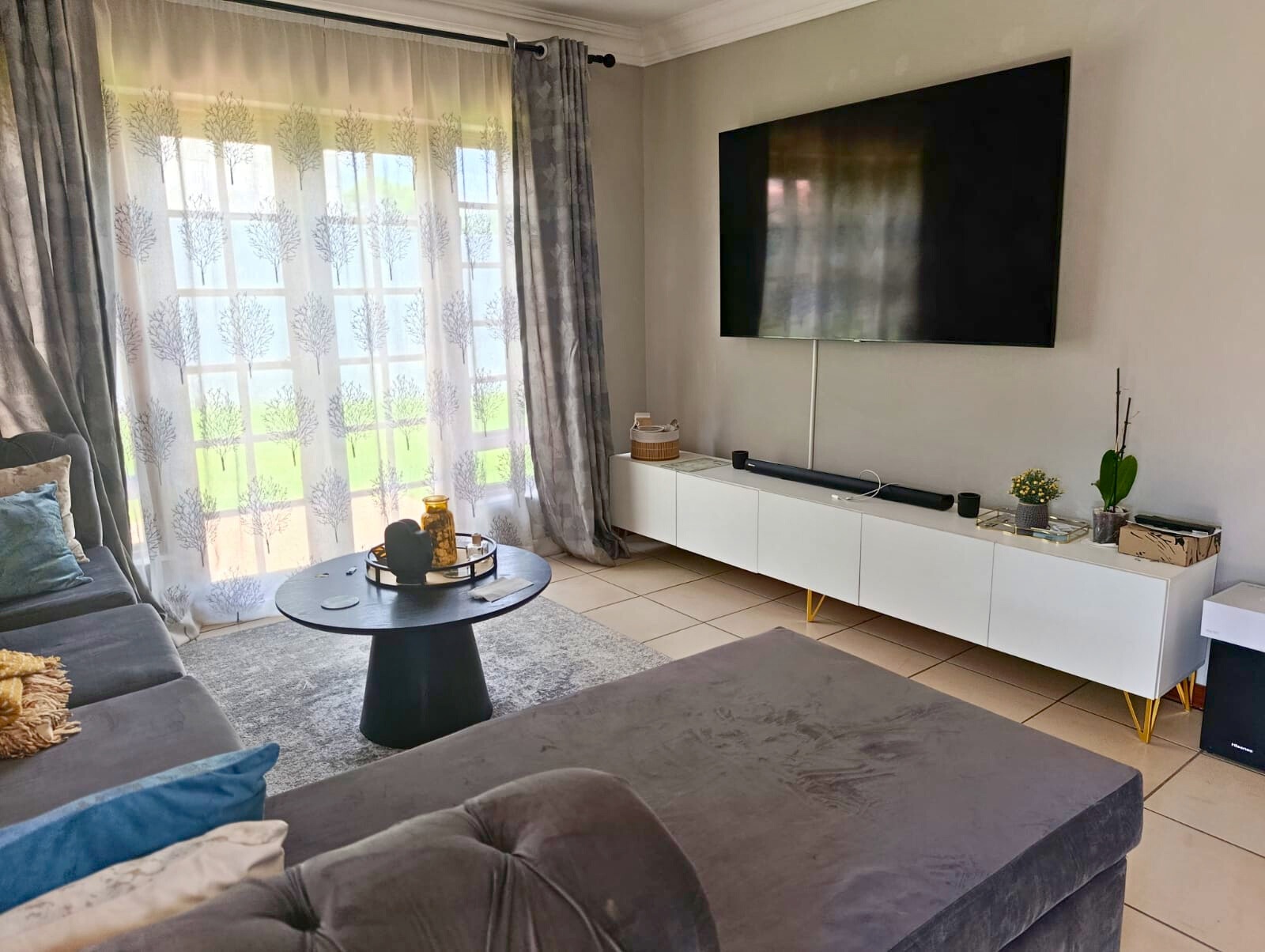 Step inside to a welcoming atmosphere, featuring a spacious lounge that provides the perfect setting for relaxation or entertaining guests. The modern kitchen is thoughtfully designed, offering ample space for meal preparation and culinary creativity.