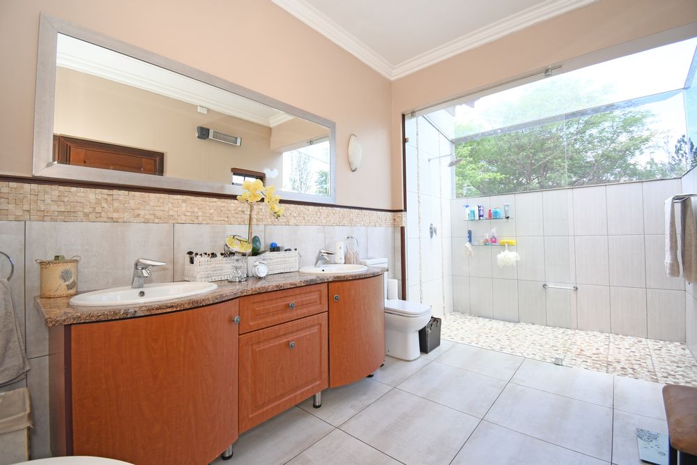 Each of the five bedrooms is generously sized, with ample natural light streaming through large windows each bedroom boasts it's own bathroom. The master suite boasts a walk-in closet, opens out to the garden and pool and offers a spa-like en-suite bathroom. The 5th bedroom is located on the opposite side of the home making it a perfect spot for guests or long term visitors plus has it's own private lounge.