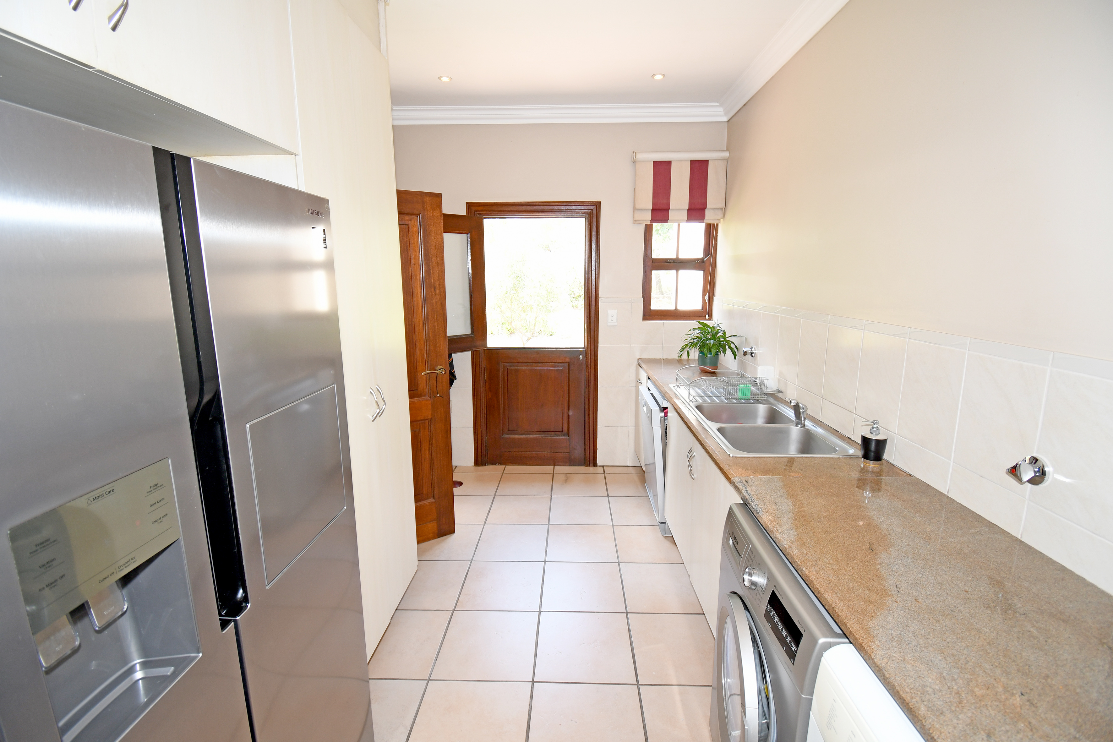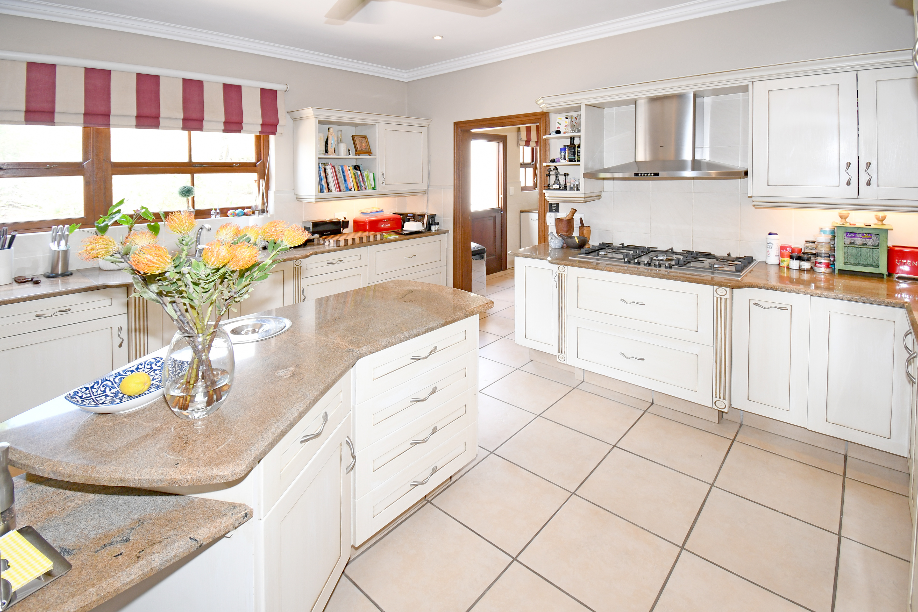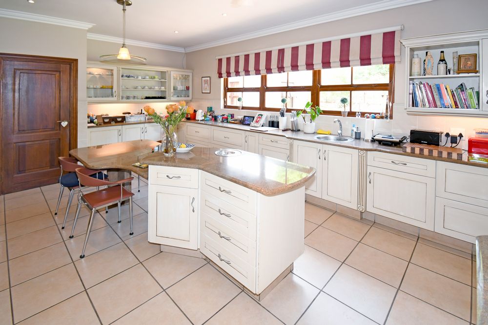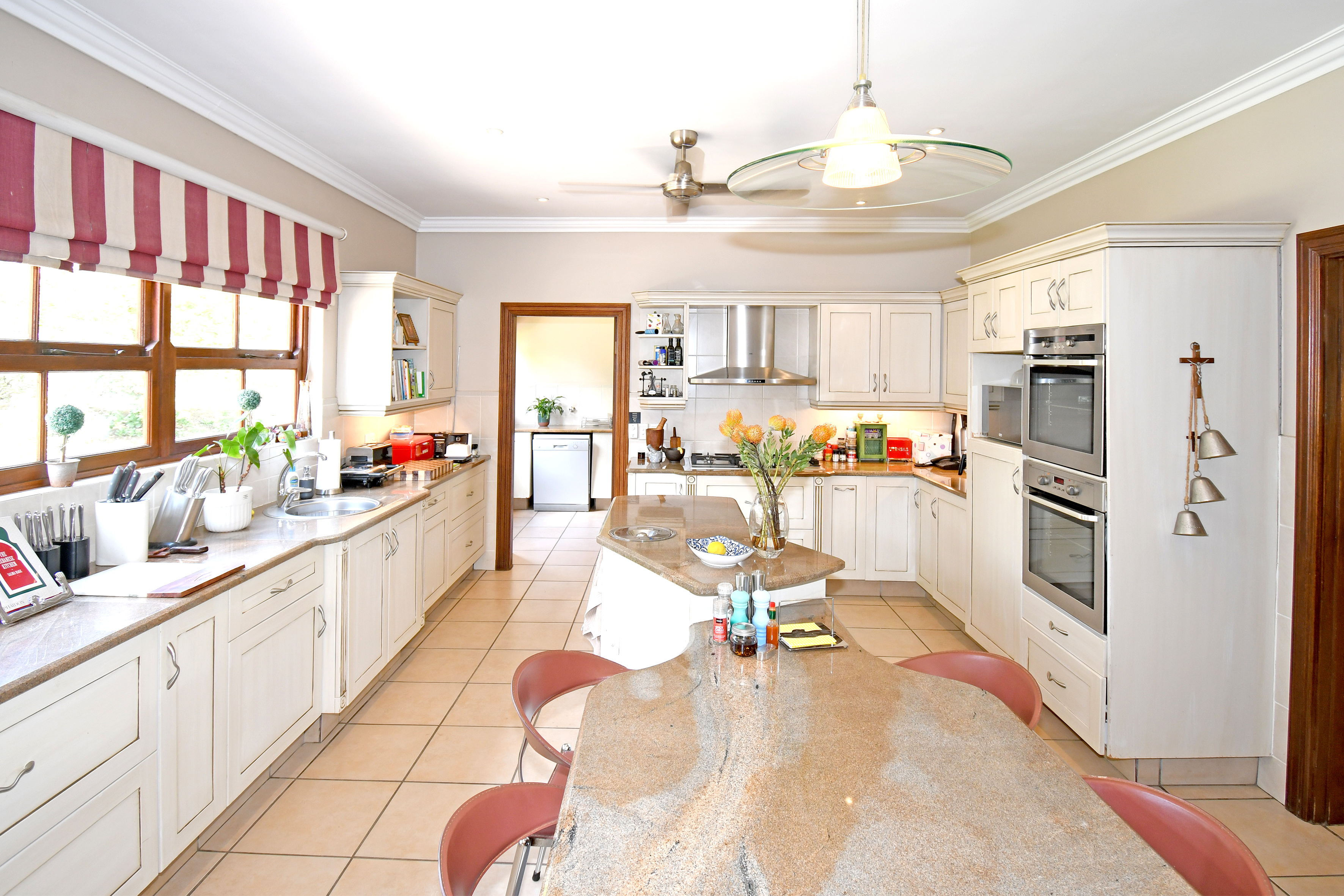 Gourmet Kitchen: Equipped with high-end appliances, built in breakfast nook, gas hob, and a large island, this kitchen is perfect for both everyday meals and hosting guests. Large separate scullery with space for all appliances.