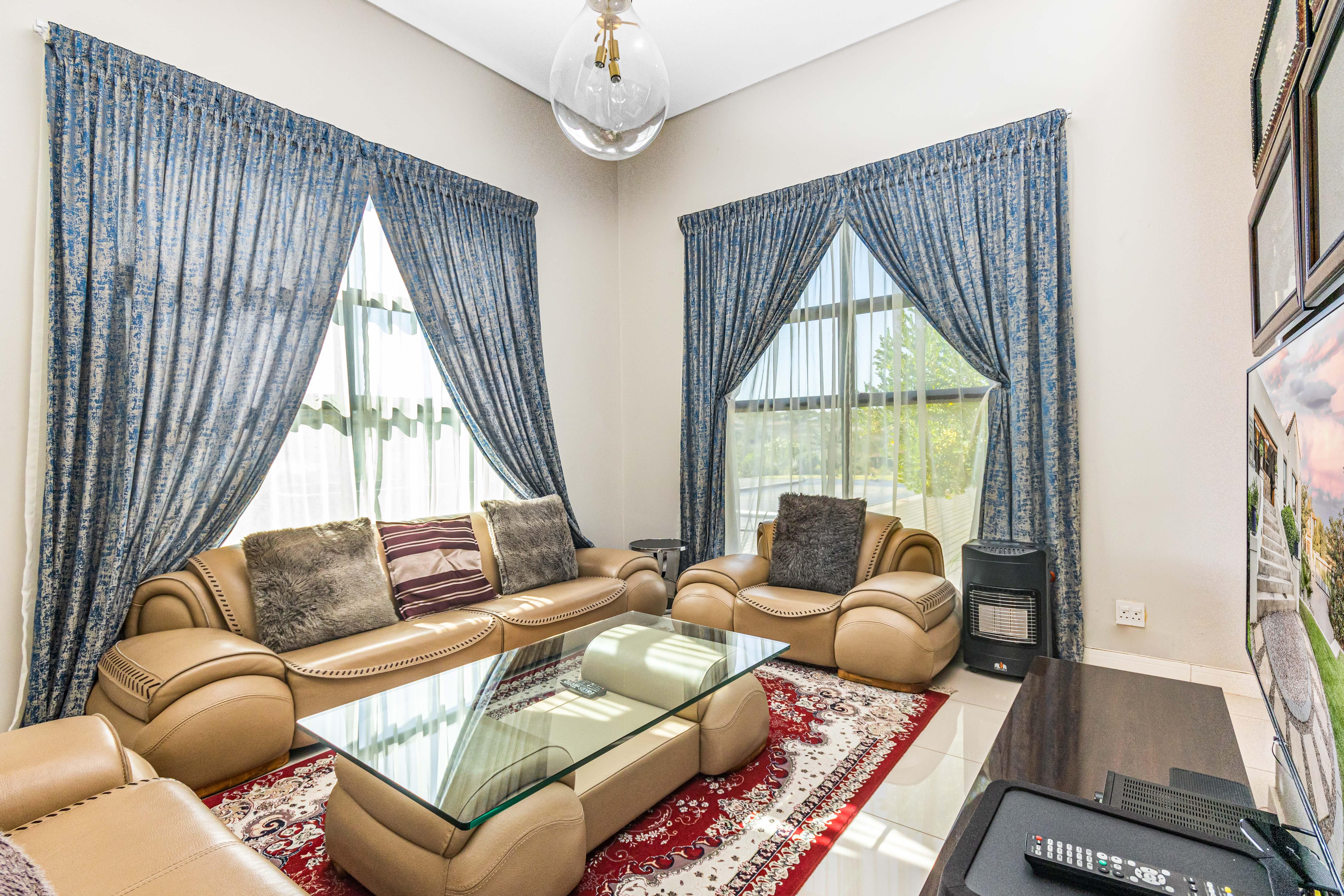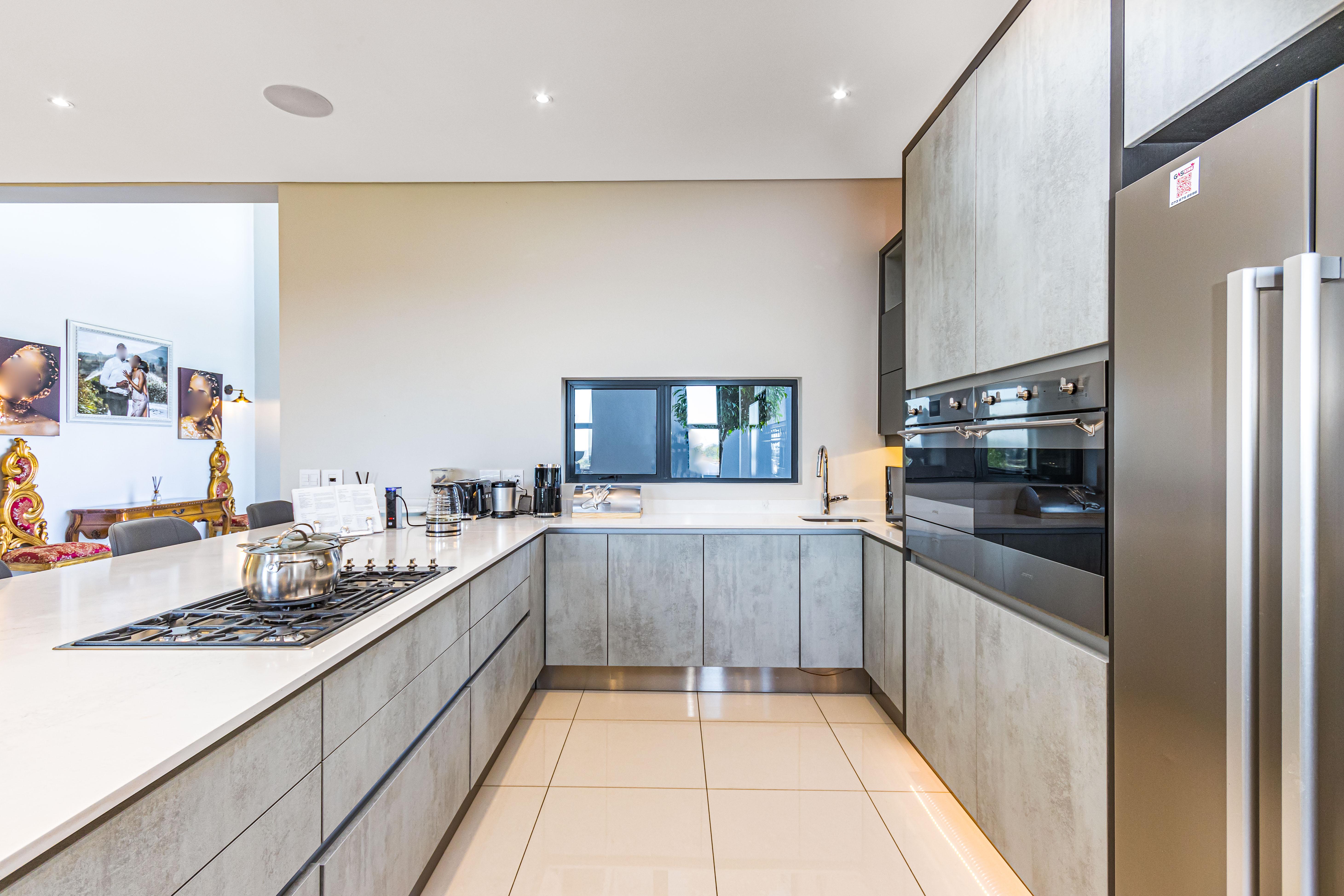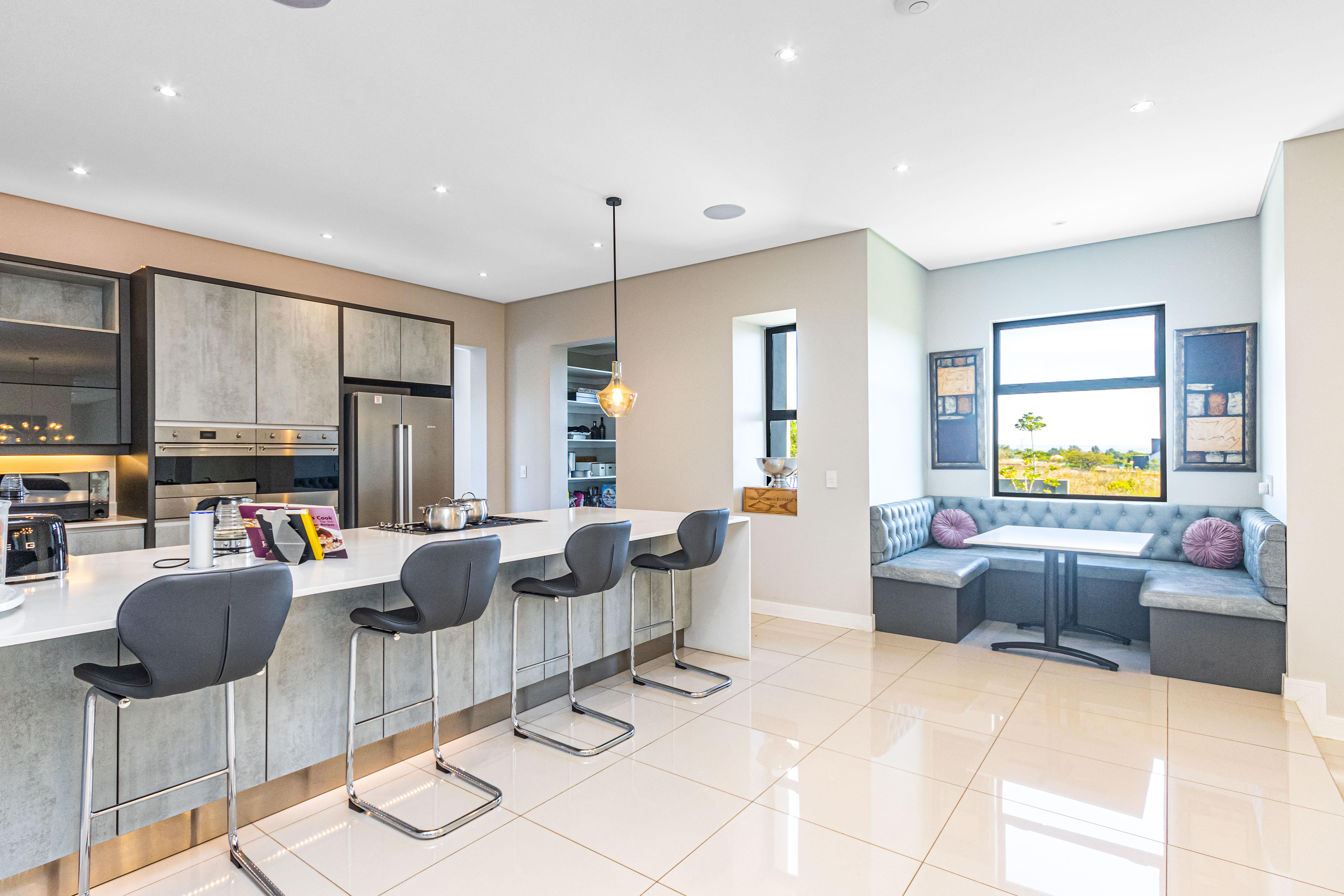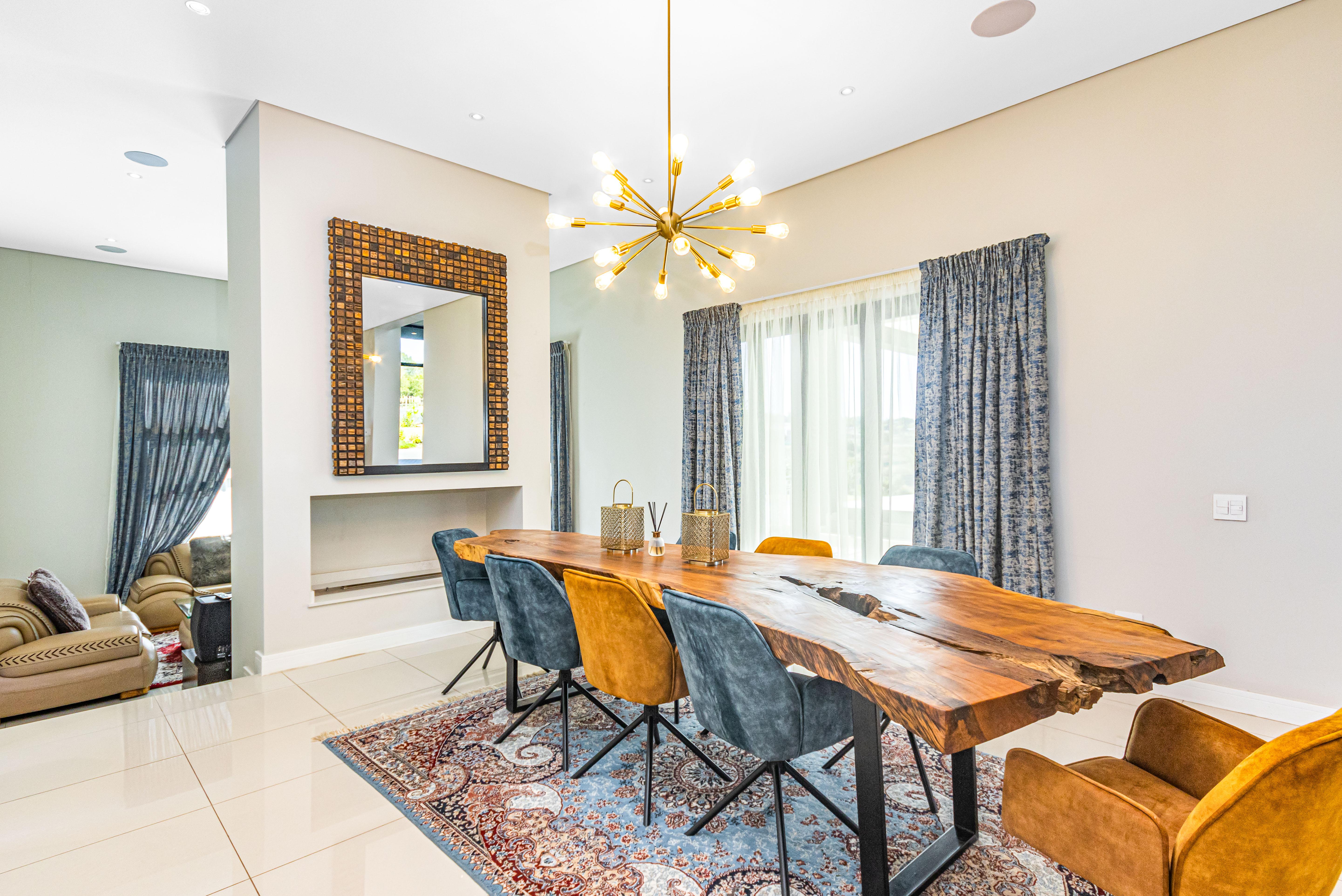The main living area flows seamlessly into a large, covered patio with a built-in braai looking out onto the garden and pool...the perfect space to unwind and entertain by the poolside.