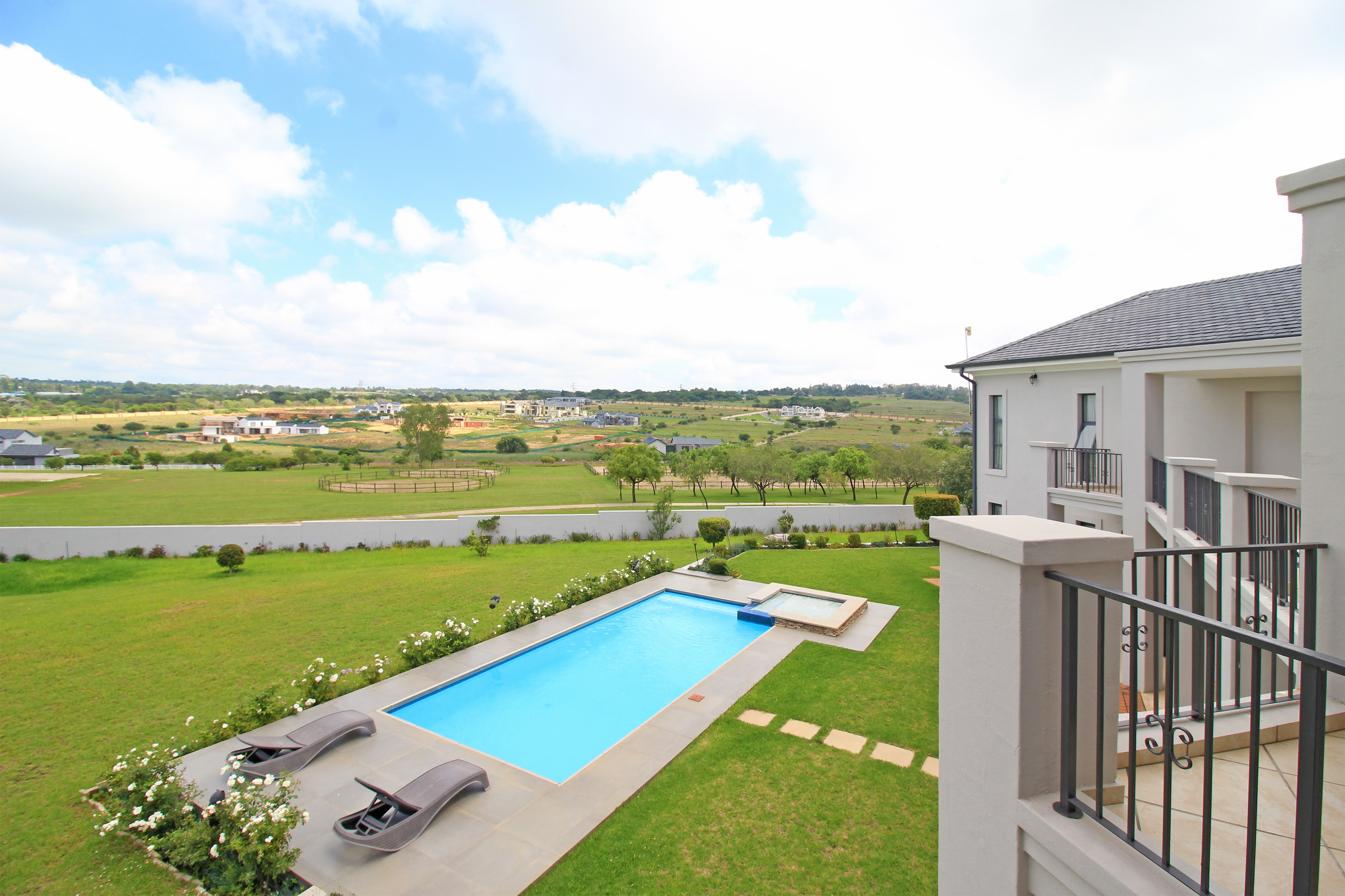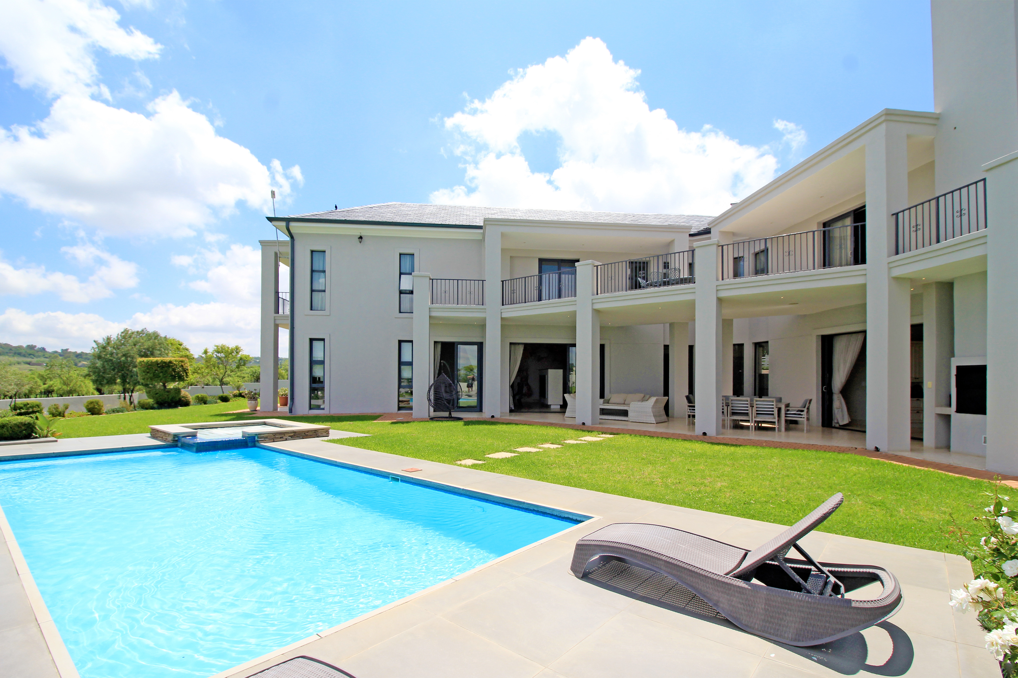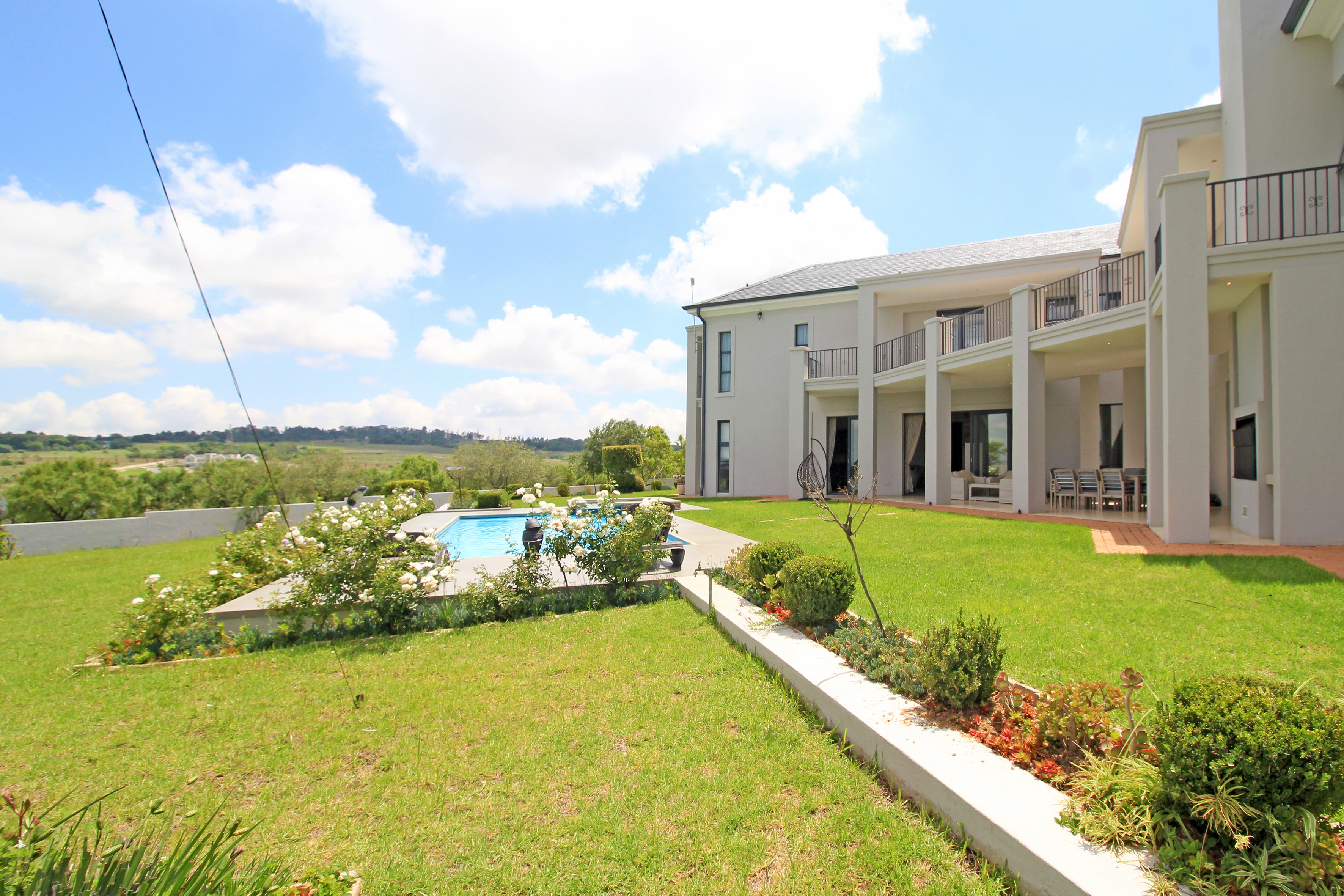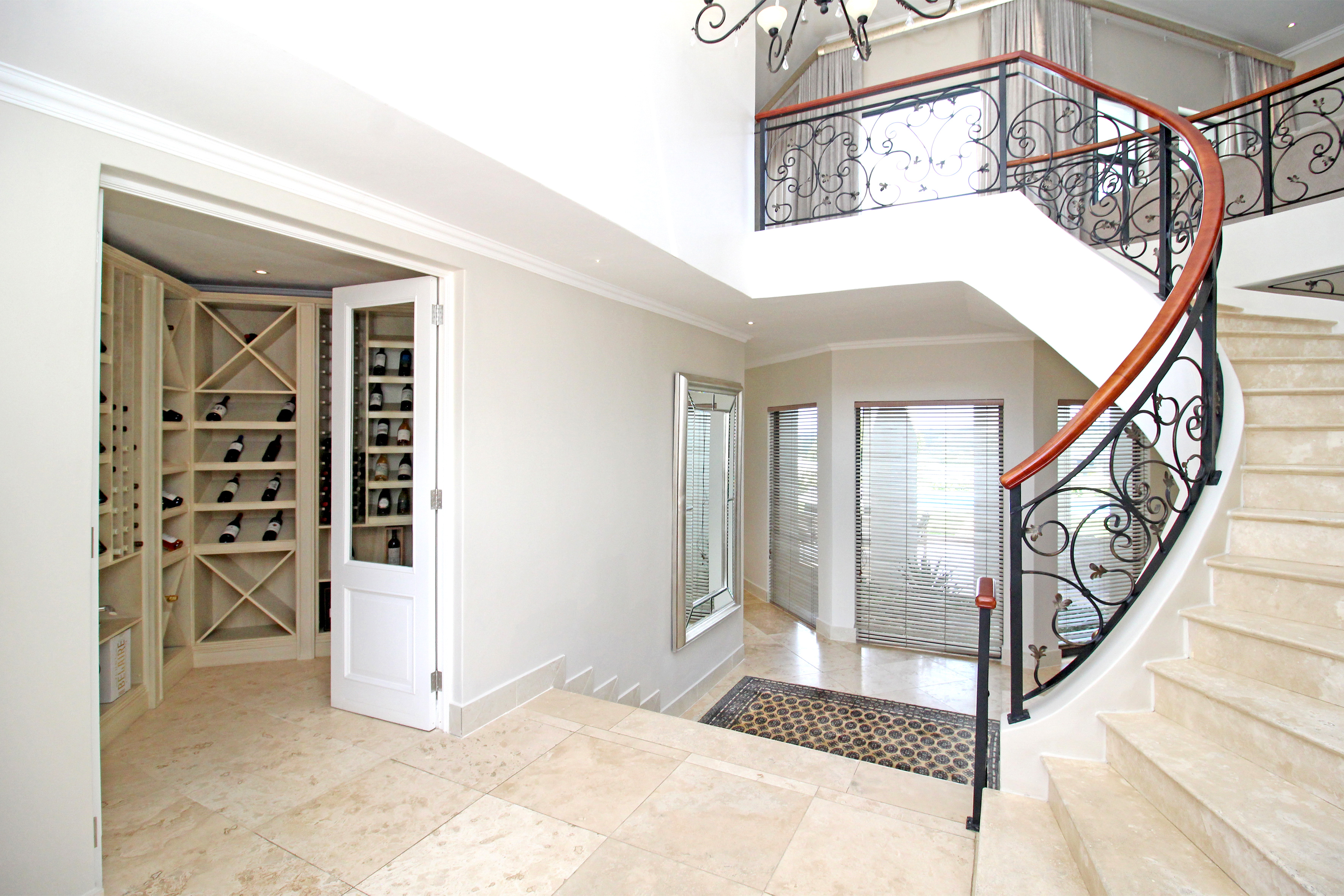 Wine cellar, several storerooms, solar geysers, borehole, surround sound, 2 double garages, invertor, upstairs pj lounge and a 2 bedroom fully self contained flatlet with own kitchen, lounge and patio.