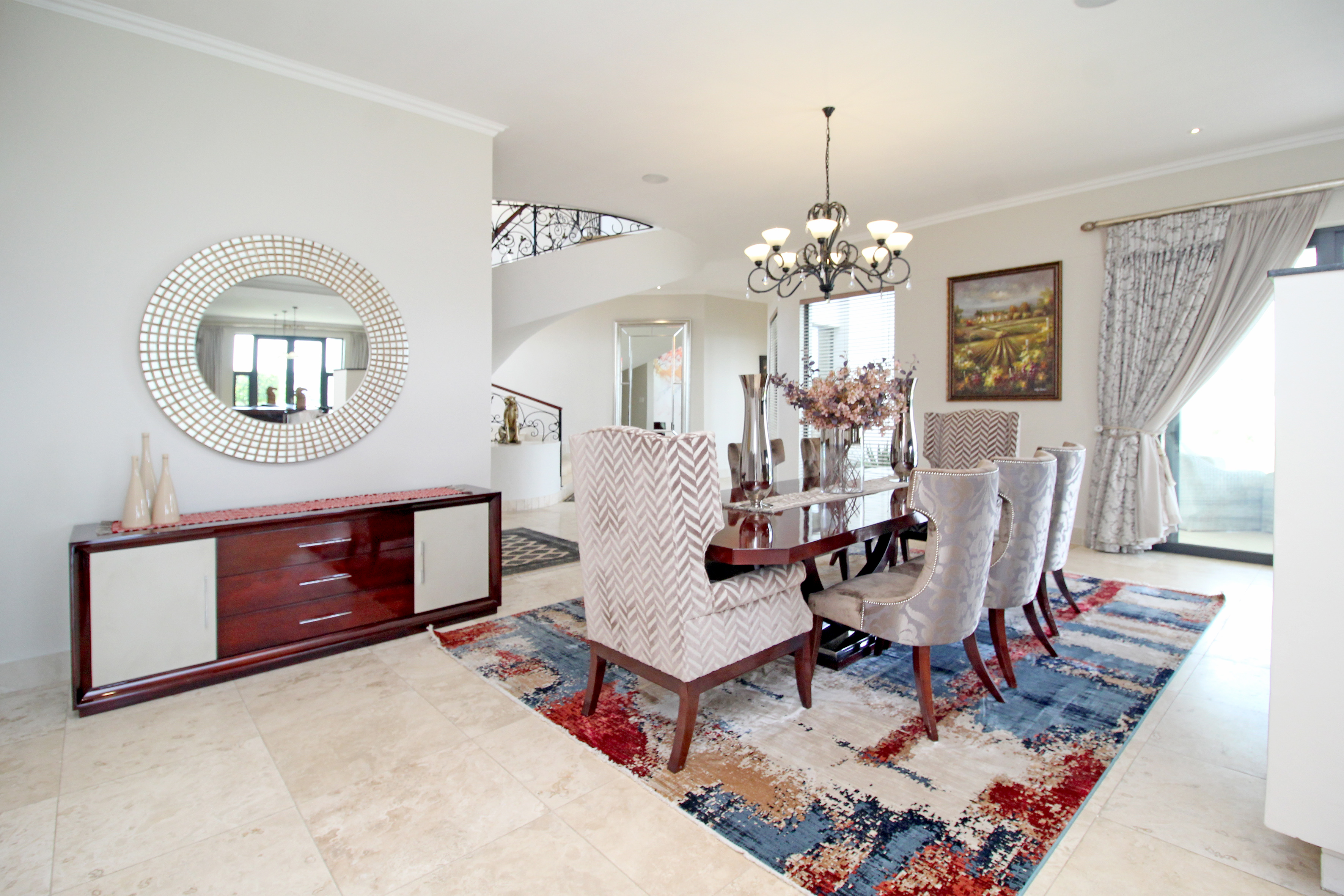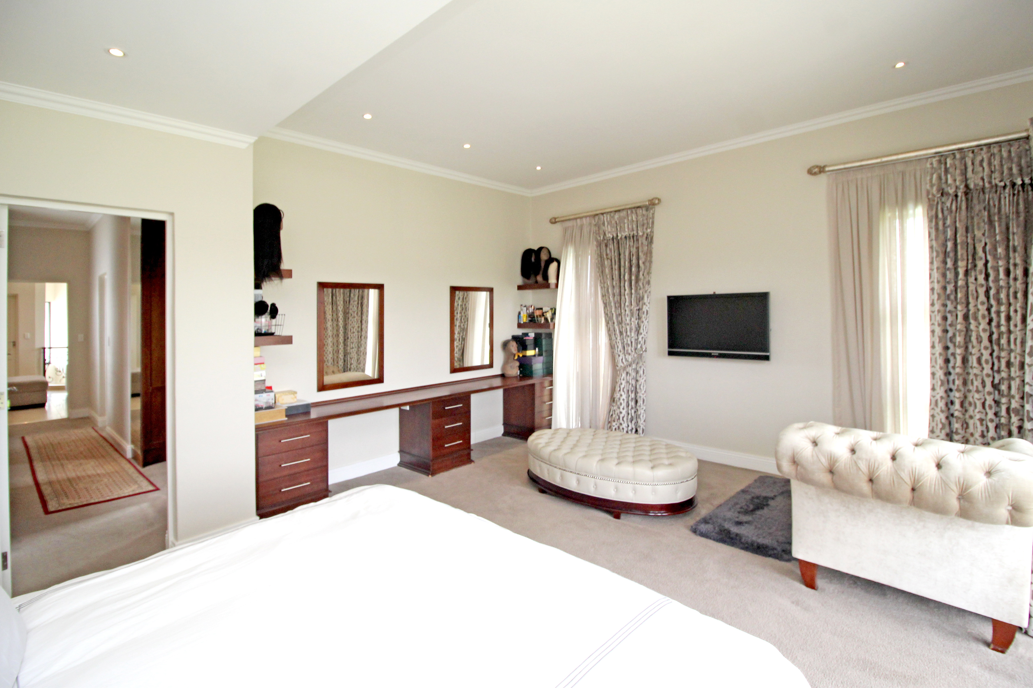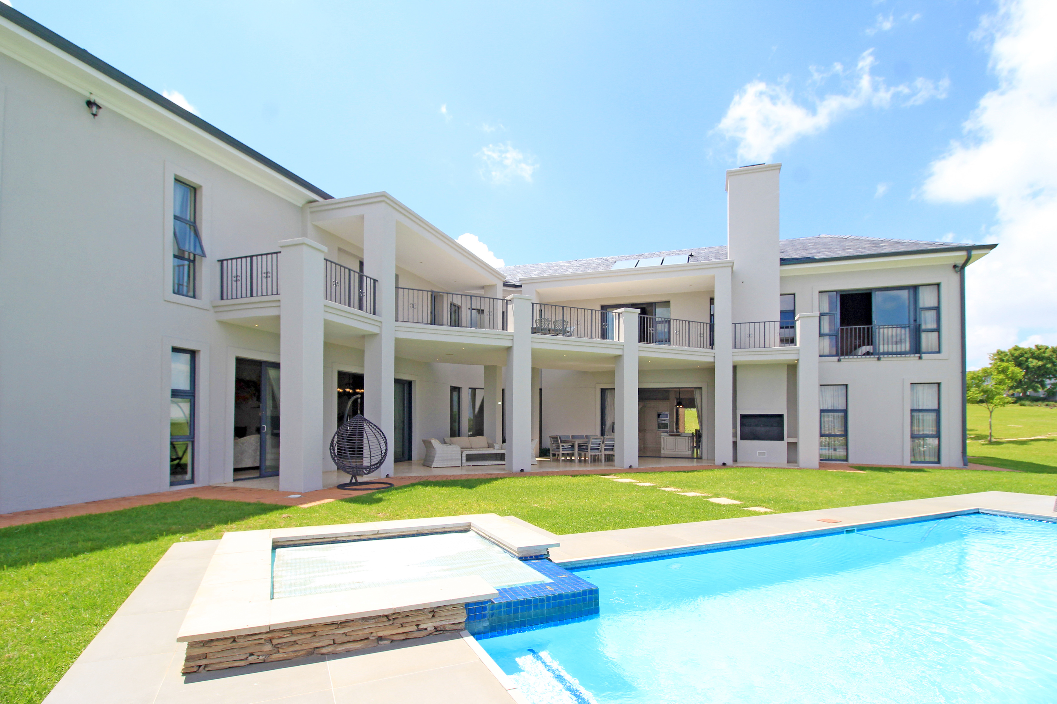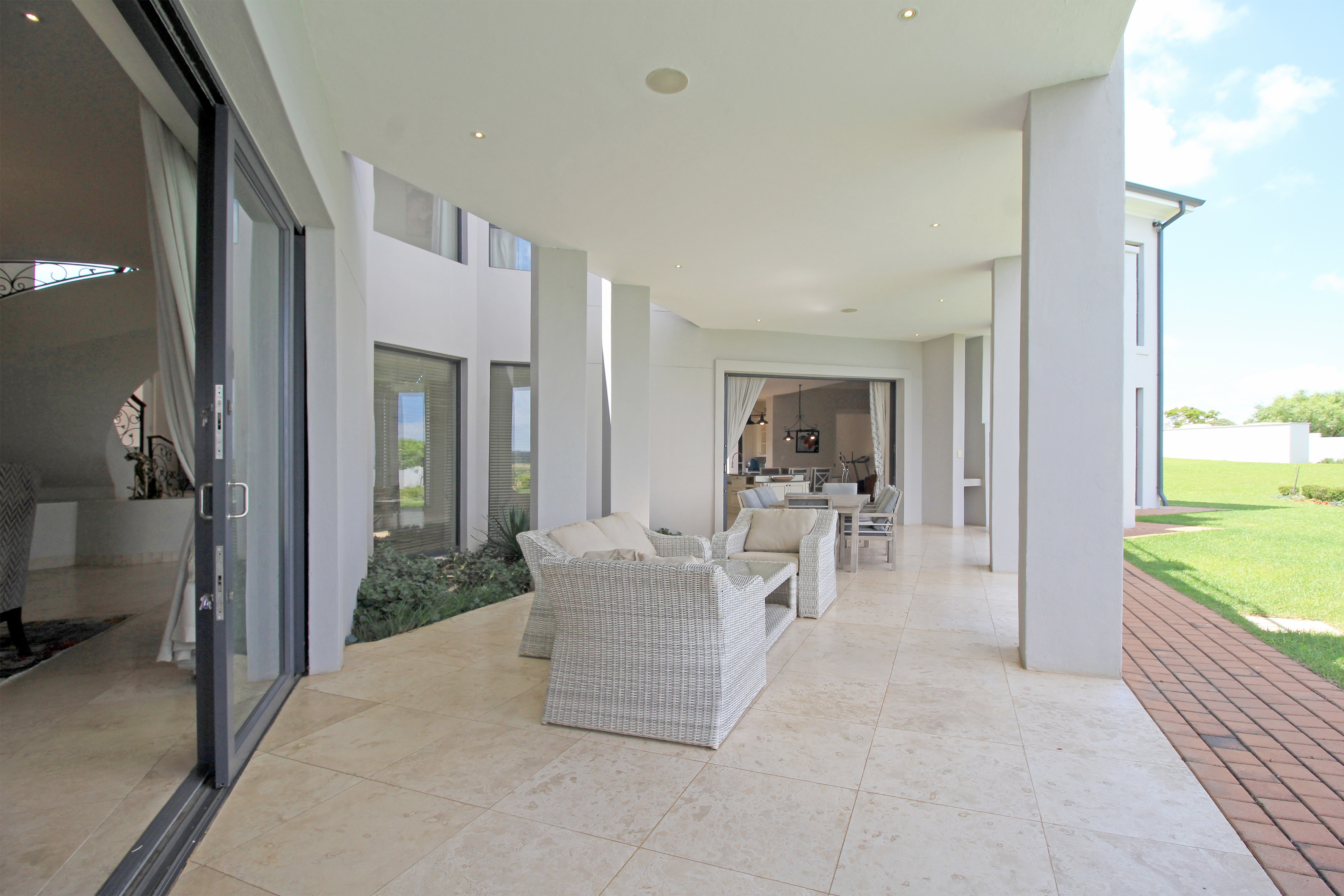 Wine cellar, several storerooms, solar geysers, borehole, surround sound, 2 double garages, invertor, upstairs pj lounge and a 2 bedroom fully self contained flatlet with own kitchen, lounge and patio.