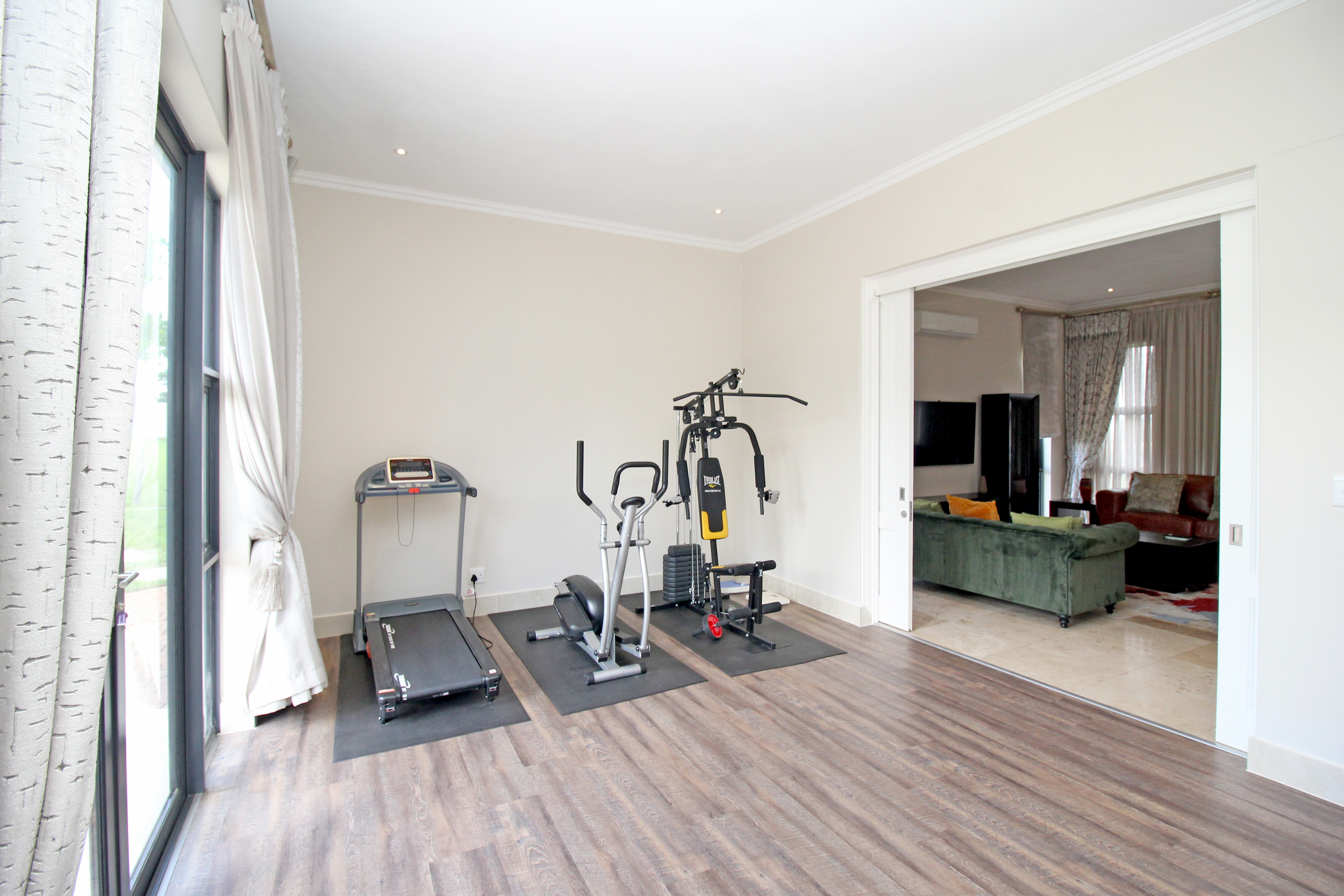Gym room with serene garden views to inspire your fitness routine.