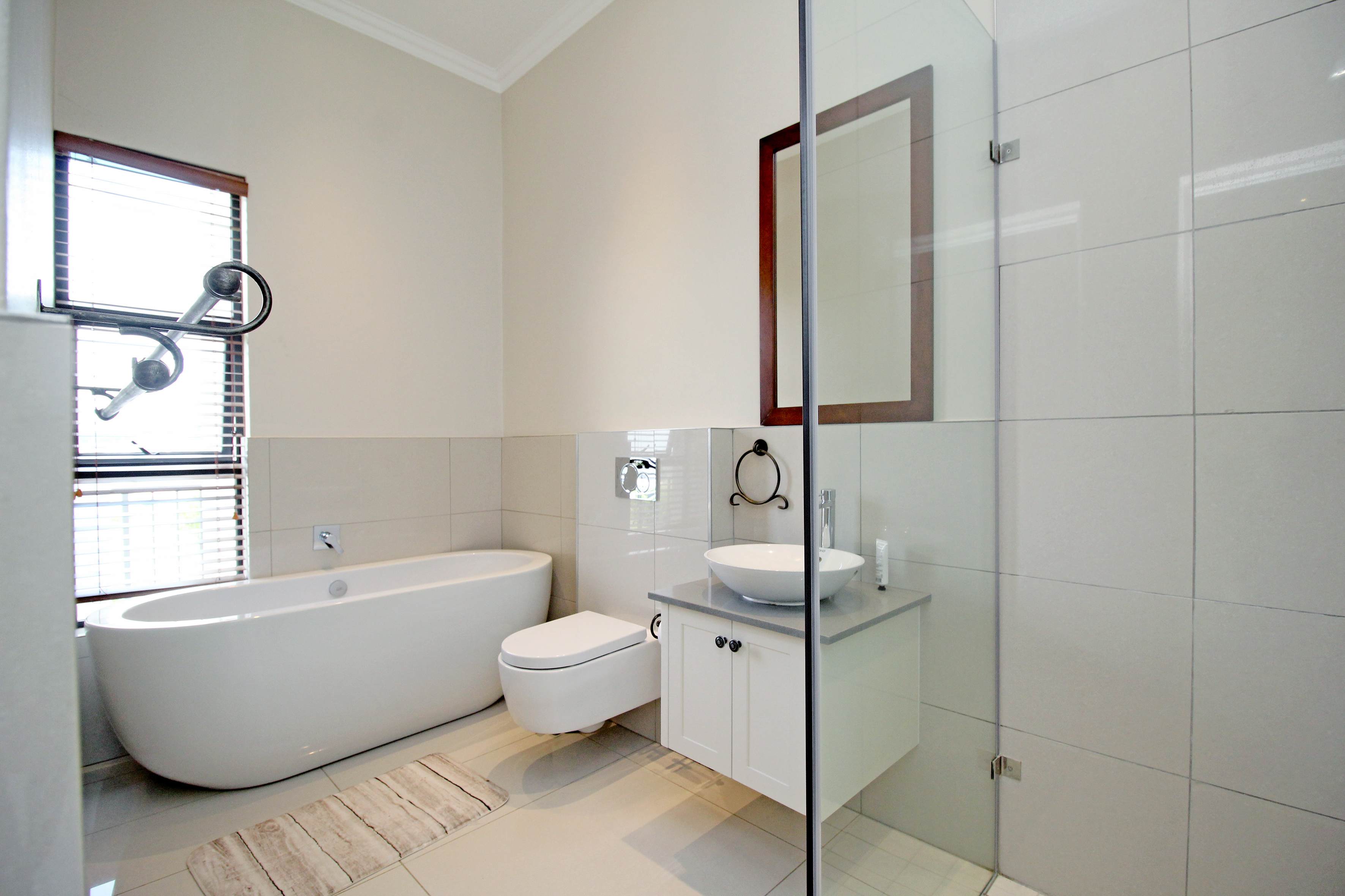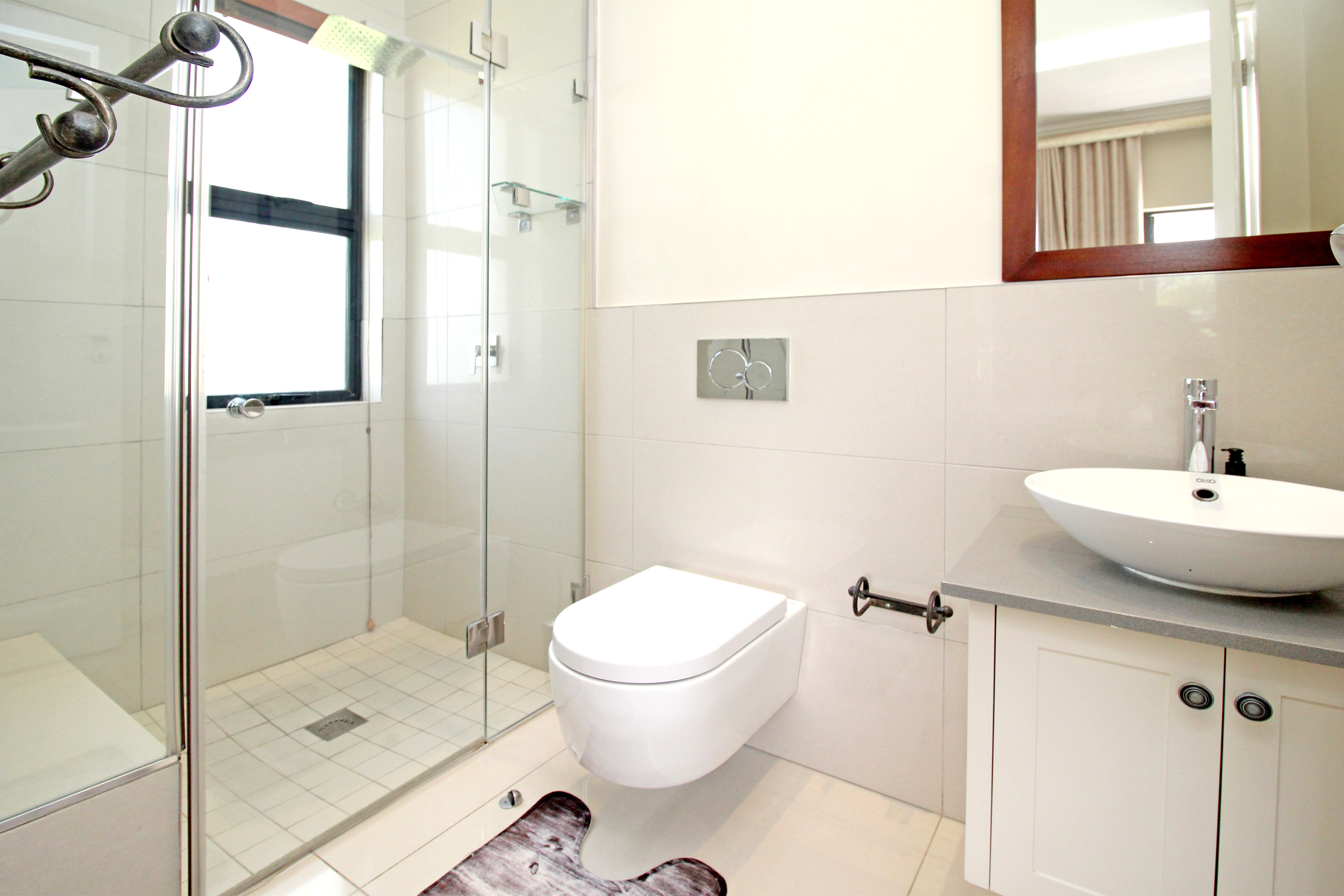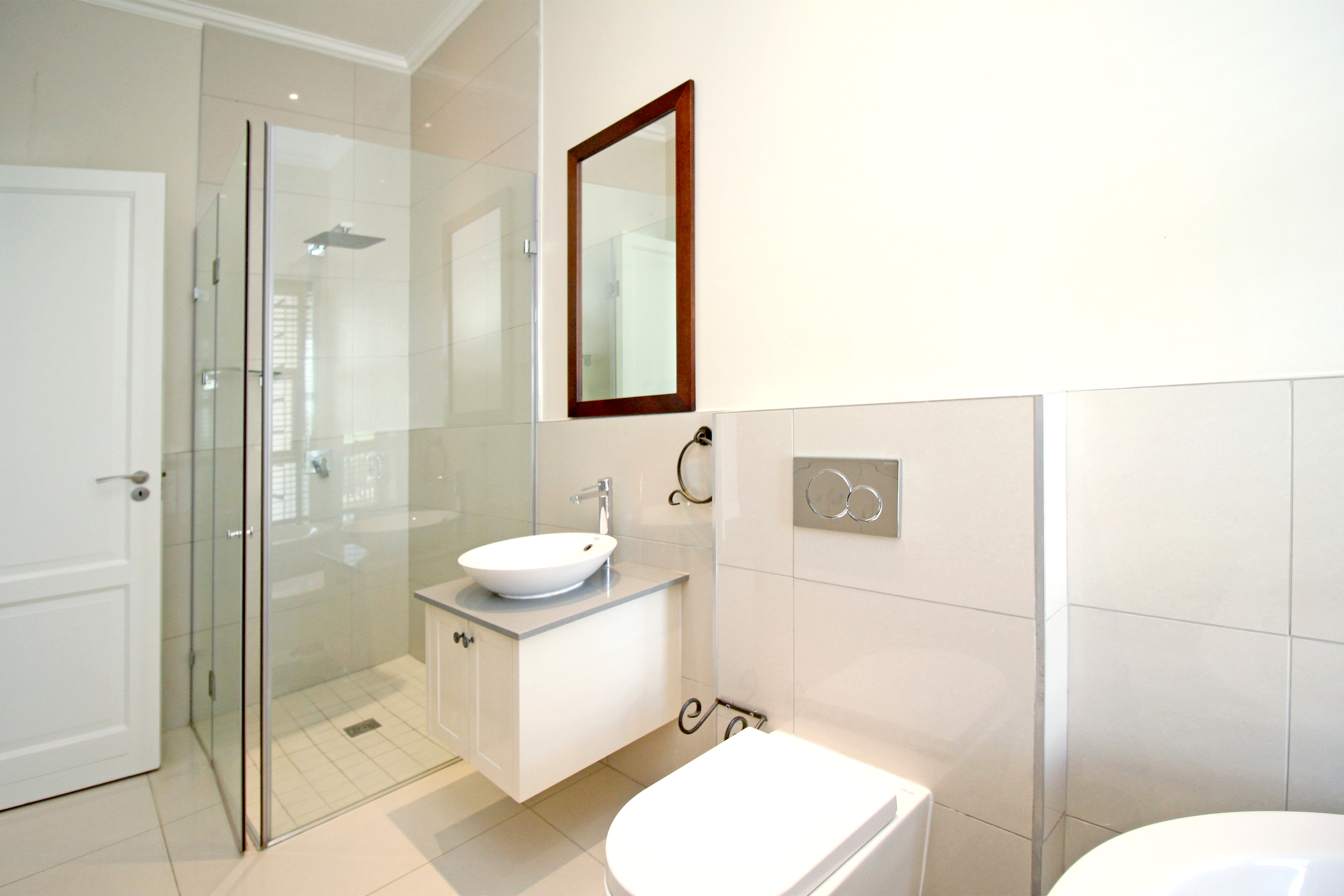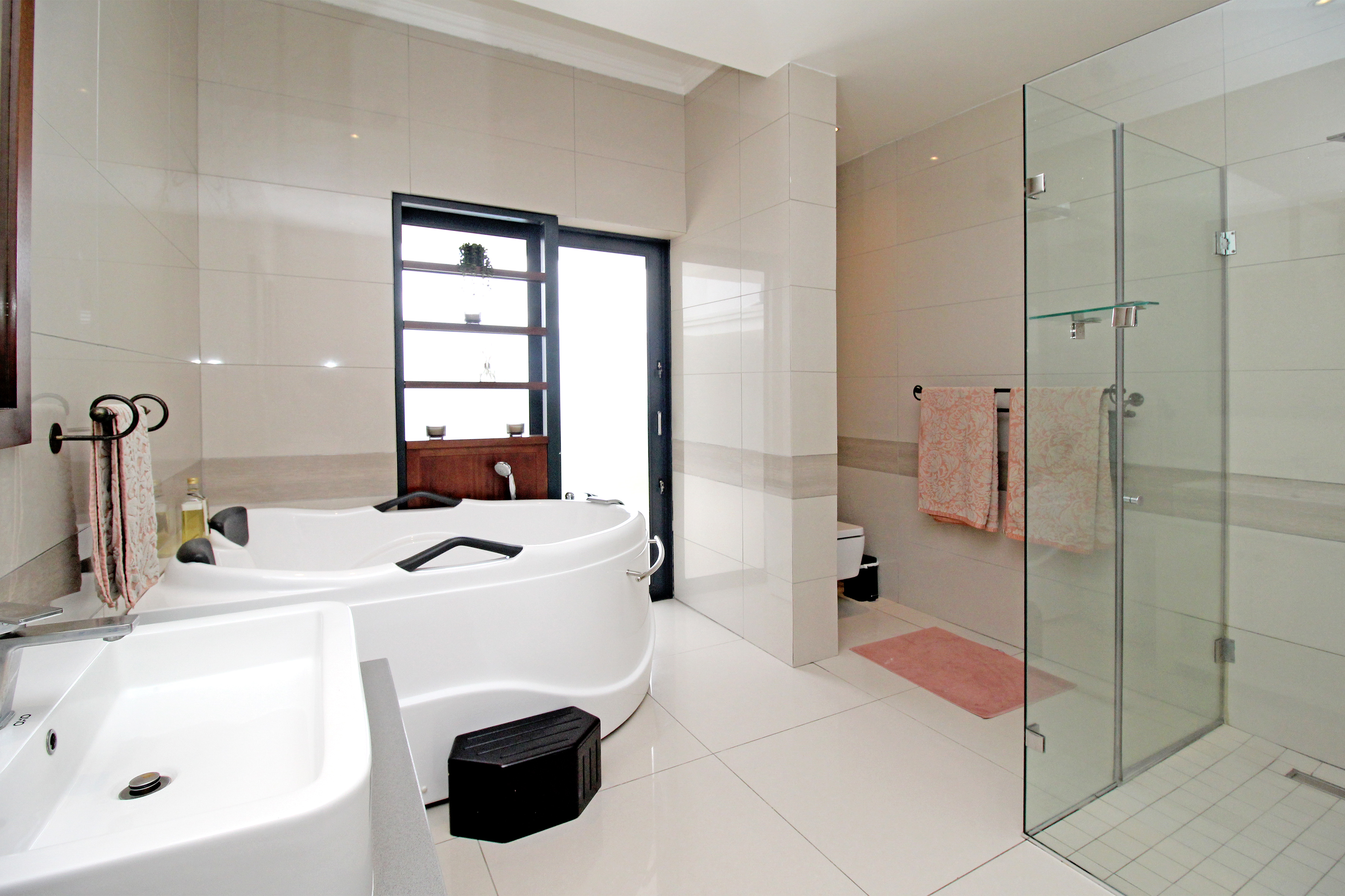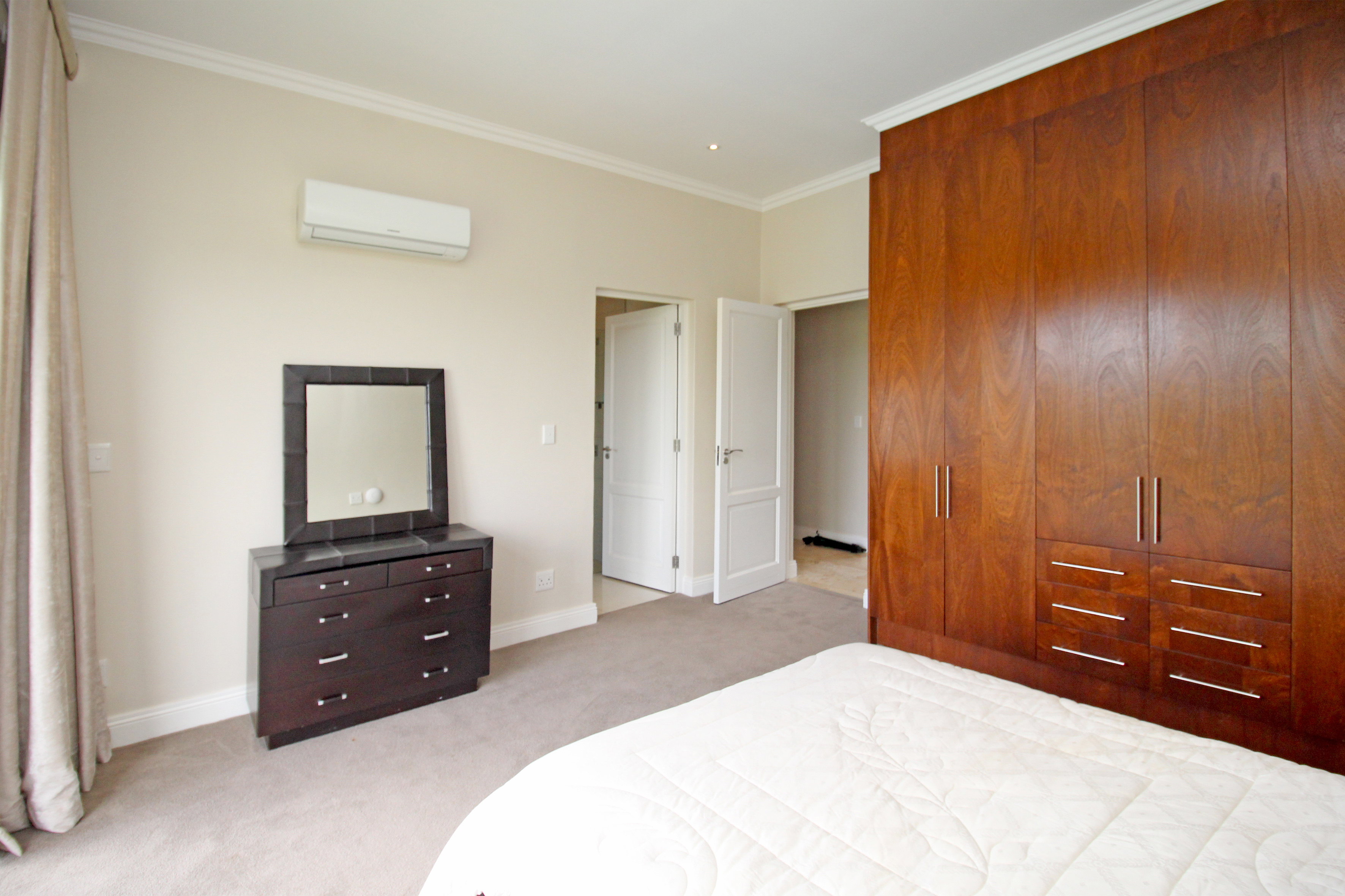 Five spacious, sunlit and air conditioned bedrooms, each thoughtfully designed with en-suite bathrooms and built in wardrobes wardrobes. The master suite features a his and hers cupboard with ample space, a fitted dresser, a spa-inspired bathroom with a double seater jacuzzi bath, and a balcony overlooking the lush gardens.