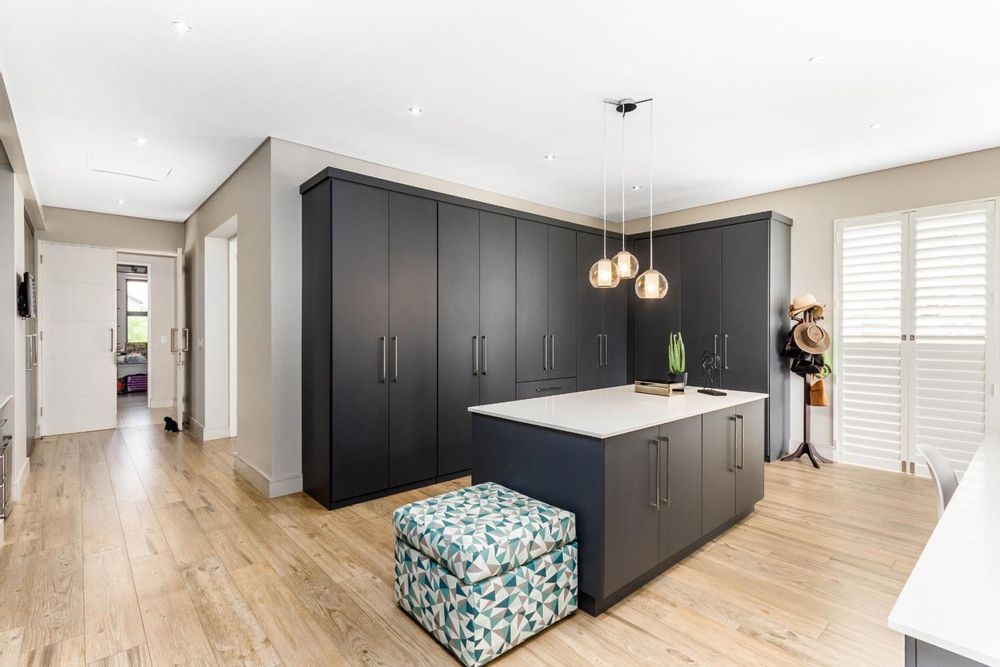 The open plan eat in kitchen is any chef's dream, with a magnificent centre island, prep bowl and plenty of storage space. This beautiful modern kitchen opens up onto the stunning garden and feature fire pit with seating. It also boasts a separate scullery and laundry area. It has everything you need and more.