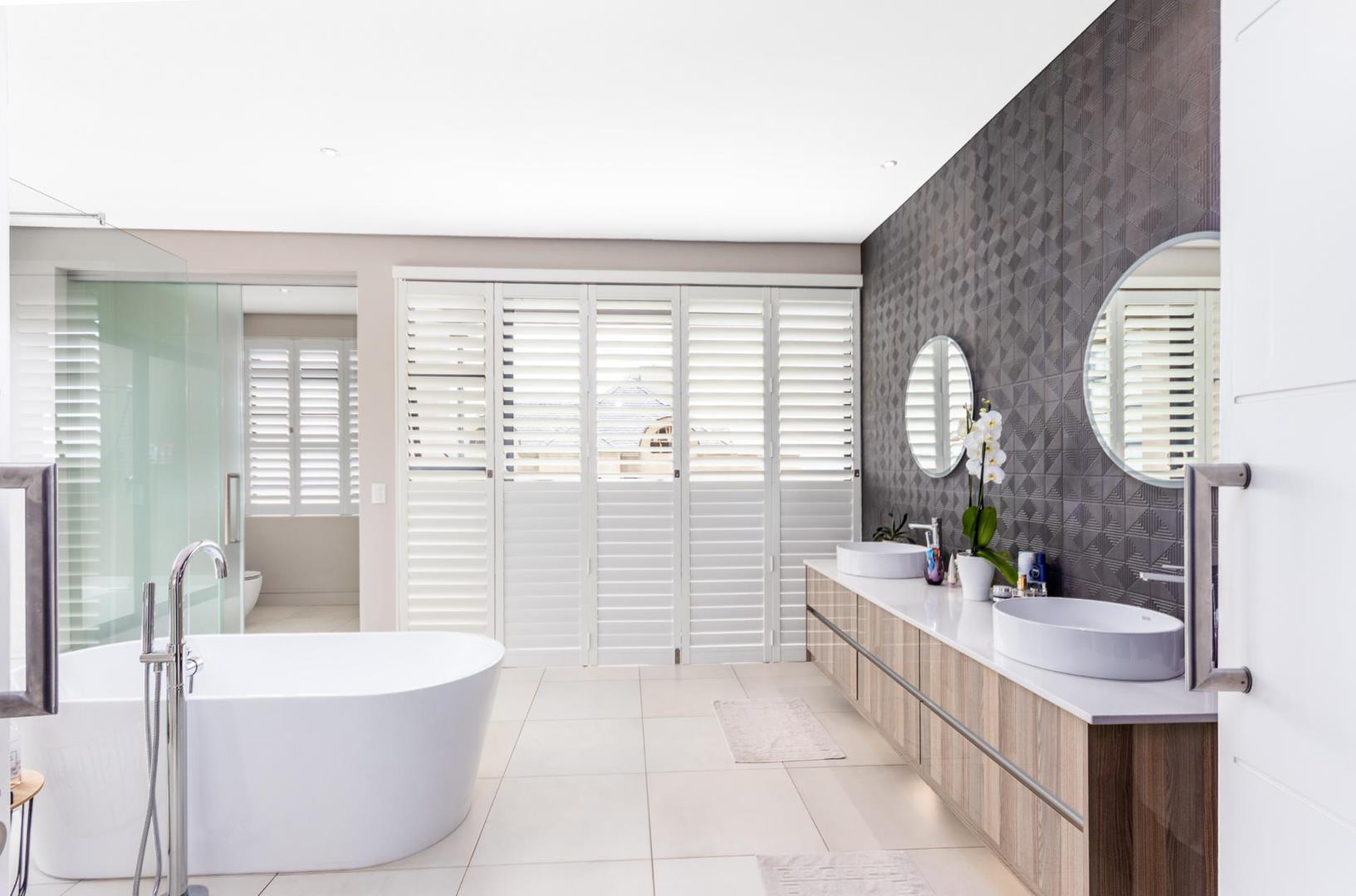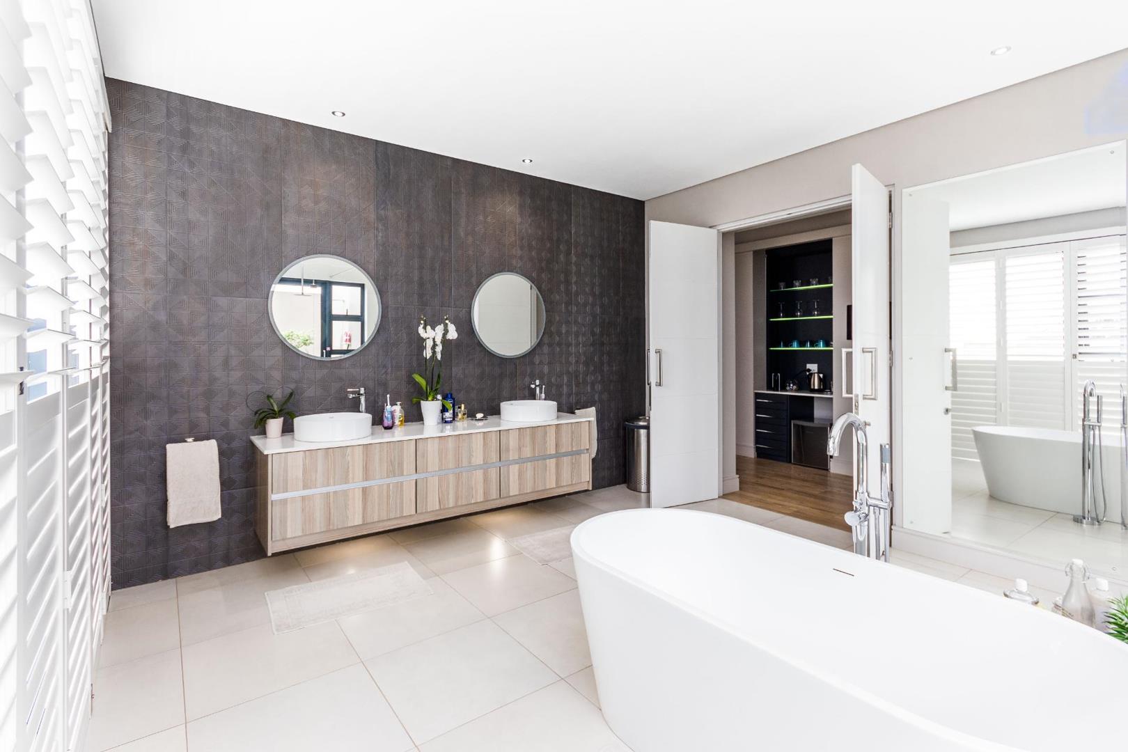 The top floor accommodates 4 stunning bedrooms all en-suite, as well as a pyjama lounge. The main bedroom has a stunning feature fire place, wraparound private balcony and a Hollywood style walk-in closet. The bathroom has a beautiful bath, outside shower and double vanity.