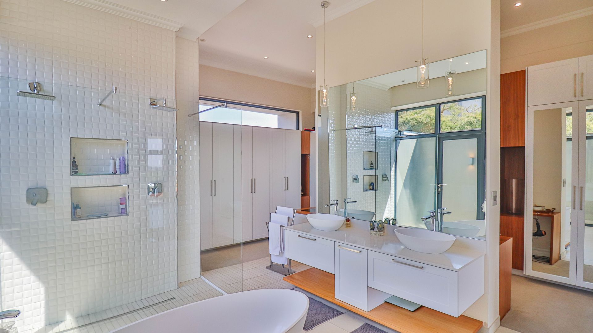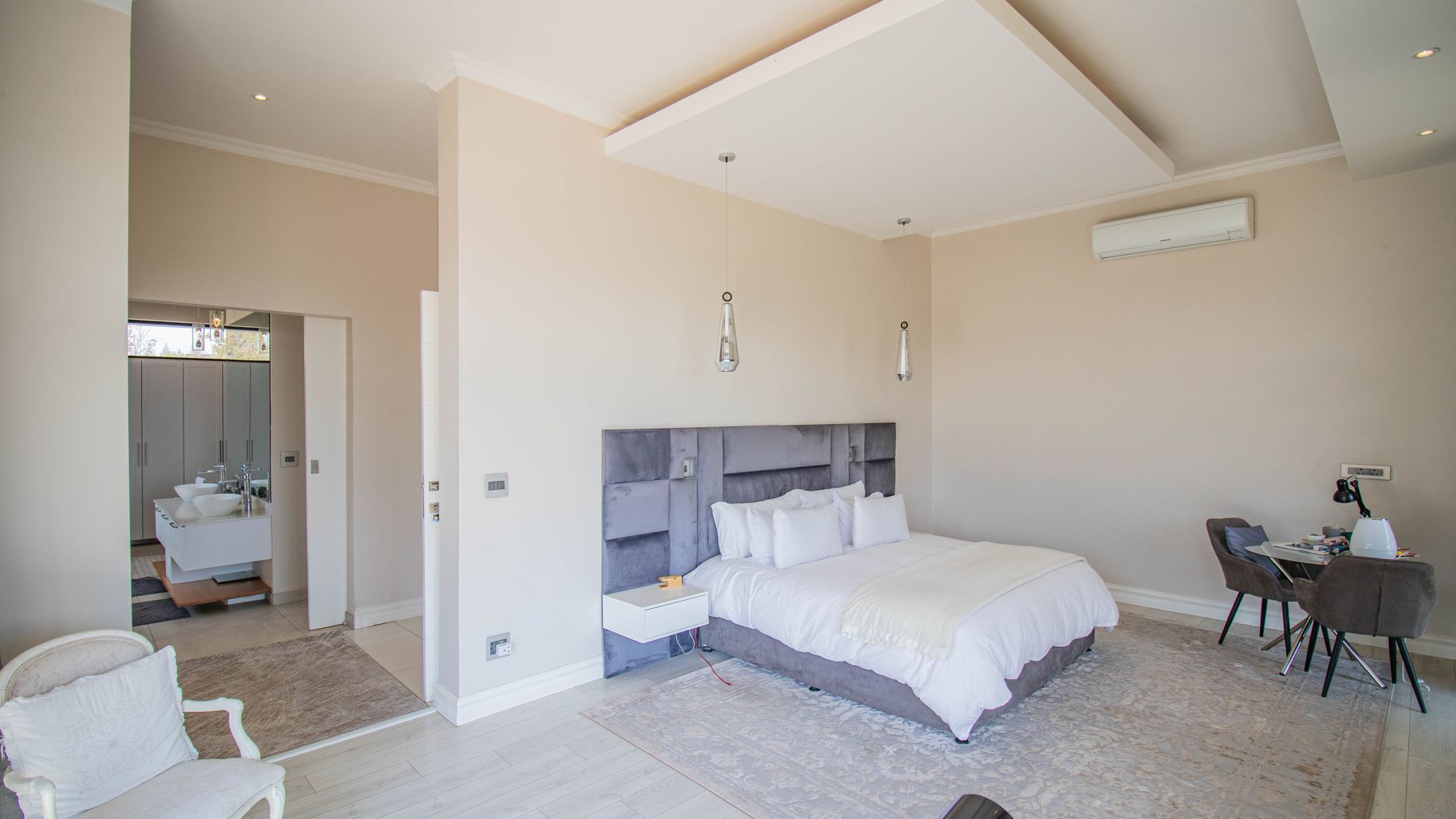 The spacious layout boasts five generously-sized bedrooms, providing ample space for family, guests, or even a home office. Each room offers a cozy retreat, with plenty of natural light and a warm atmosphere. All bedrooms are ensuites and air conditioned to keep cool in the summer.