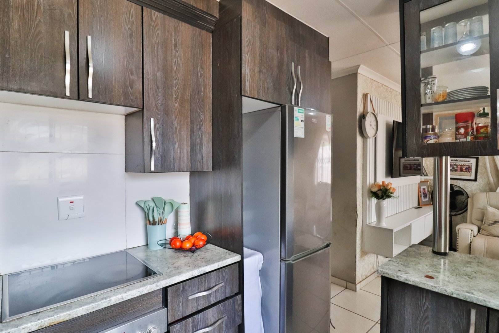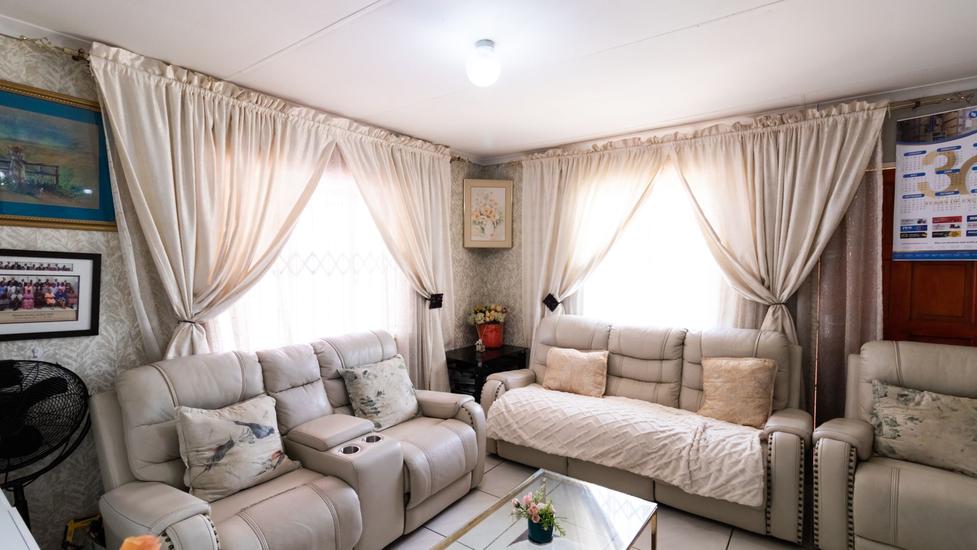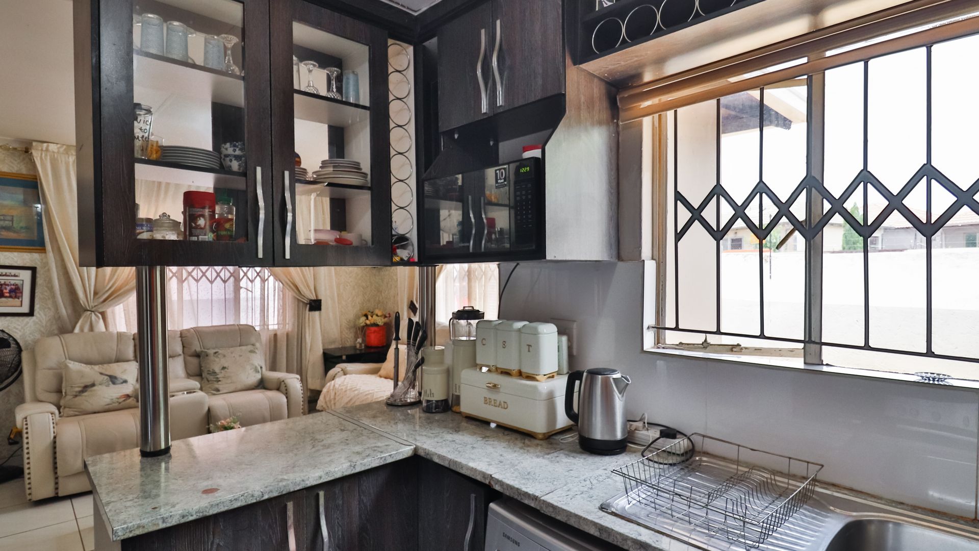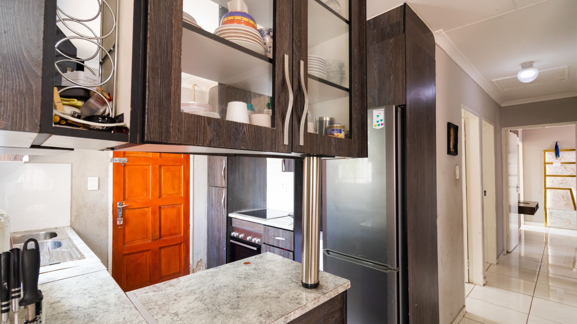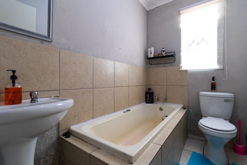 This modern renovated house has got 3 bedrooms, 2 bathroom, open plan living area with lovely kitchen. Main bedroom en-suite while other 2 bedrooms shares a bathroom. It is a full tittle house with eskom prepaid electricity.