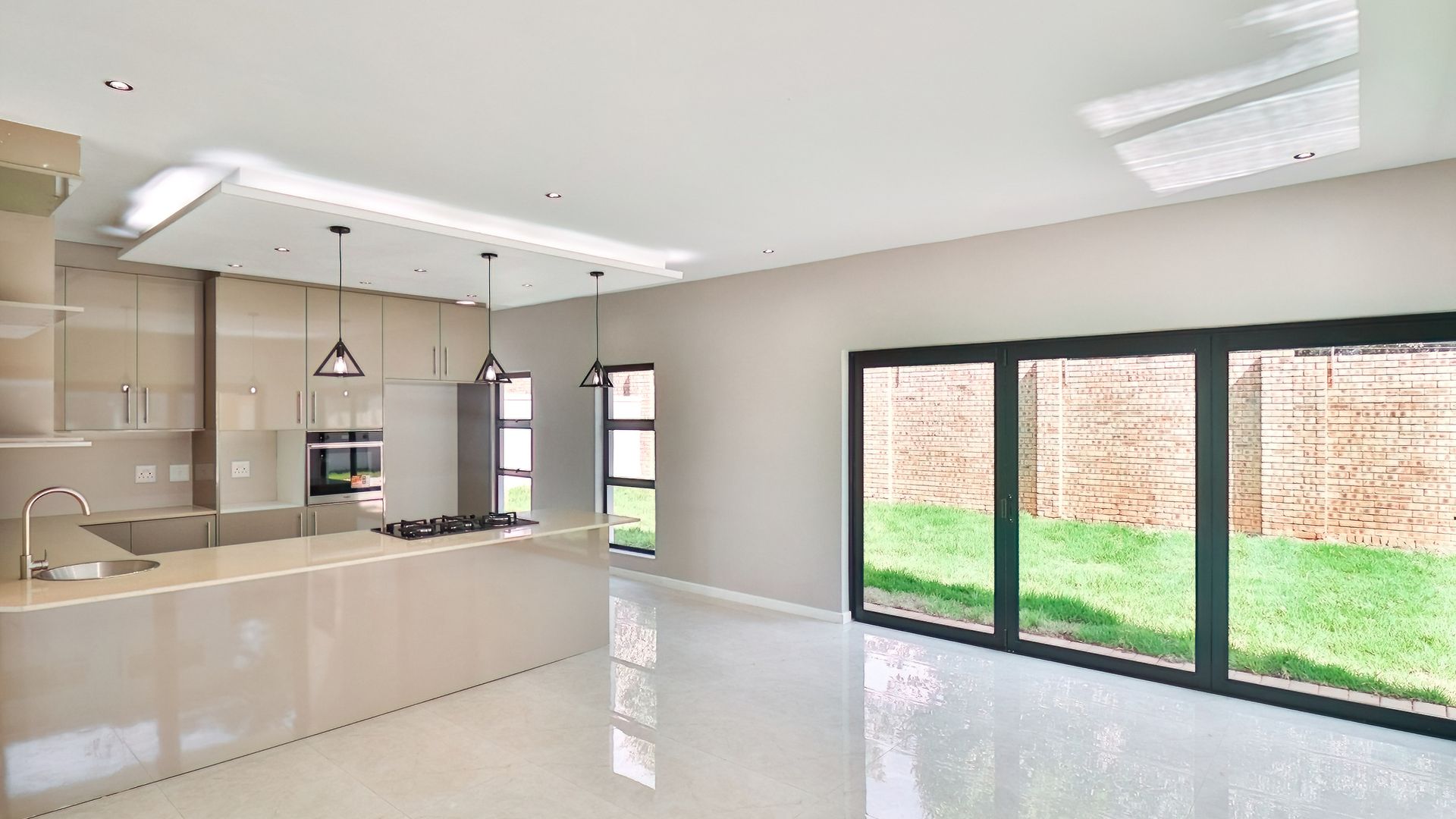 From the moment you step inside, you’re greeted by a striking double-volume entrance, setting a tone of grandeur and sophistication that flows throughout the home. The expansive reception area leads seamlessly into the open-plan family and dining rooms, creating a versatile space perfect for both intimate gatherings and grand entertaining. The sleek, designer kitchen is a culinary masterpiece, featuring high-end Caesarstone countertops, custom high-gloss cabinetry, and a fully equipped scullery, offering both style and functionality. For added convenience, the ground floor is home to a beautifully appointed guest bedroom and a stylish guest bathroom.