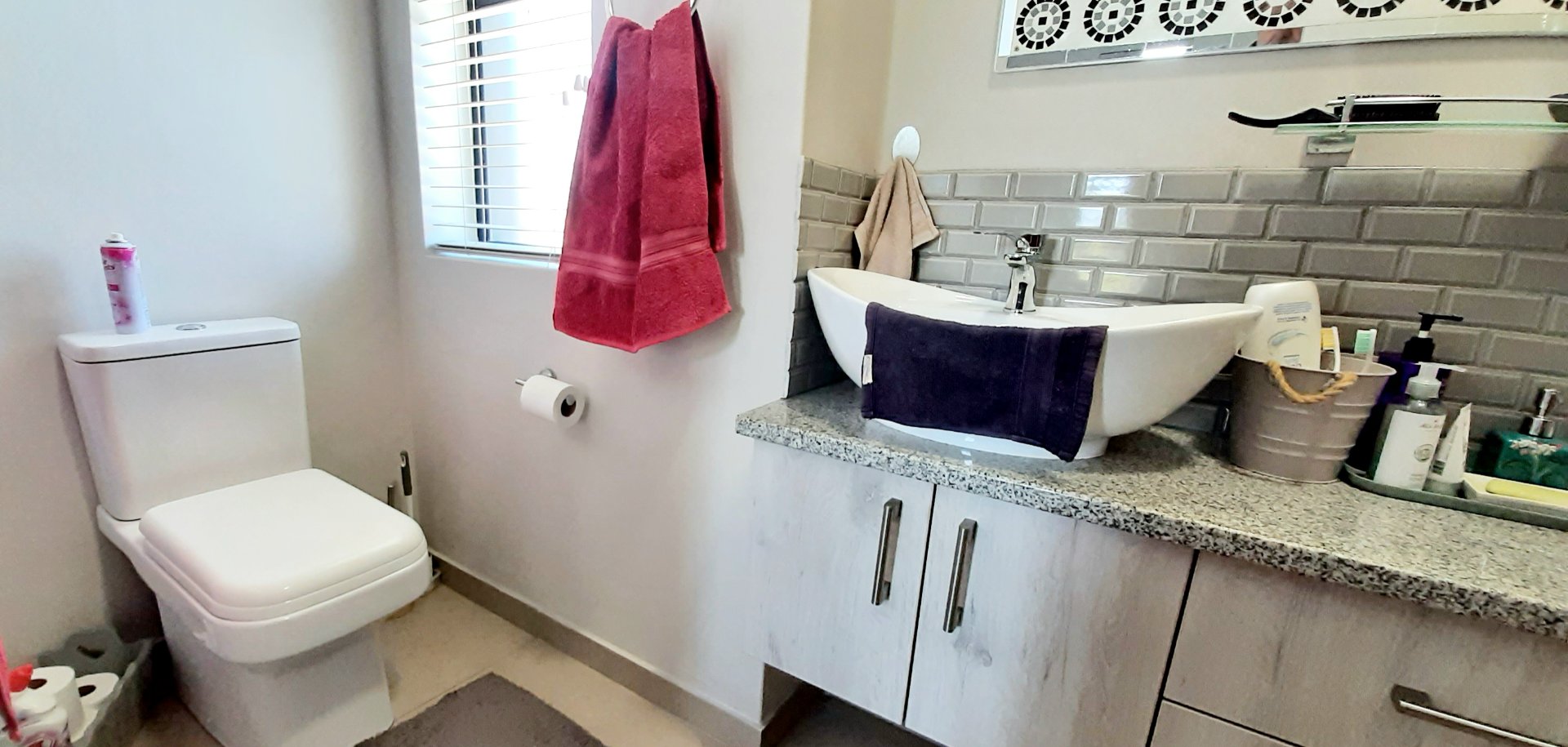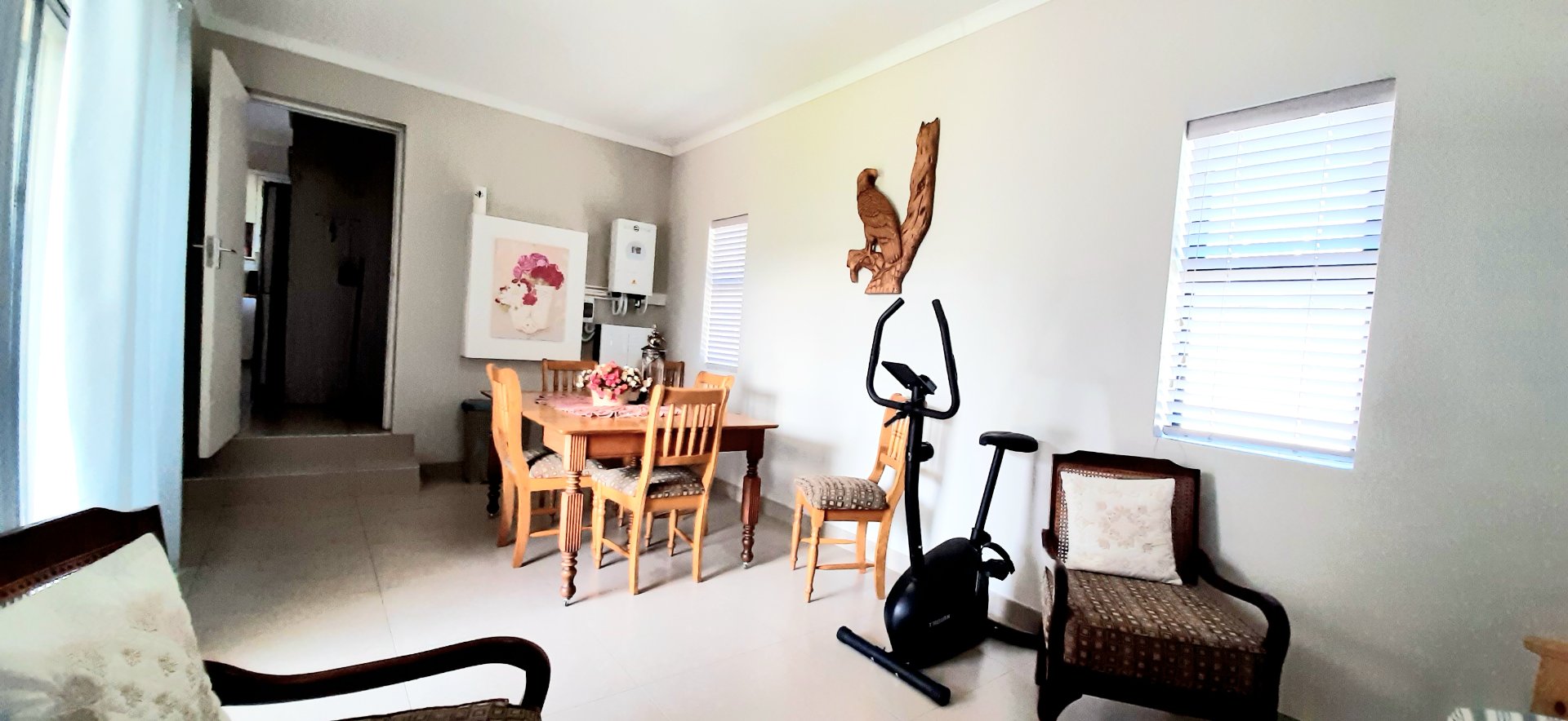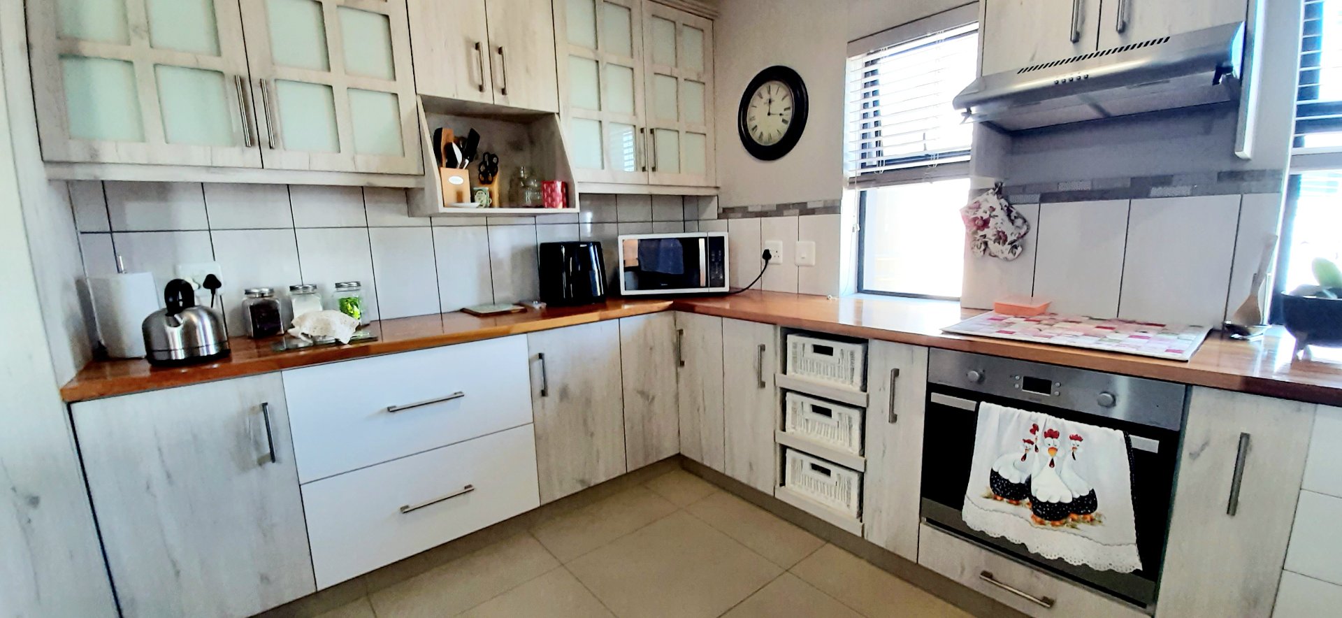 Three bedrooms are served by the two bathrooms . The main bedroom is situated apart from the other two allowing for maximum privacy and has its own patio for morning coffee or sundowners .There is ample cupboard space throughout the home. The bedrooms are carpeted for comfort underfoot in the winter.