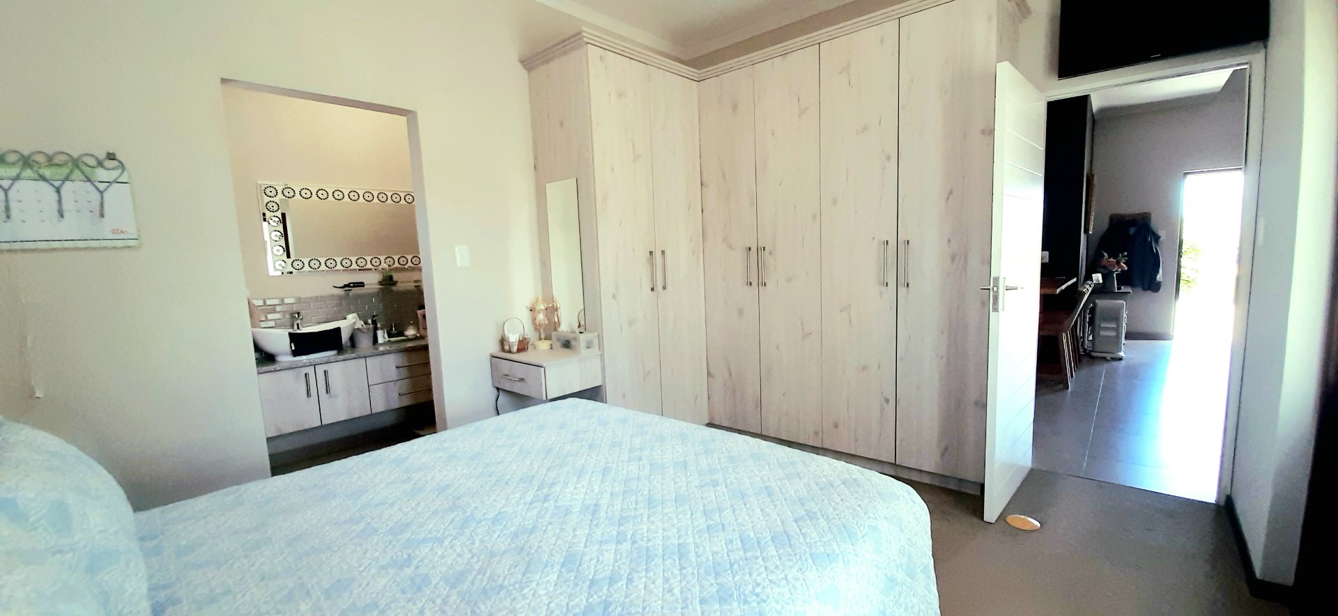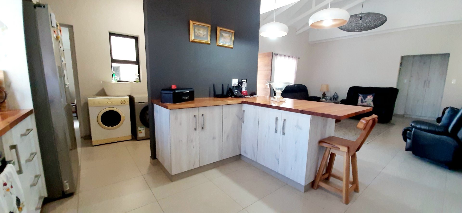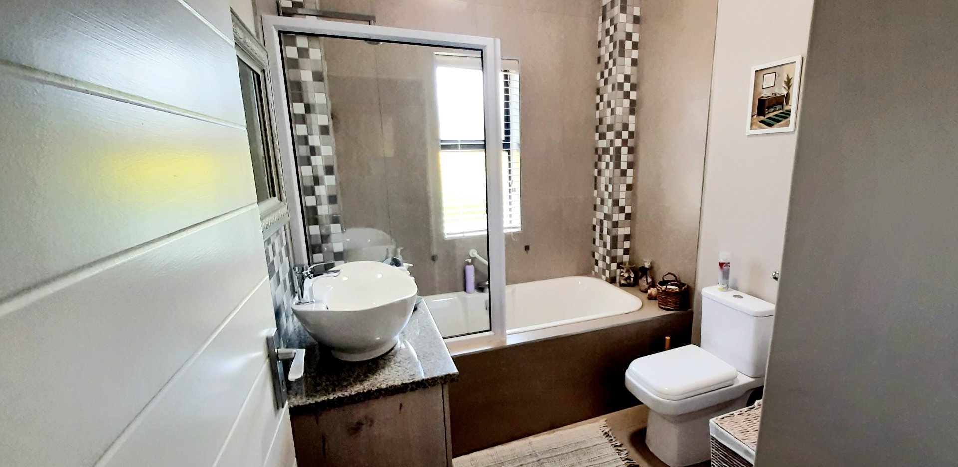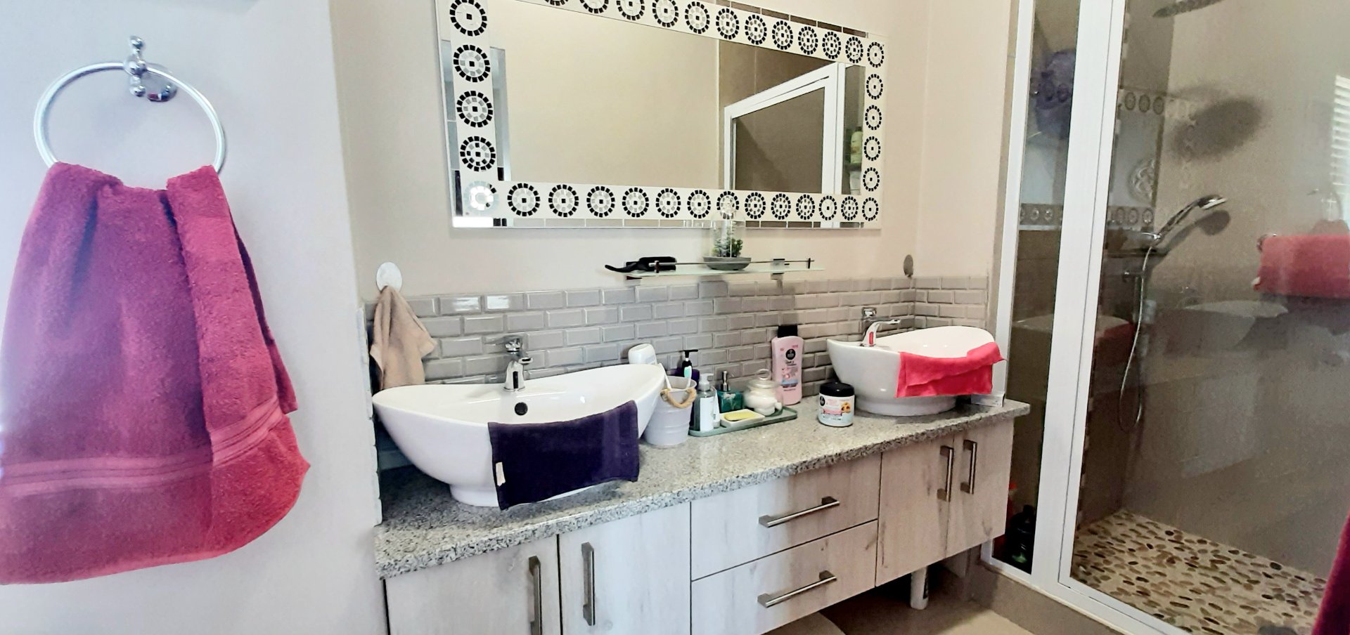 Three bedrooms are served by the two bathrooms . The main bedroom is situated apart from the other two allowing for maximum privacy and has its own patio for morning coffee or sundowners .There is ample cupboard space throughout the home. The bedrooms are carpeted for comfort underfoot in the winter.