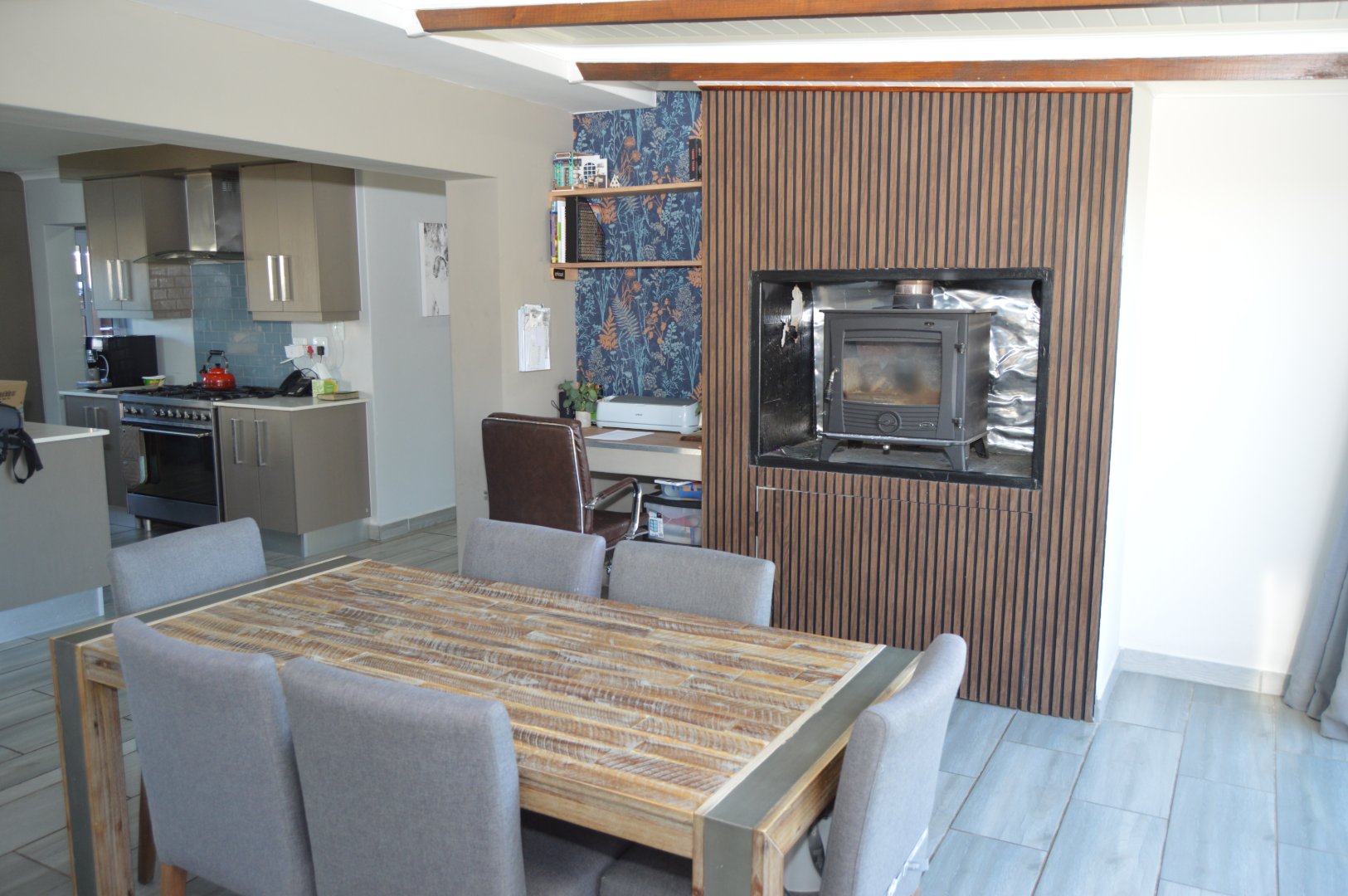 An indoor braai room currently fitted with a cosy fireplace — keep it as is for winter warmth, or convert it back into a traditional built-in braai for effortless entertaining.