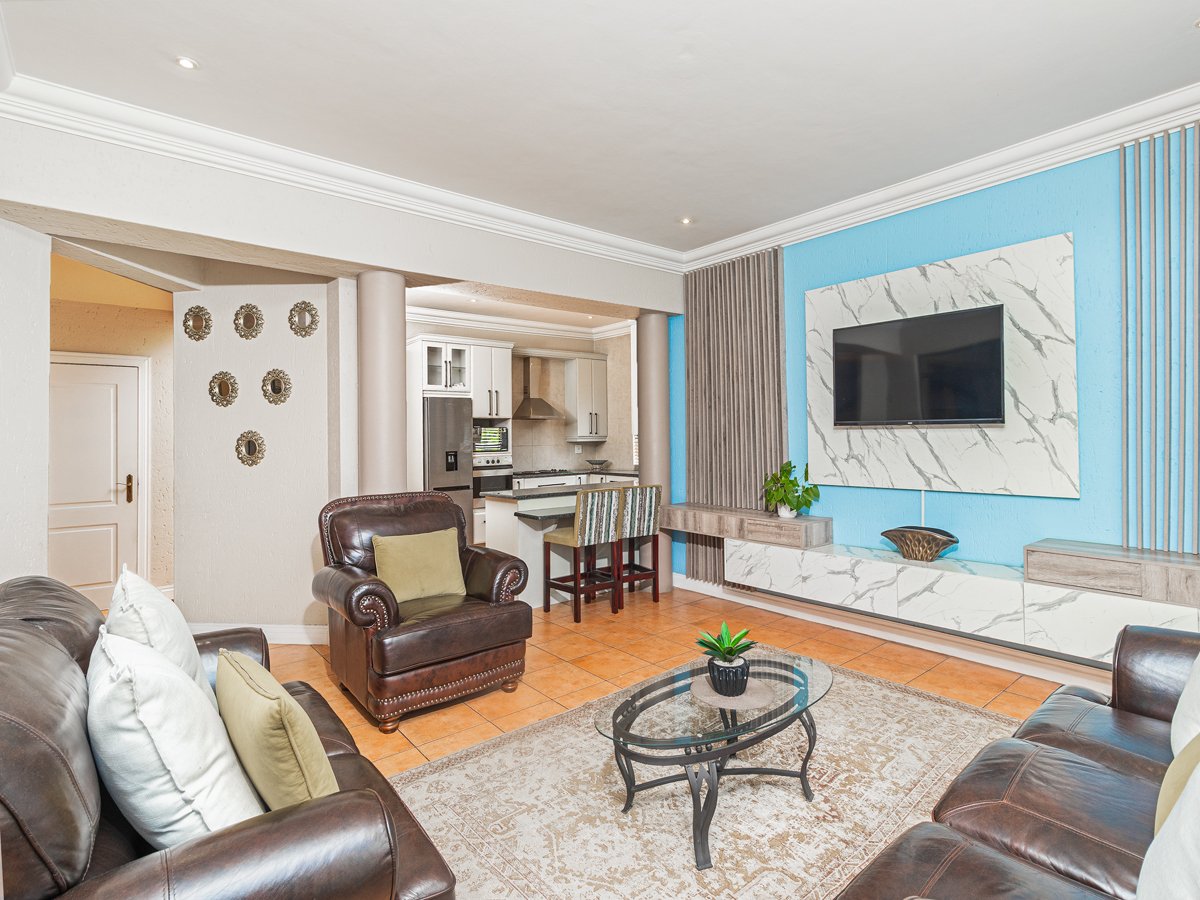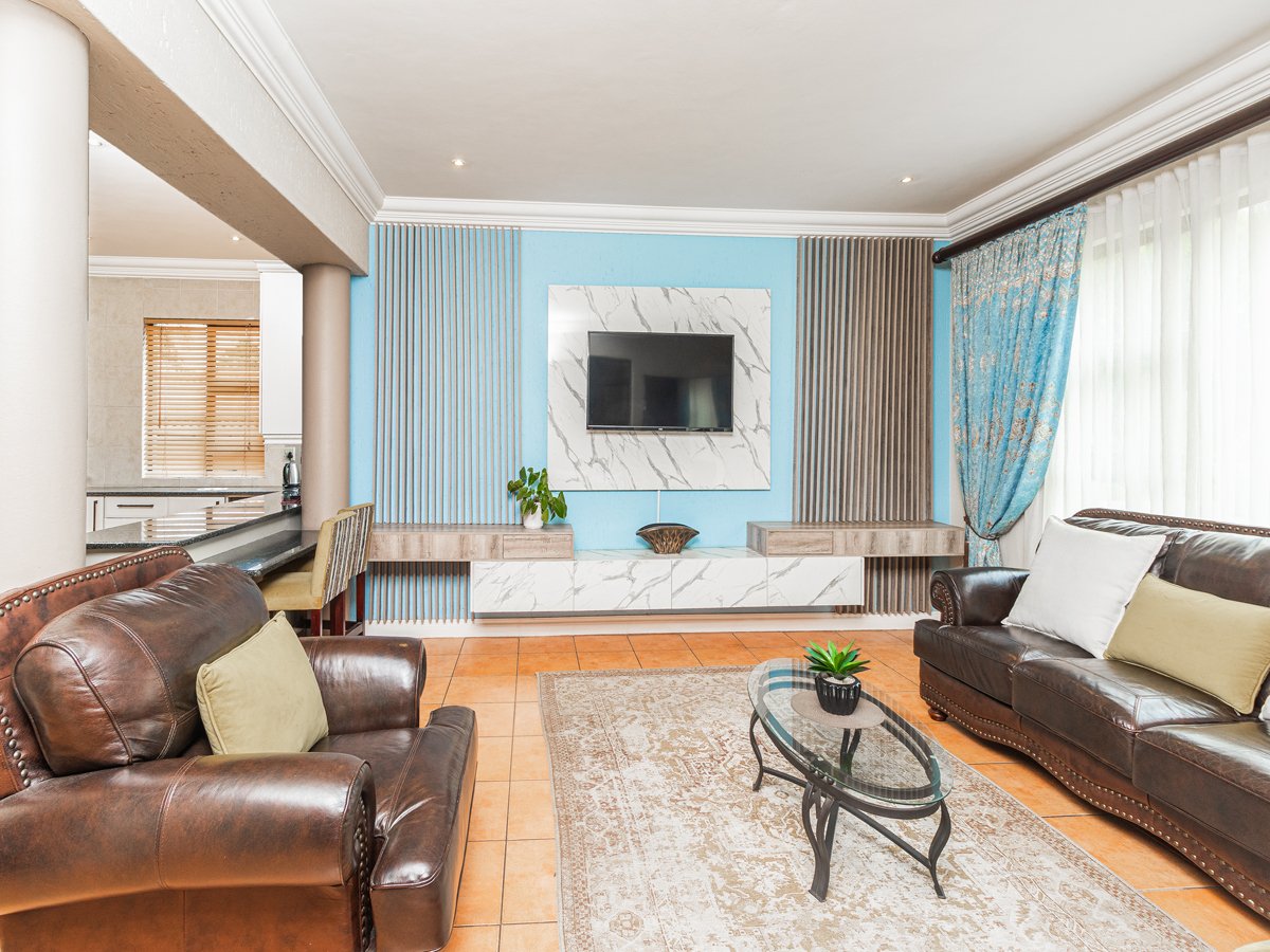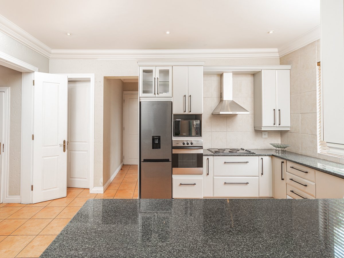 The heart of the house is the modern kitchen, designed for both function and beauty. With sleek counter tops, high-end appliances, and a scullery for added convenience, this kitchen is a chef’s dream. Whether you're preparing a family meal or hosting a dinner party, this space will exceed your expectations.