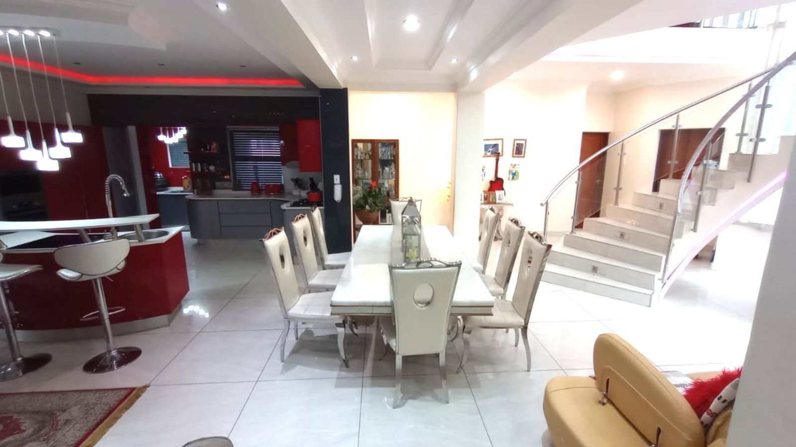 Delight in a contemporary chef-inspired culinary space crafted for creative gourmet cooking experience, with a scullery/laundry tucked away. The kitchen seamlessly flows into the open plan dining room leading to the other spacious living areas, TV lounge and main lounge area into an undercover patio braai entertainment area overlooking the sparkling pool.