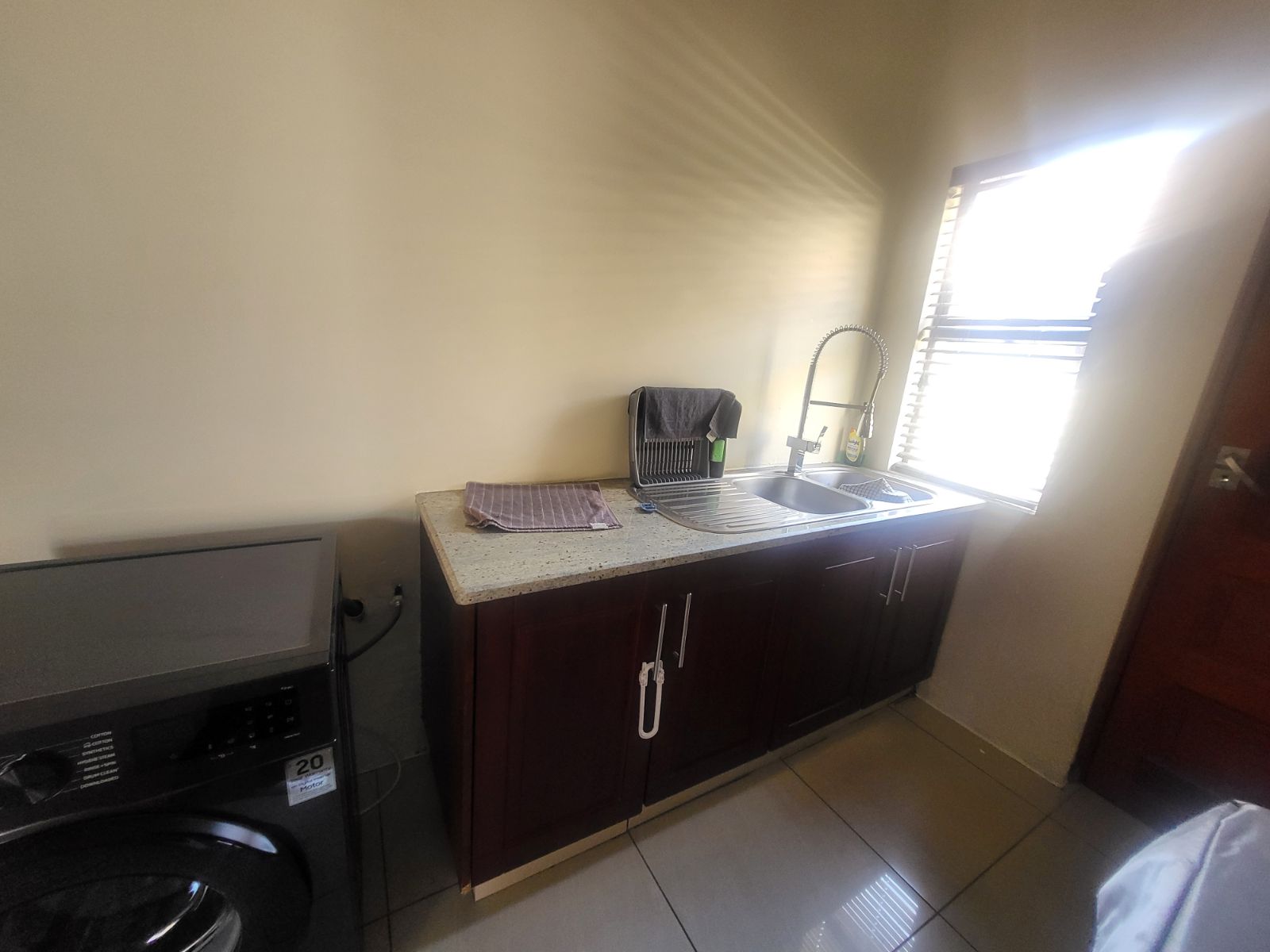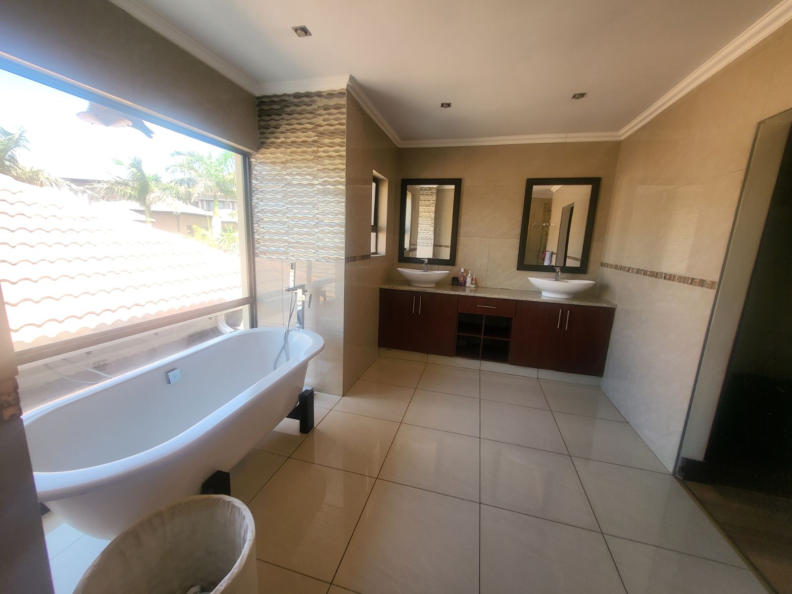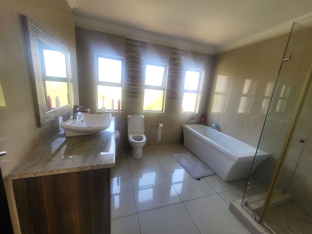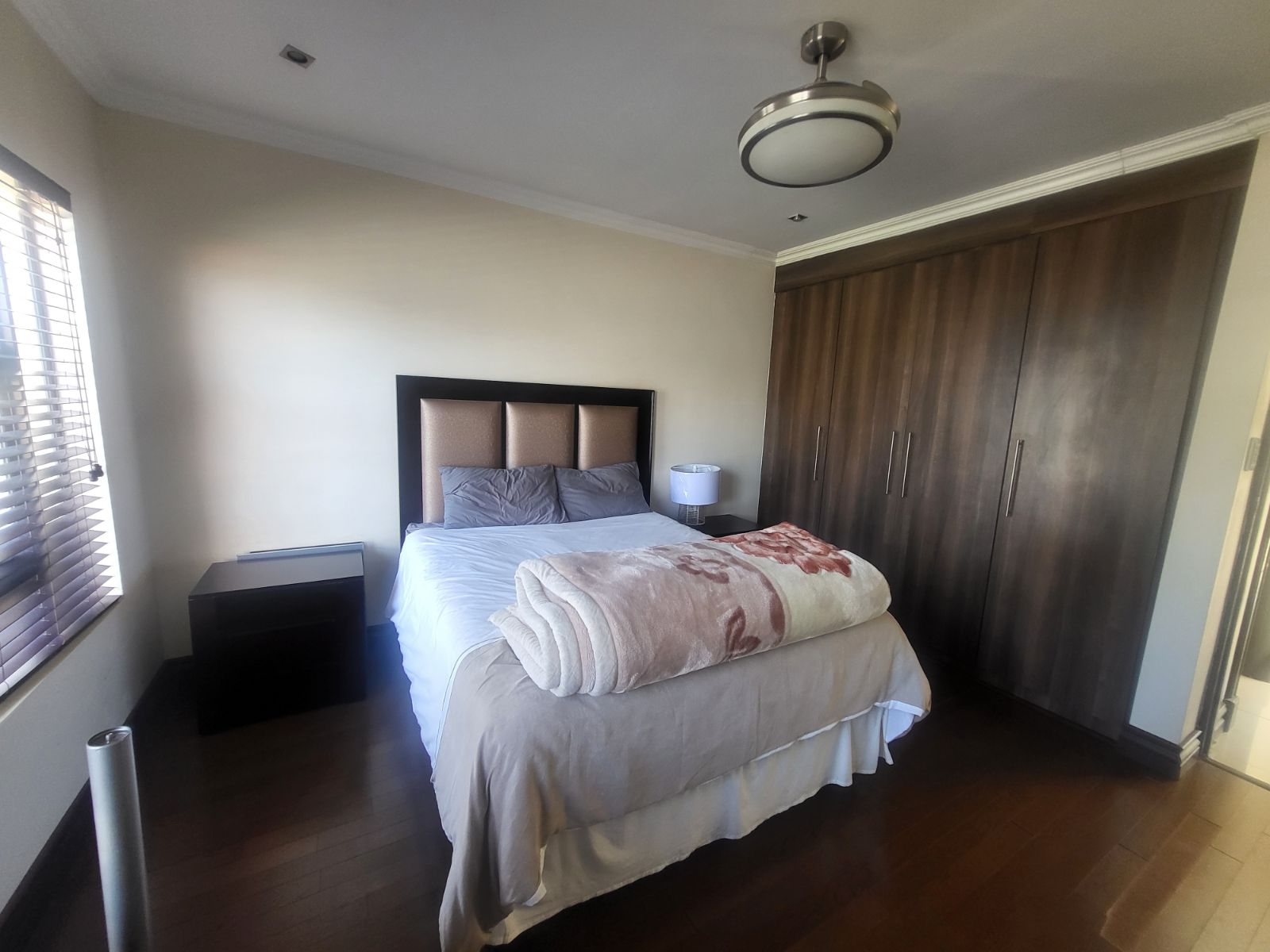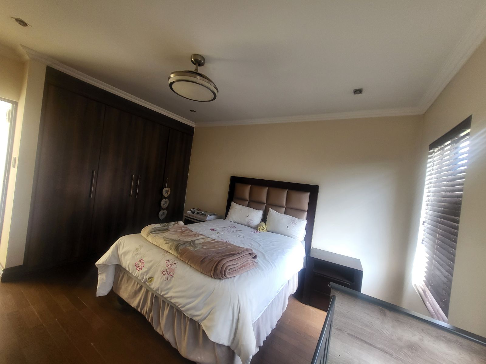 The heart of the home is a sleek, well-appointed kitchen with a central island and generous storage, flowing effortlessly into an inviting family lounge and two family/TV rooms ideal for relaxation and entertaining. A covered patio with sliding doors opens to the outdoors, creating the perfect space for gatherings or quiet evenings. The gas fireplace adds warmth and charm, while the solar system and solar-powered geyser ensure convenience and peace of mind, even during load shedding.