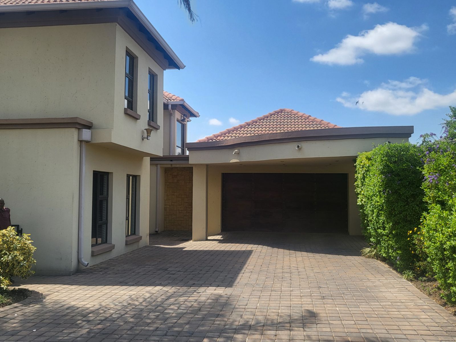 Outside, the property offers six parking spaces including a double garage, a tiled roof, and secure fencing for privacy. Within the estate, residents enjoy world-class facilities such as tennis and squash courts, soccer fields, cricket pitches, baseball courts, outdoor gyms, and an 18-hole golf course. The on-site restaurant and scenic walking trails surrounded by lush greenery complete the picture of refined estate living.