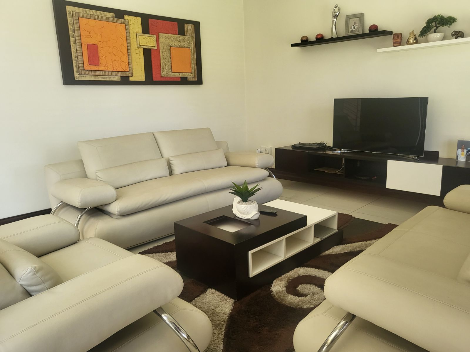 This stunning stand alone home offers the perfect blend of modern comfort, space, and estate living. Situated in a prestigious, nature filled estate with 24-hour security, it features four spacious bedrooms with built-in storage, three modern bathrooms complete with both showers and bathtubs, and multiple living spaces designed for comfort and style. The main bedroom includes a walk-in closet and its own private balcony, while a second large balcony provides beautiful views of the surrounding greenery.