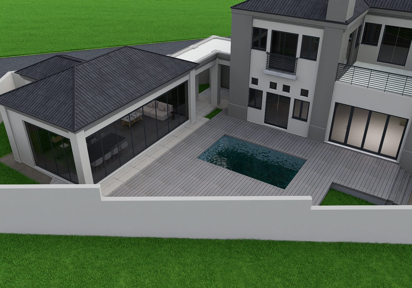 The kitchen is a chef’s delight, equipped with a separate scullery that enhances functionality and keeps the main cooking area neat and organized. The open-plan design seamlessly connects the kitchen, dining, and living areas, creating an inviting space that is perfect for entertaining or enjoying everyday family life.