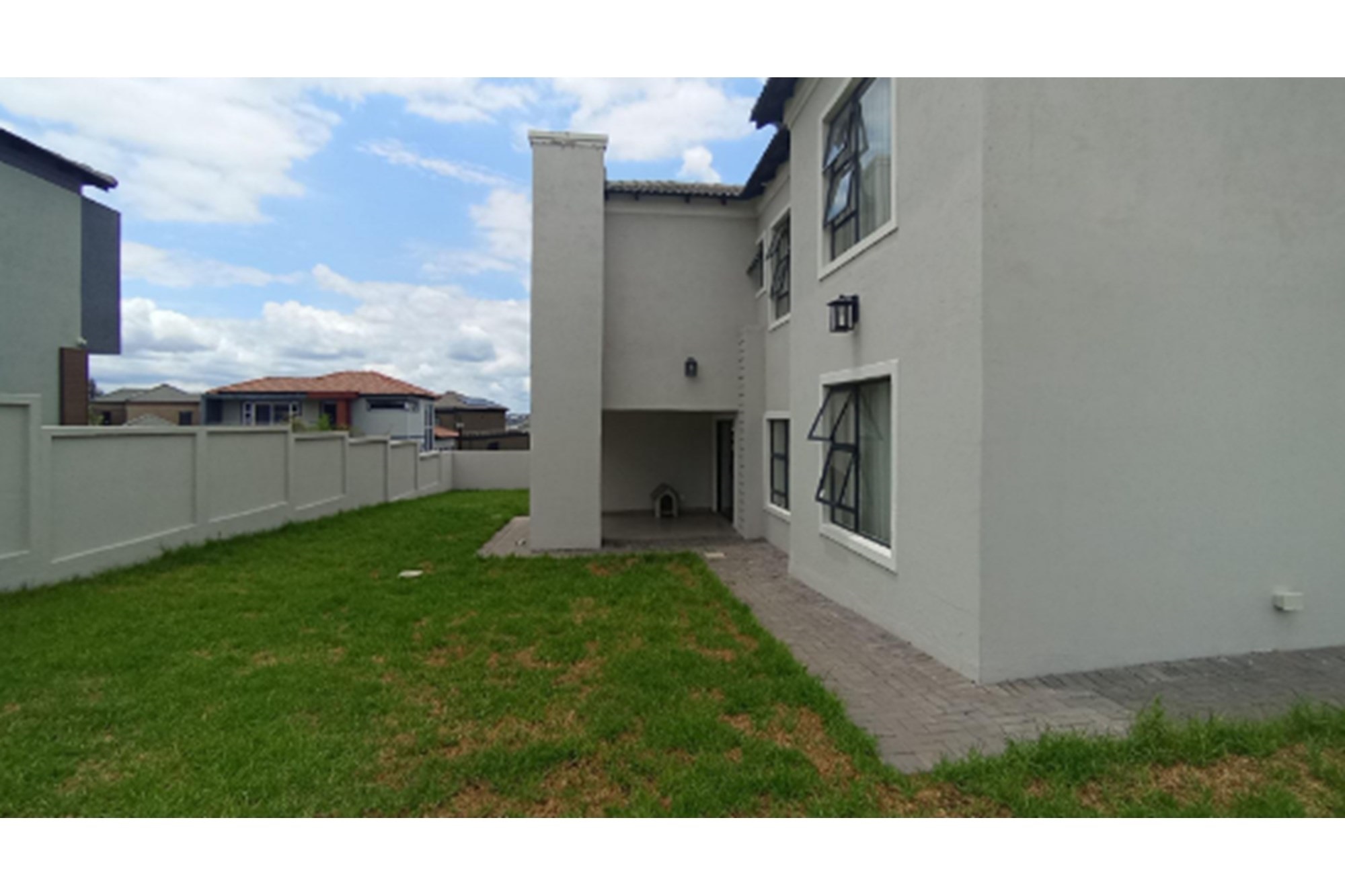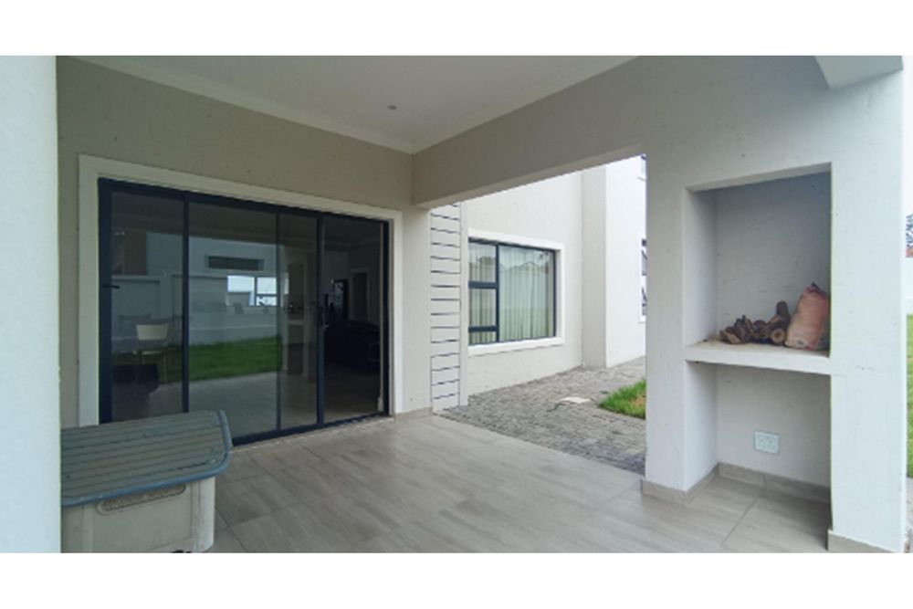 The covered entertainment patio comes with a built-in braai and overlooks a large, well-kept garden—ideal for family gatherings and outdoor living. The double-volume staircase fills the home with natural light, adding to the elegant feel.