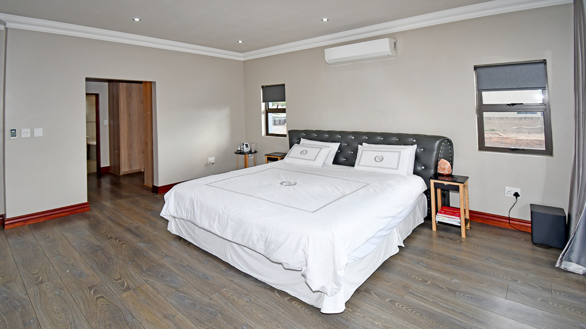 Upstairs, the mood shifts to luxury. A pyjama lounge provides a private escape, while the main suite indulges with a spa-like bathroom, walk-in dressing room, and panoramic greenbelt views that transform nature into art. Two additional bedrooms echo the same refined simplicity, each with light-filled interiors and hidden en-suites that preserve the home’s architectural flow.
