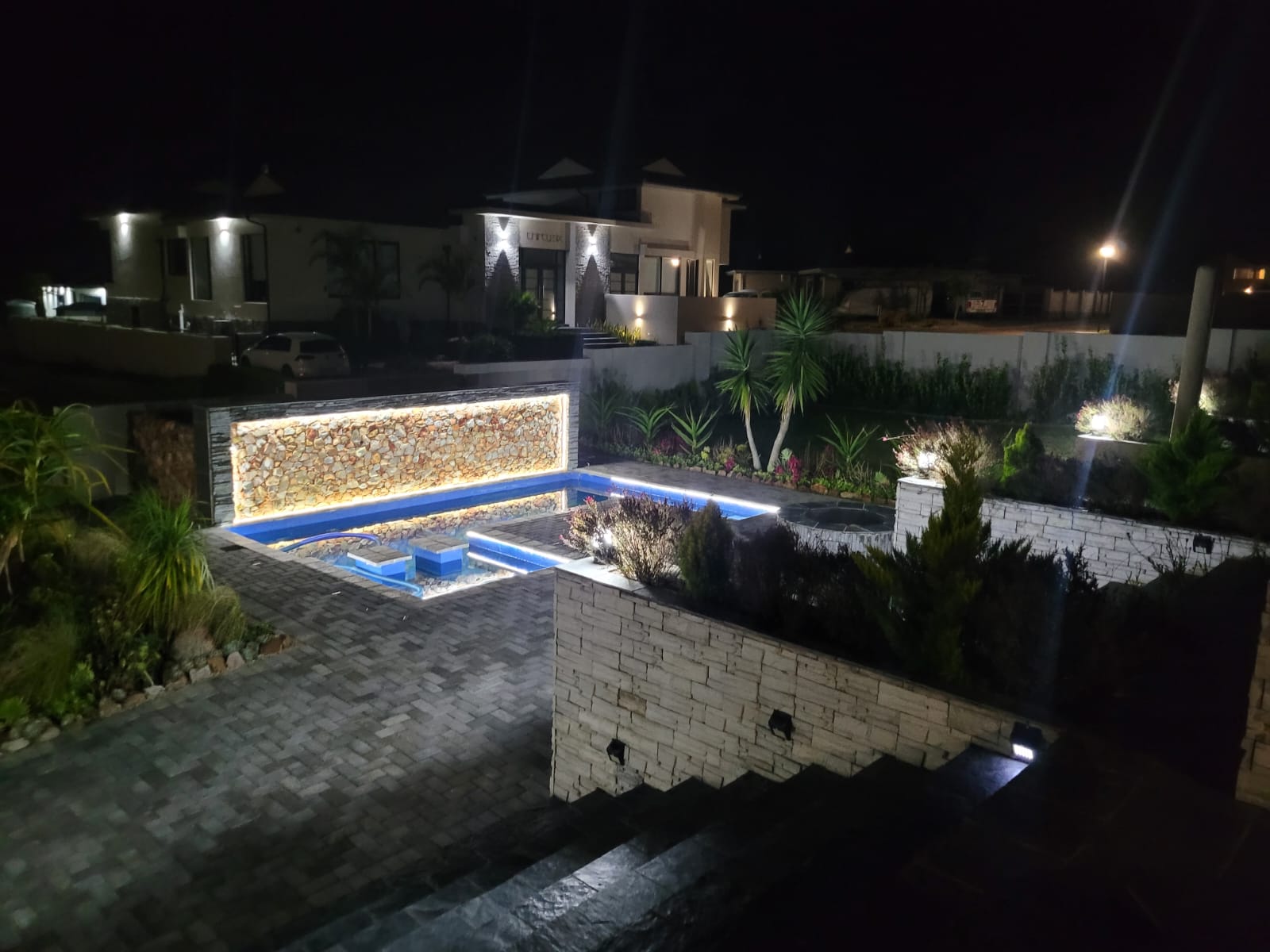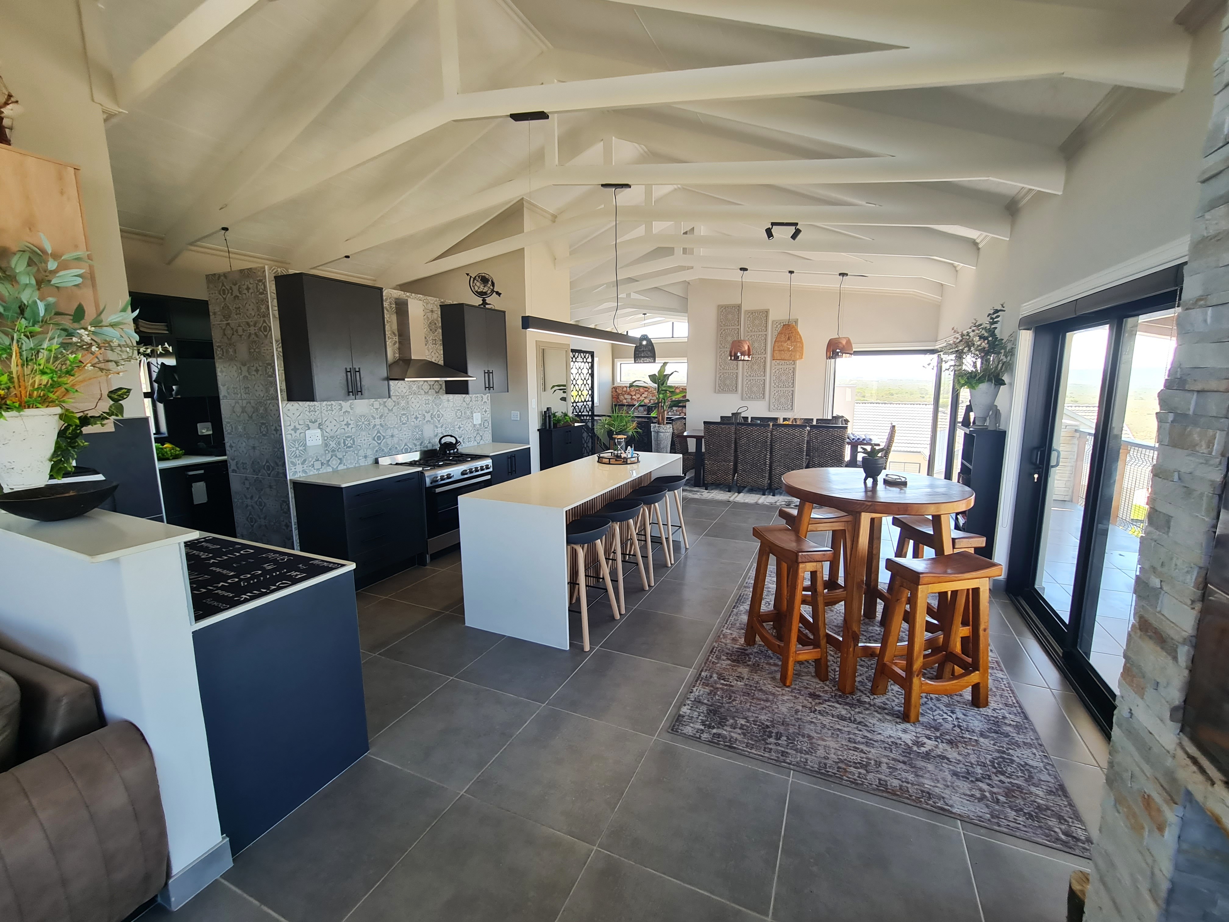 Additional features include 5x water tanks with pump fully integrated into the plumbing system. An 8 kVA inverter with batteries and 12x solar panels. Security cameras linked to mobile devices. Secure, access-controlled estate.