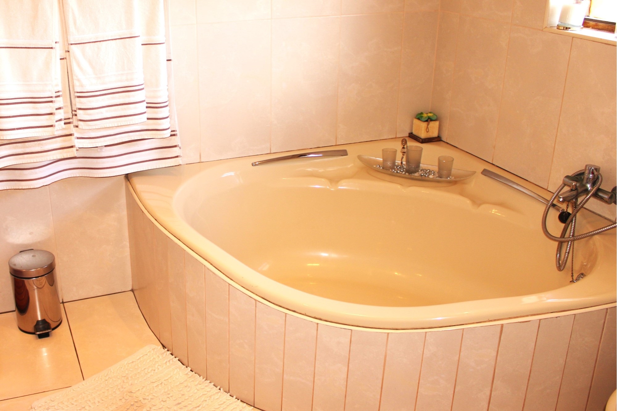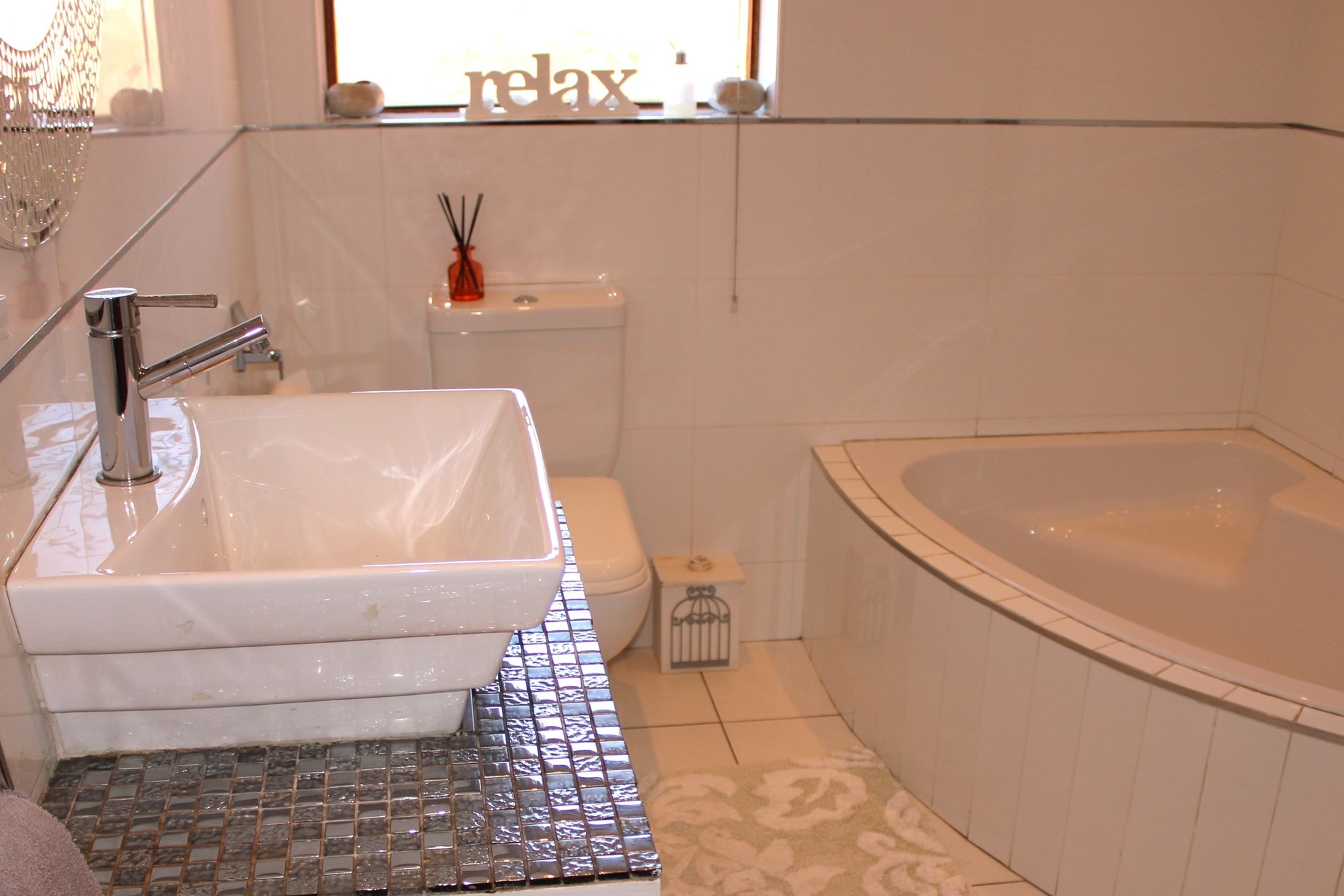The two bathrooms in this house are beautifully designed, with modern fixtures and finishes. The main bathroom also features a large shower and a separate bathtub, perfect for a long soak after a busy day.