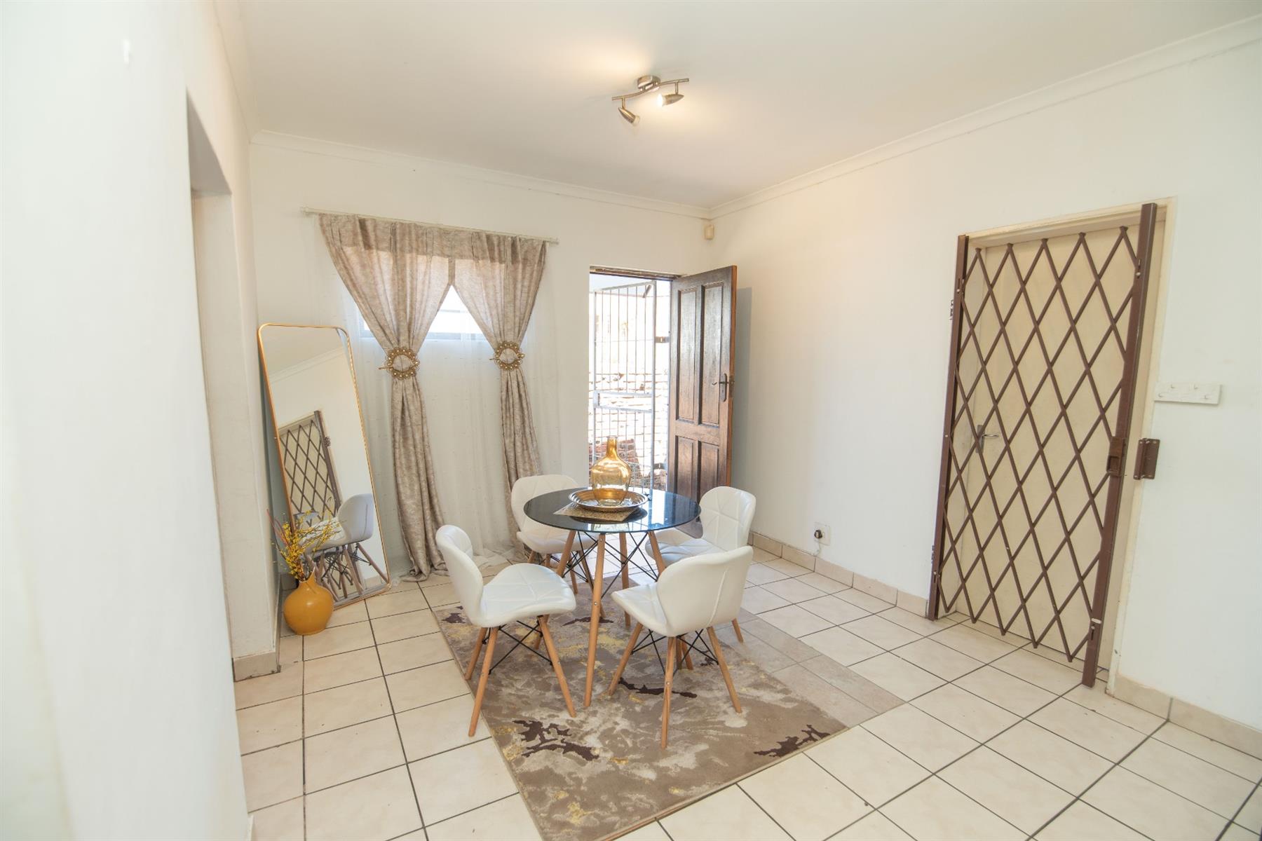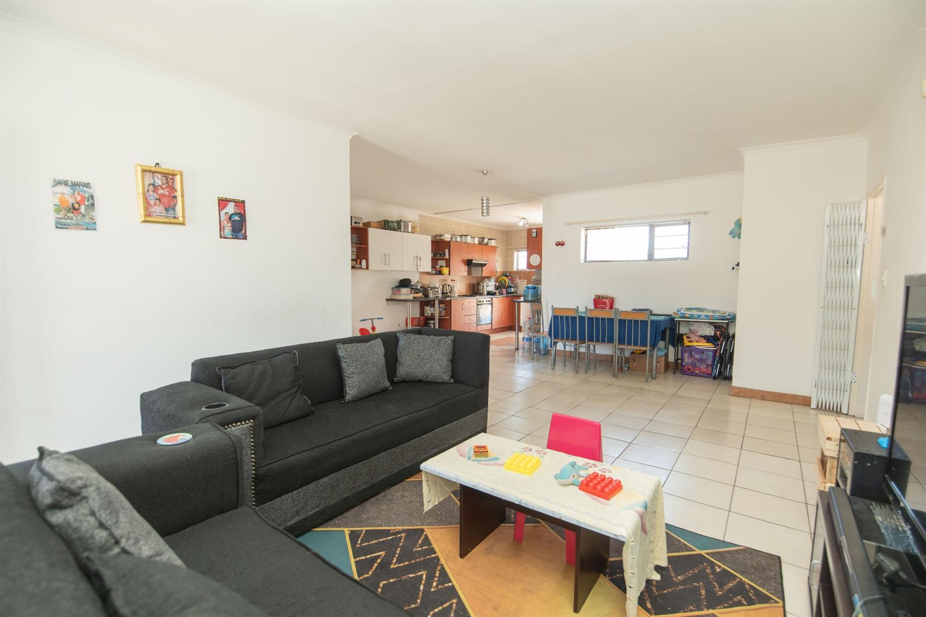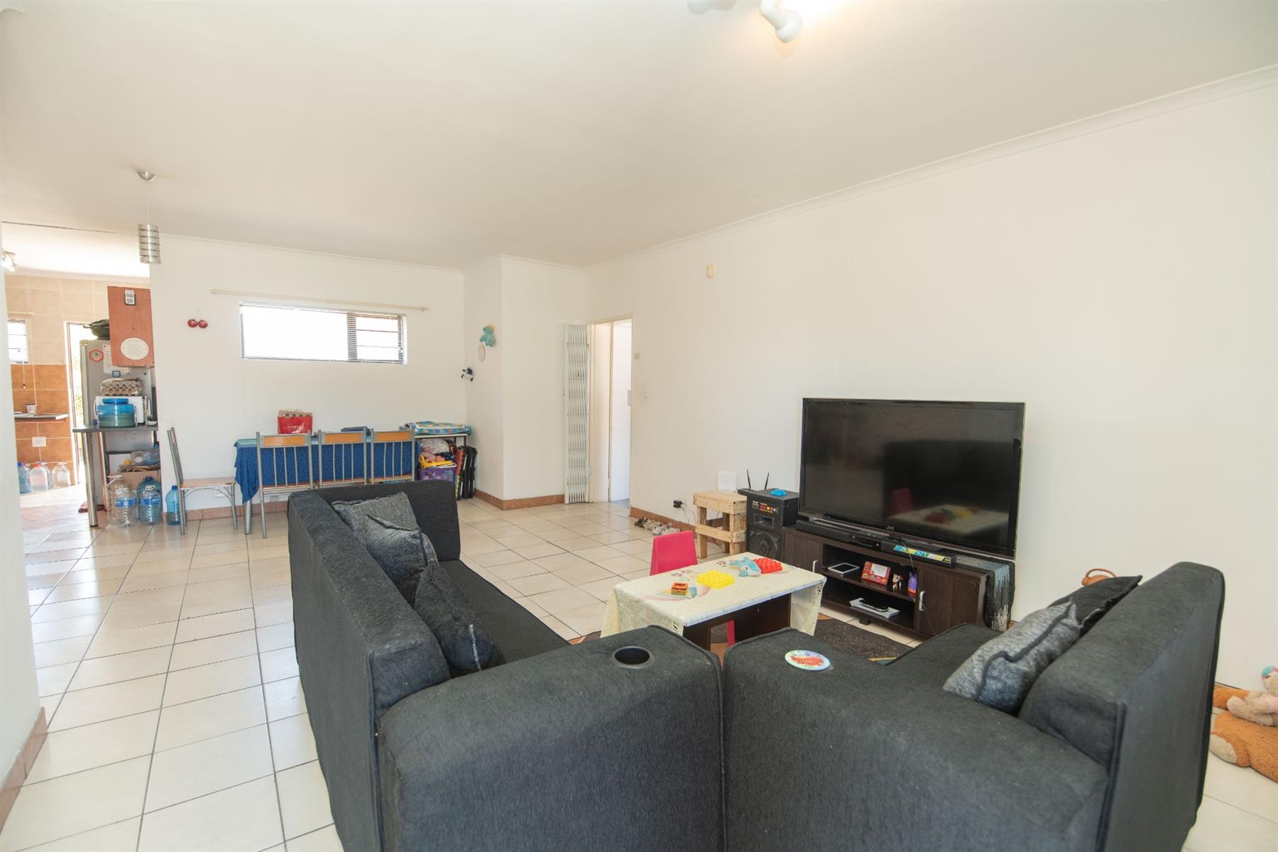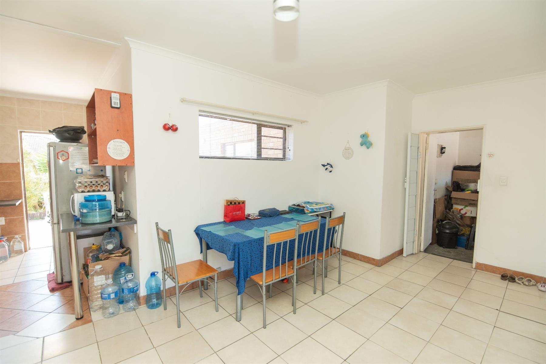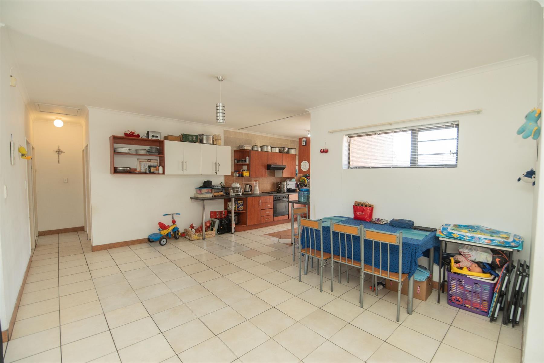 Tiled open plan lounge and dining area