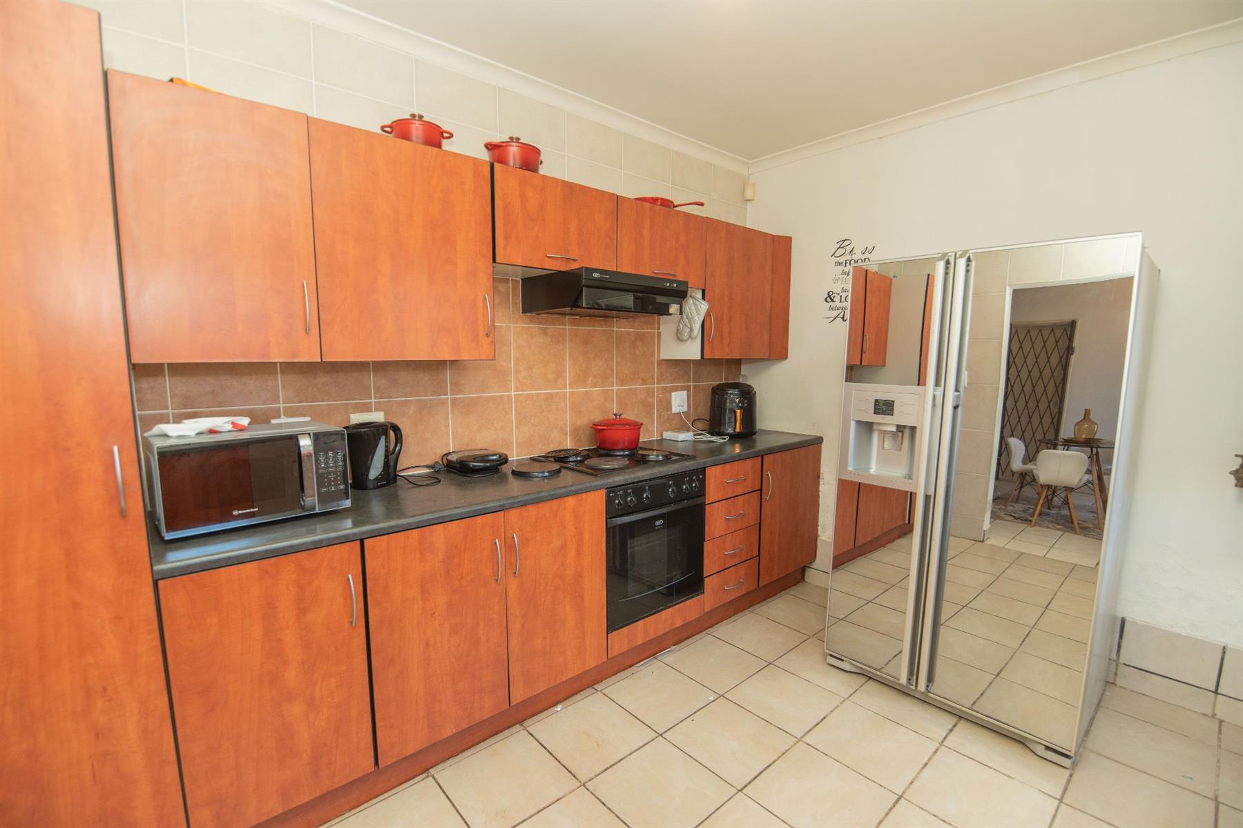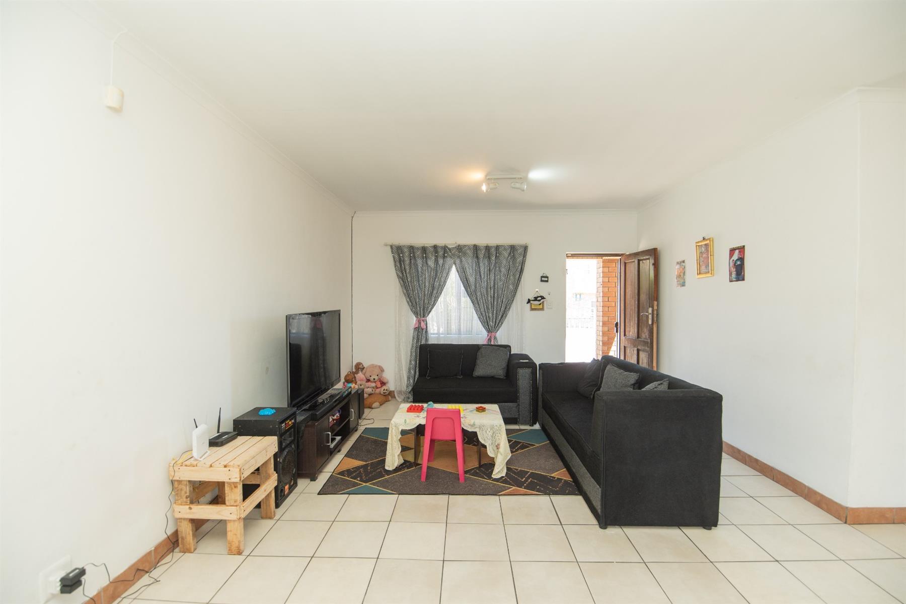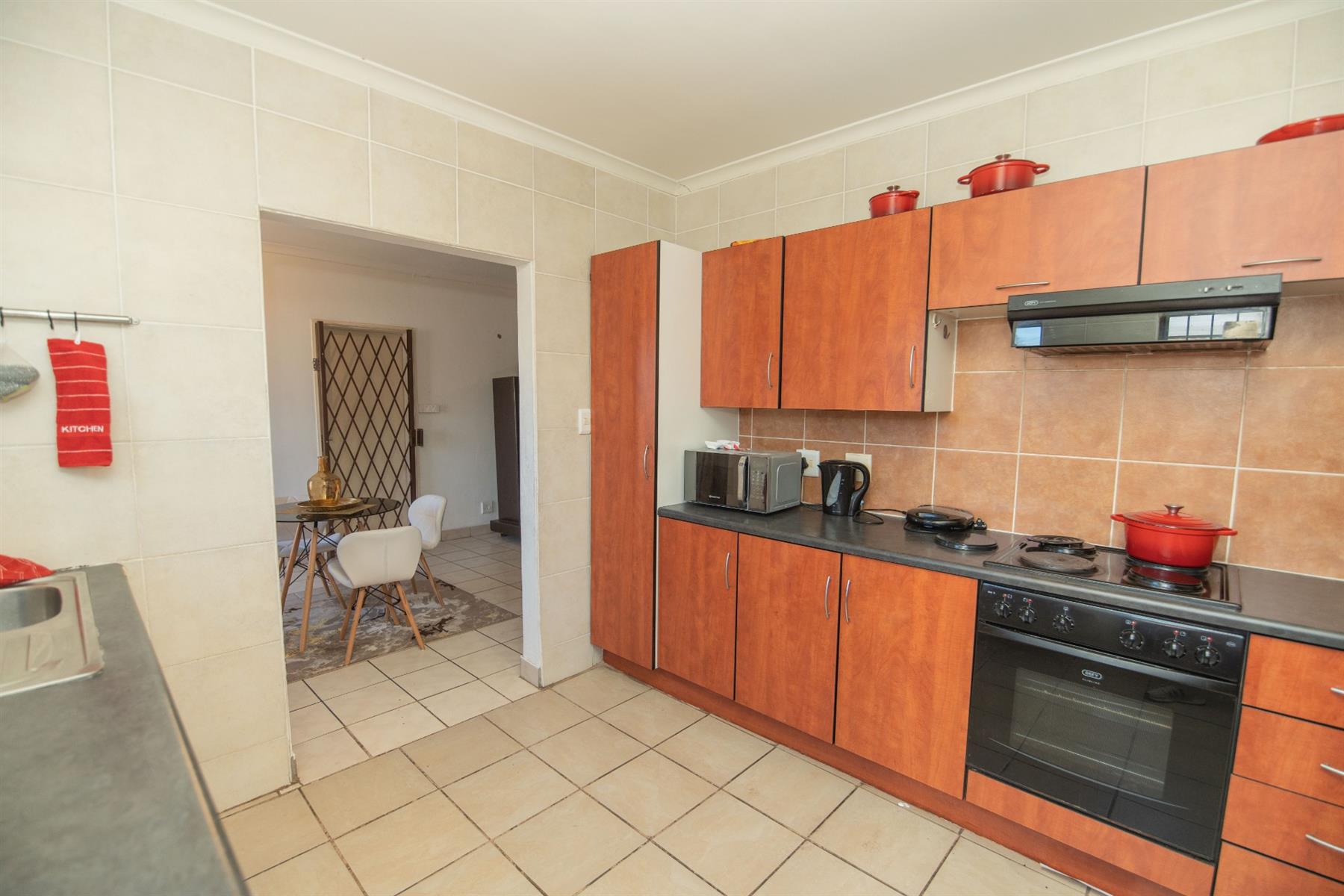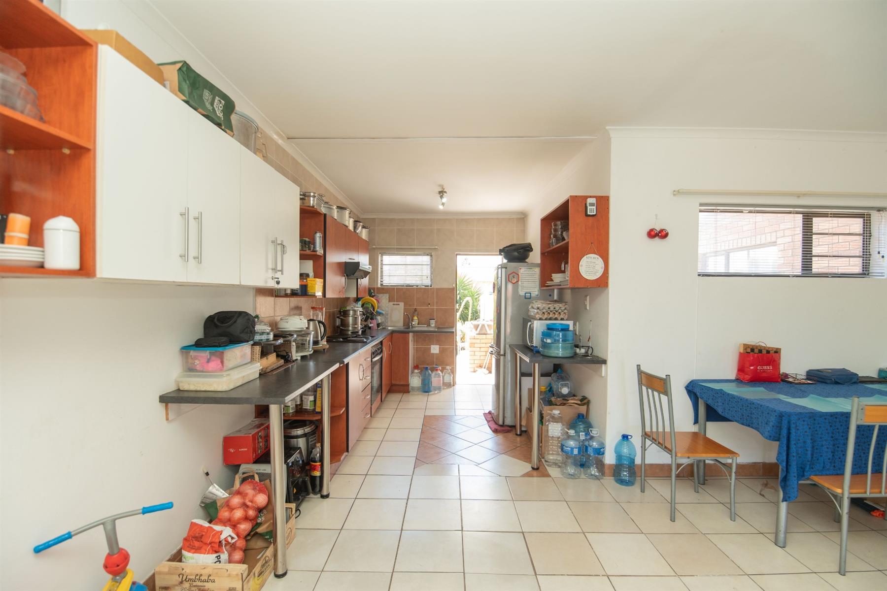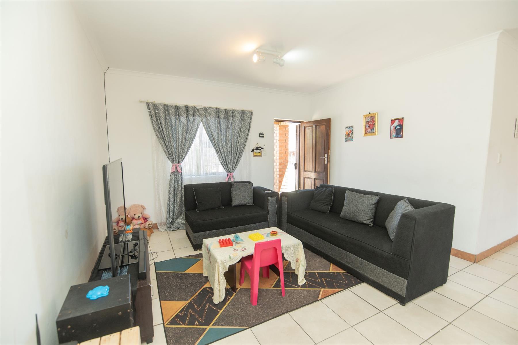 Tiled open plan lounge and dining area