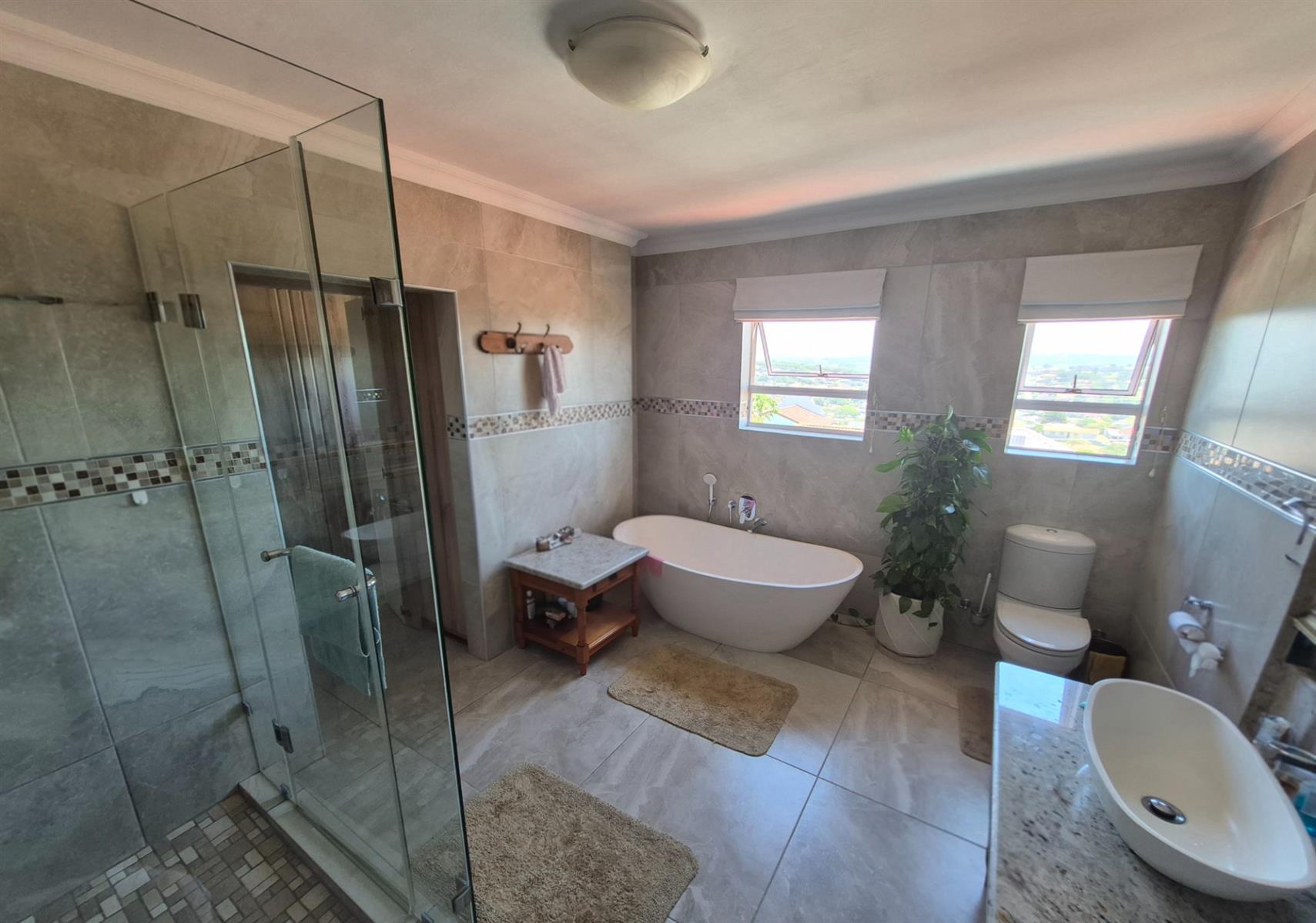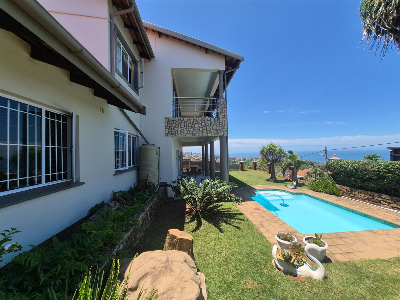 Upstairs is where this home truly shines. Two exceptionally spacious main bedrooms, both with tastefully finished en-suite bathrooms, open onto private balconies boasting stunning sea views, along with sweeping inland vistas. These upstairs suites offer a rare sense of luxury, light, and openness.