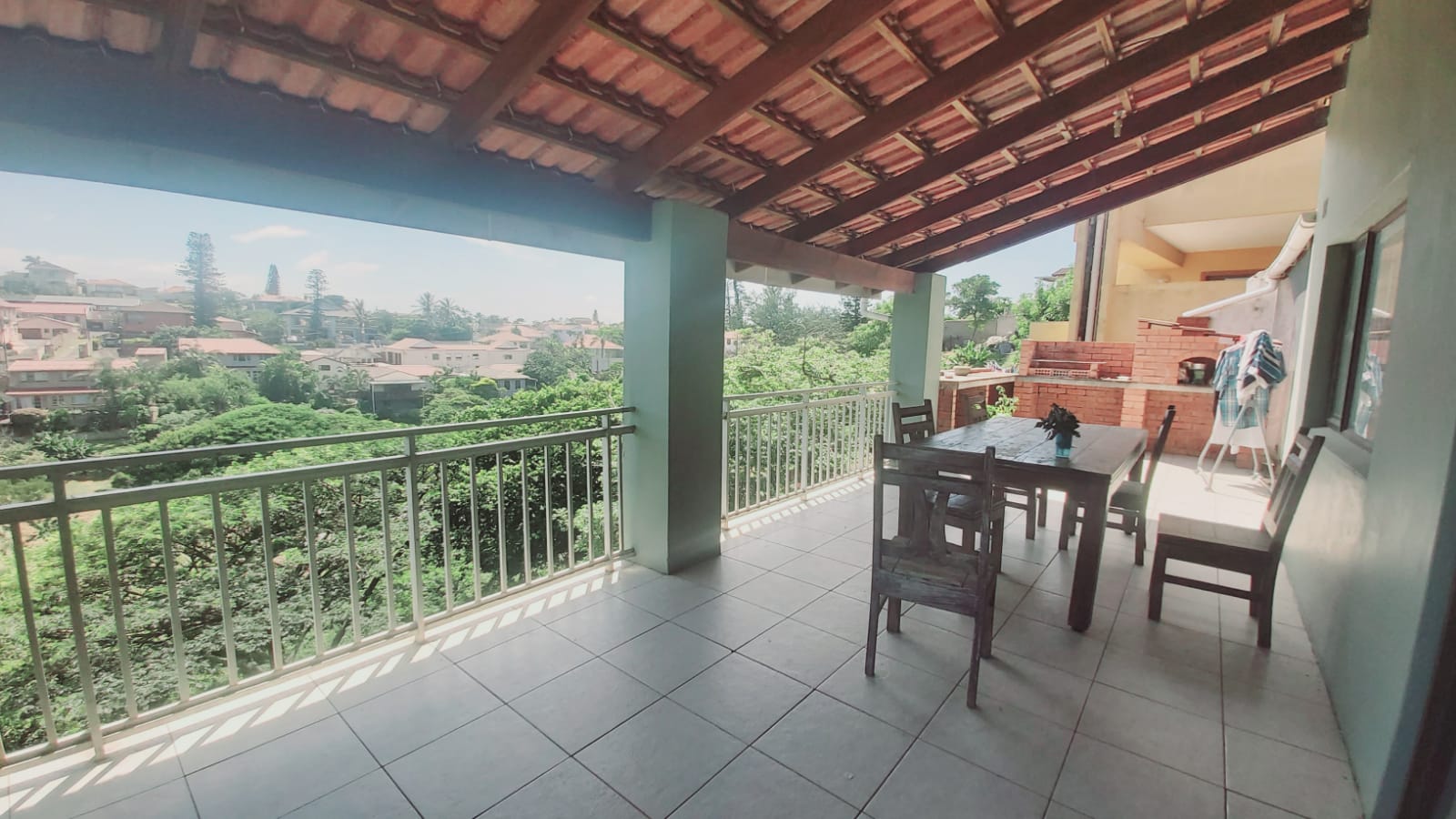 This property features a speed surf tower that produces income of R4500 a month and gives you free internet usage. This grand family home is situated in prime Herbert Andrews Road, Bluff. Situated on a quiet cu-l de- sac this 5 bedroom 3 bathroom home has peeps of the ocean and lovely views of the Bluff. The home has a spacious kitchen with lots of cupboards and a huge living areas and a massive deck ideal for entertaining.