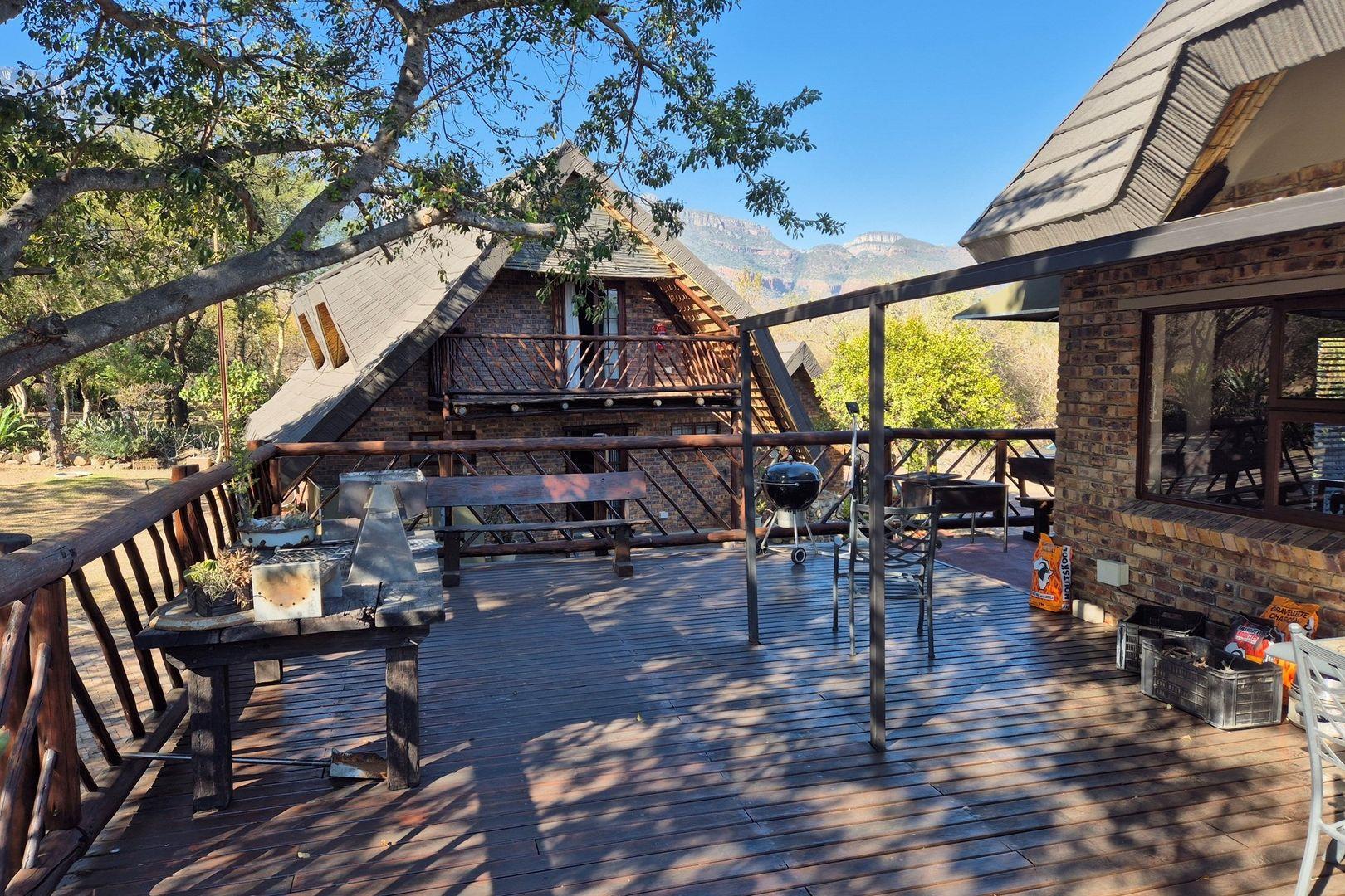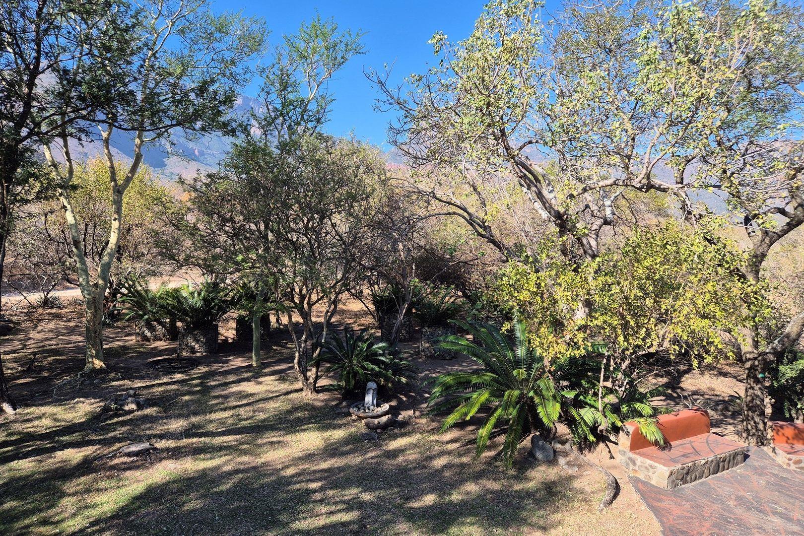A truly magnificent property with two houses, fully furnished, set in a beautiful designed and maintained botanical garden with a 270 degree views of the majestic Drakensberg Mountains located in the most impressive Blyde River Botanical Reserve.